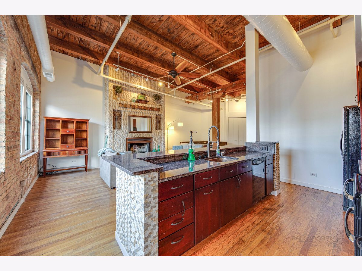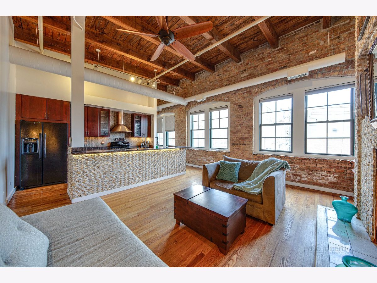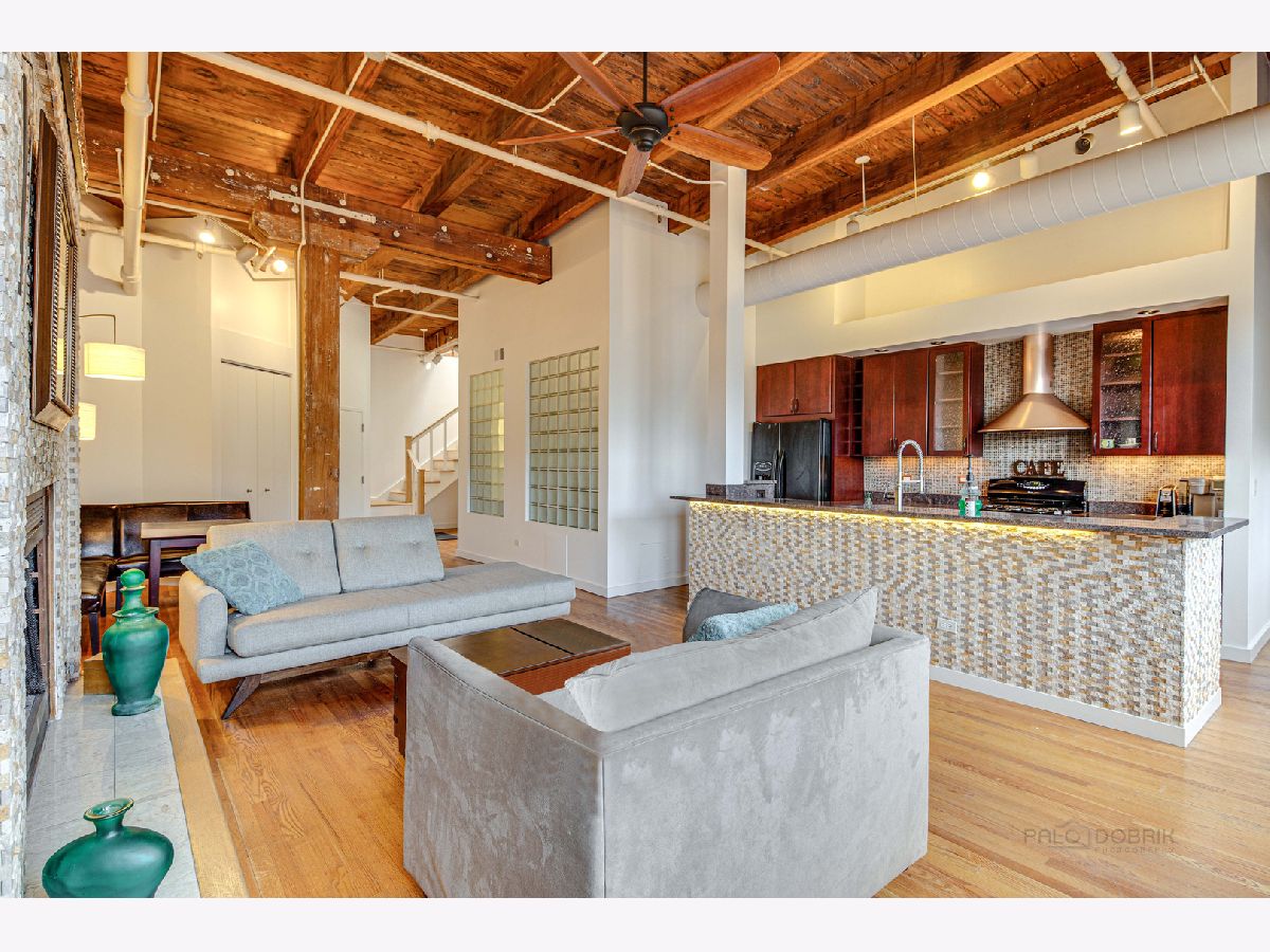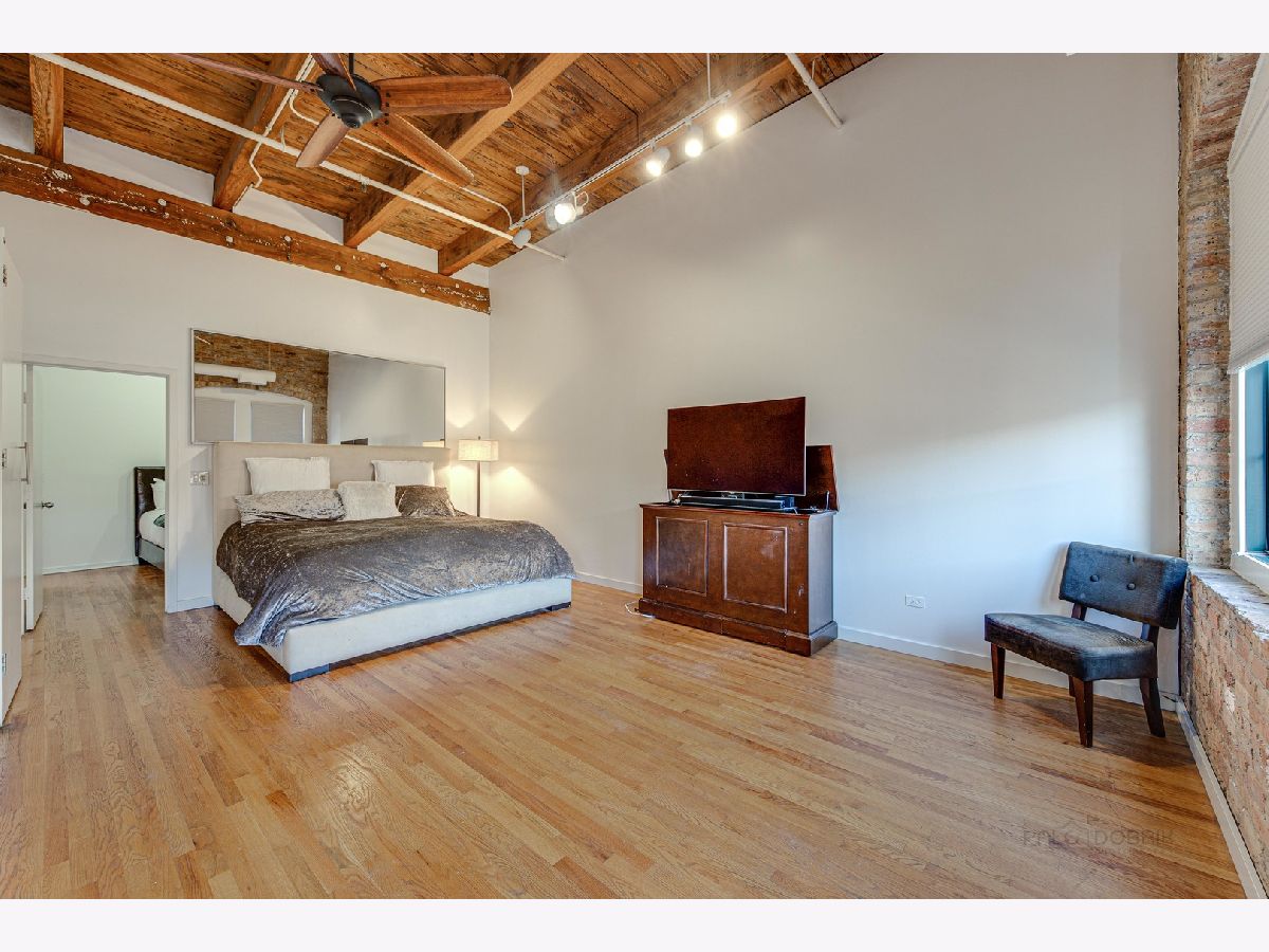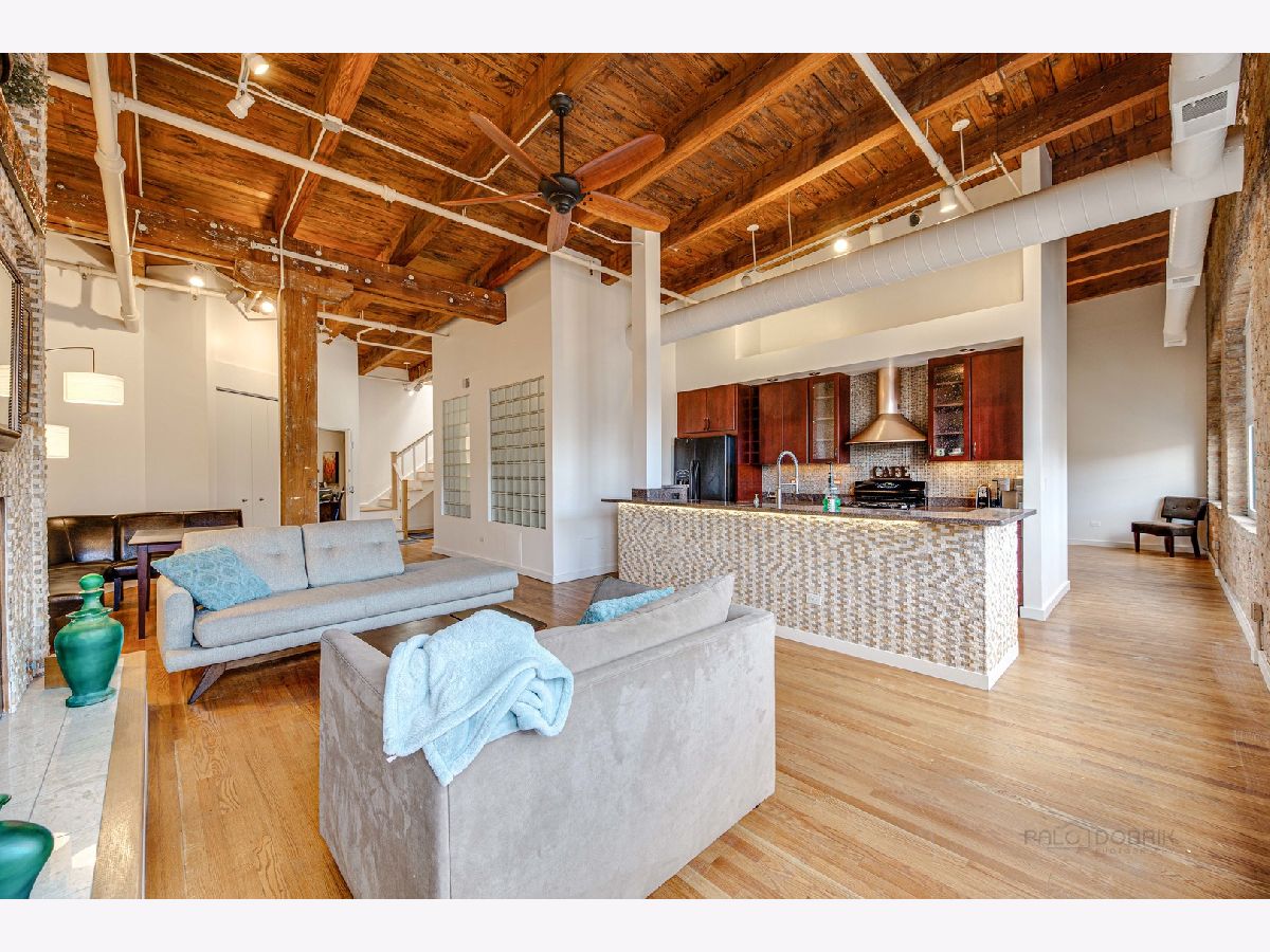 Absolutely sensational Piano factory loft condo! The home was just freshly painted throughout! Enjoy this amazing open floor plan with soaring ceilings , impressive old world wood Timber beams, exposed brick and duct work. This is one of the largest units in the building boasting 2 bedrooms and a loft! The master has a private bath with a mirror TV in the tub area. The loft can second as a 3rd bedroom or the perfect "Zoom Room" The kitchen has granite counters, and ample cabinetry. It opens to the very attractive living room and dining room. You will love the private rooftop deck which is perfect for today's entertaining. New water heater being installed. Covered parking (3C) and storage locker on the same floor. This is a great one!