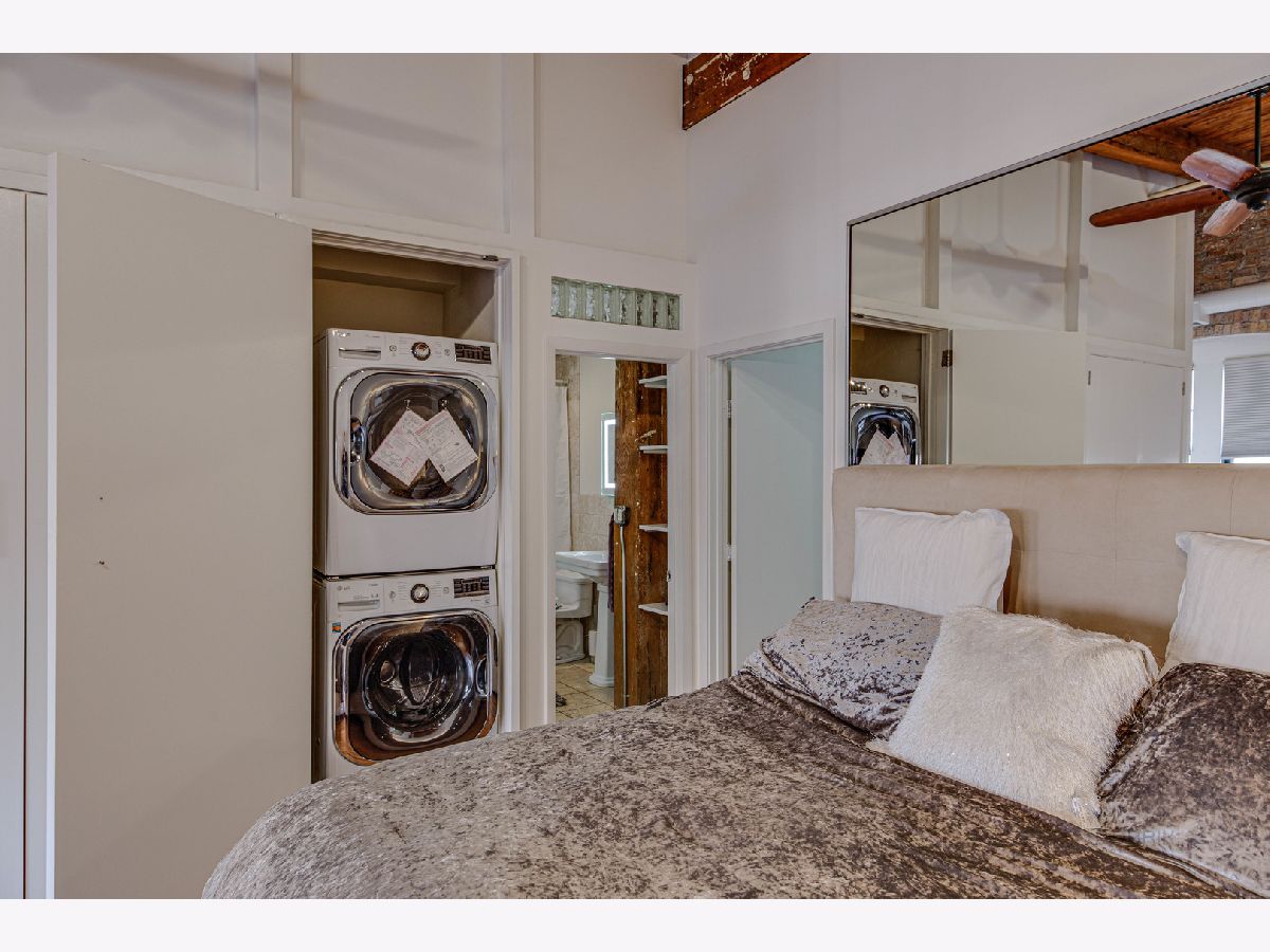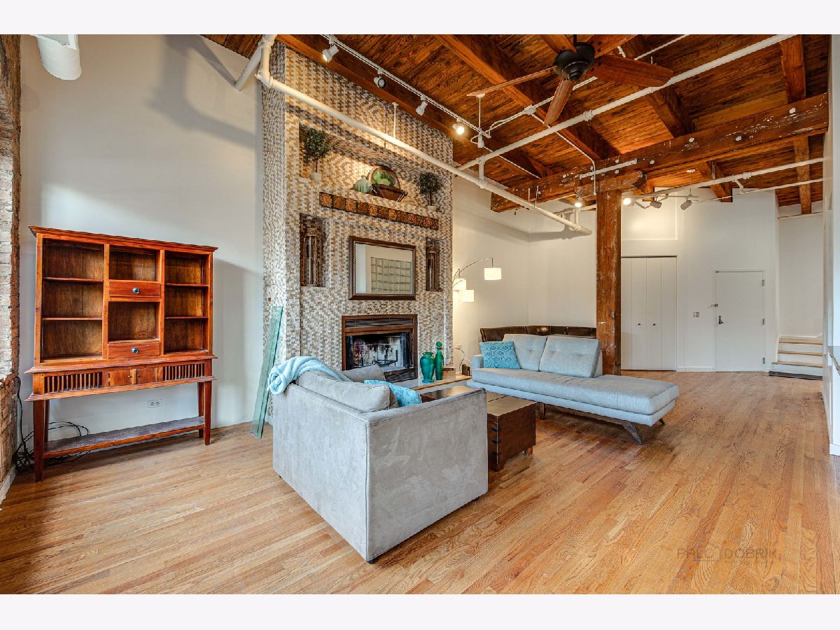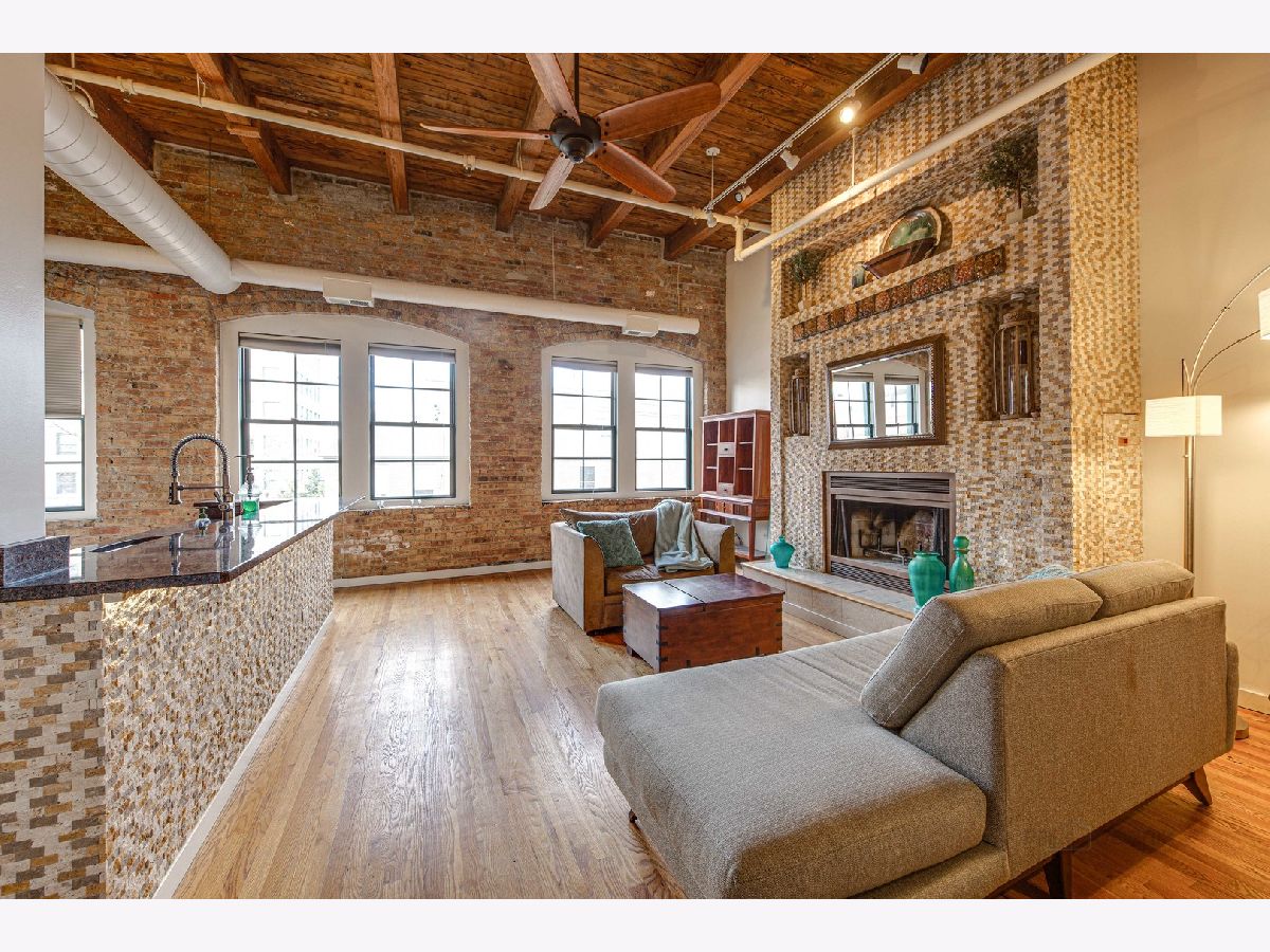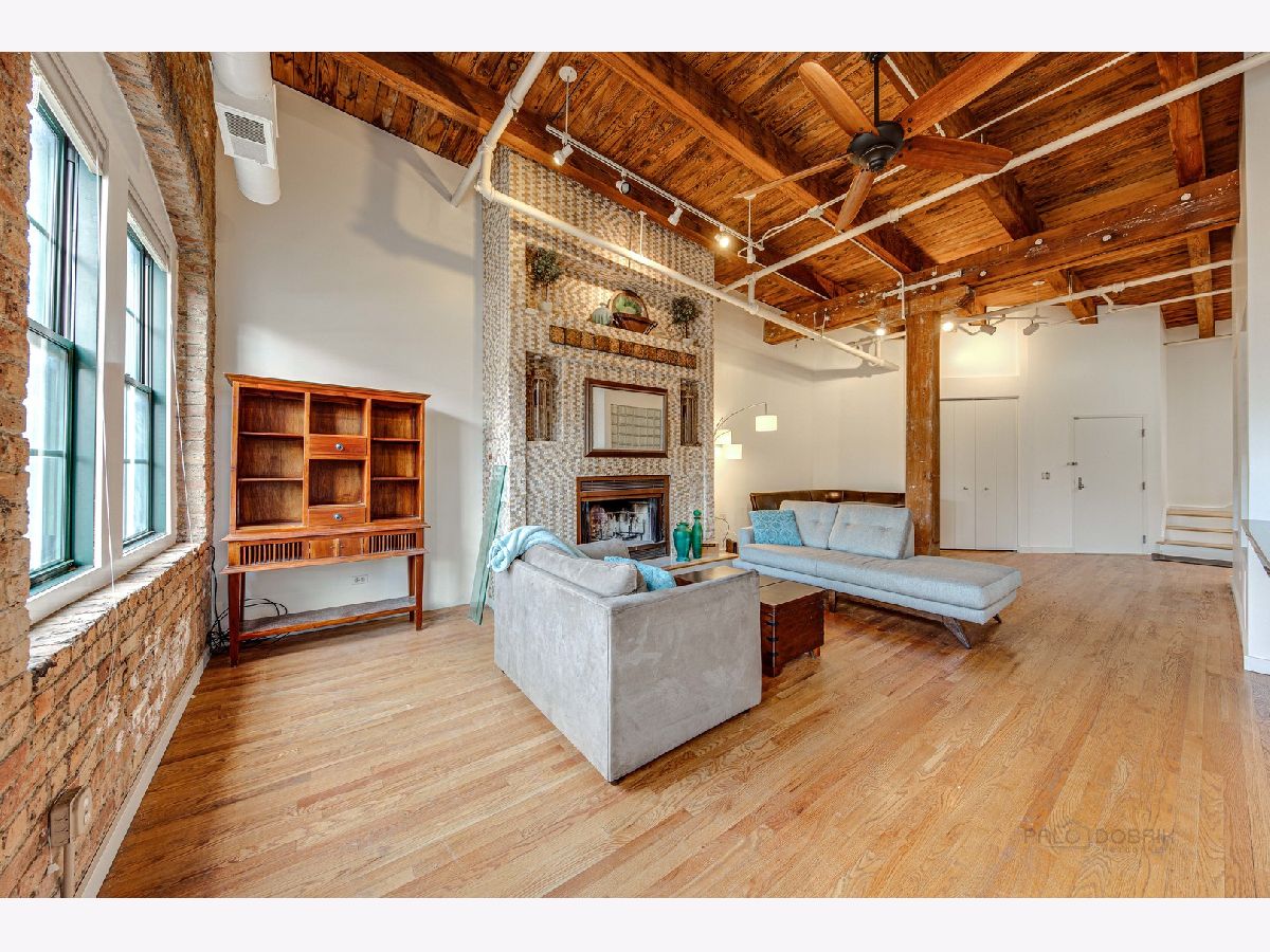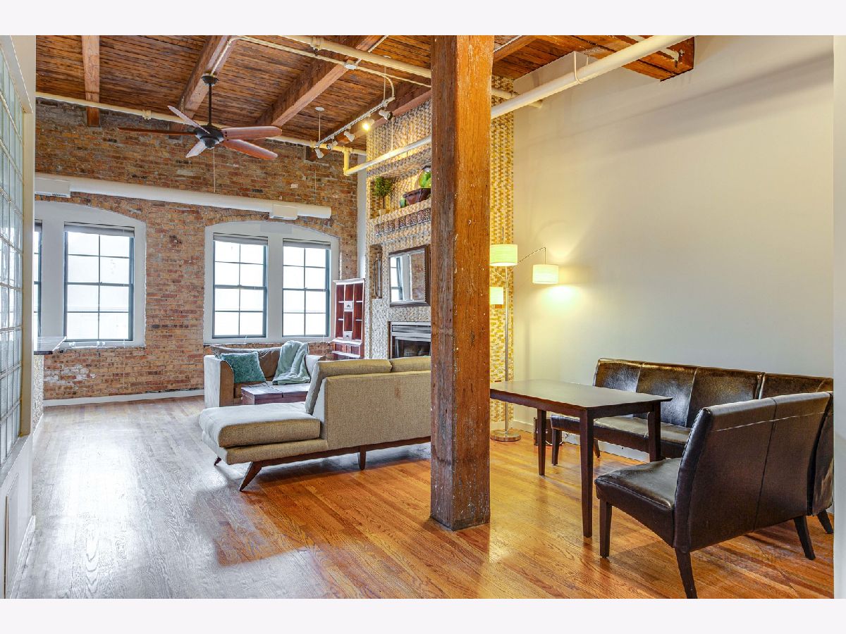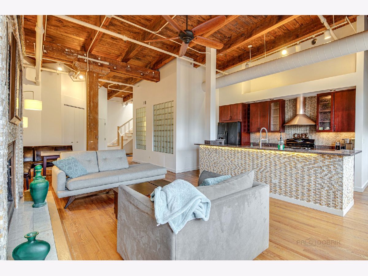 Absolutely sensational Piano factory loft condo! The home was just freshly painted throughout! Enjoy this amazing open floor plan with soaring ceilings , impressive old world wood Timber beams, exposed brick and duct work. This is one of the largest units in the building boasting 2 bedrooms and a loft! The master has a private bath with a mirror TV in the tub area. The loft can second as a 3rd bedroom or the perfect "Zoom Room" The kitchen has granite counters, and ample cabinetry. It opens to the very attractive living room and dining room. You will love the private rooftop deck which is perfect for today's entertaining. New water heater being installed. Covered parking (3C) and storage locker on the same floor. This is a great one!
