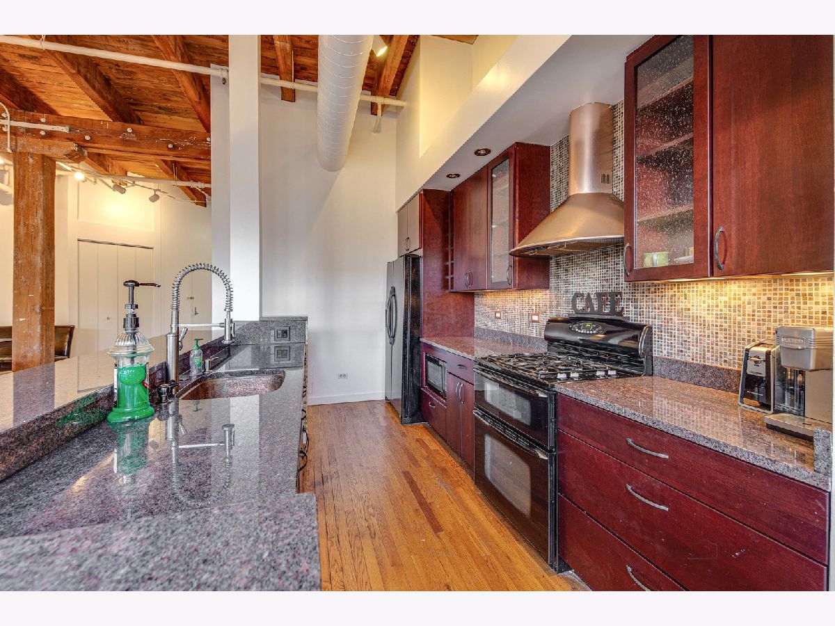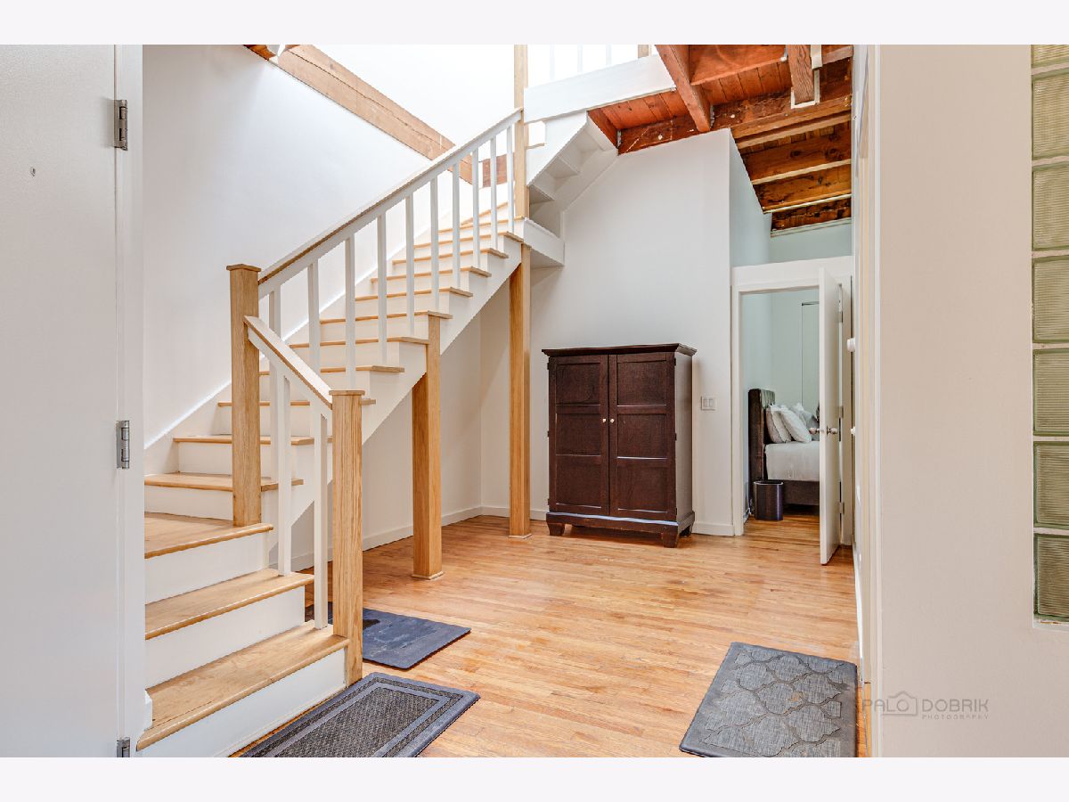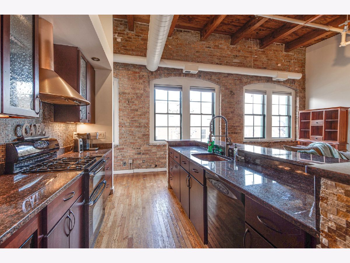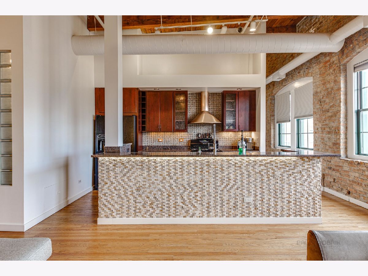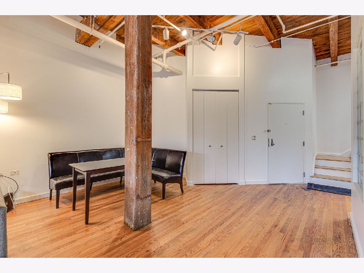 Absolutely sensational Piano factory loft condo! The home was just freshly painted throughout! Enjoy this amazing open floor plan with soaring ceilings , impressive old world wood Timber beams, exposed brick and duct work. This is one of the largest units in the building boasting 2 bedrooms and a loft! The master has a private bath with a mirror TV in the tub area. The loft can second as a 3rd bedroom or the perfect "Zoom Room" The kitchen has granite counters, and ample cabinetry. It opens to the very attractive living room and dining room. You will love the private rooftop deck which is perfect for today's entertaining. New water heater being installed. Covered parking (3C) and storage locker on the same floor. This is a great one!