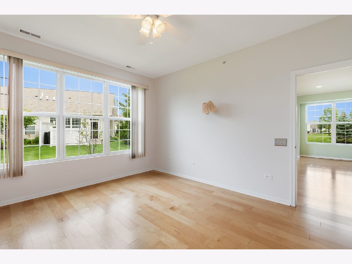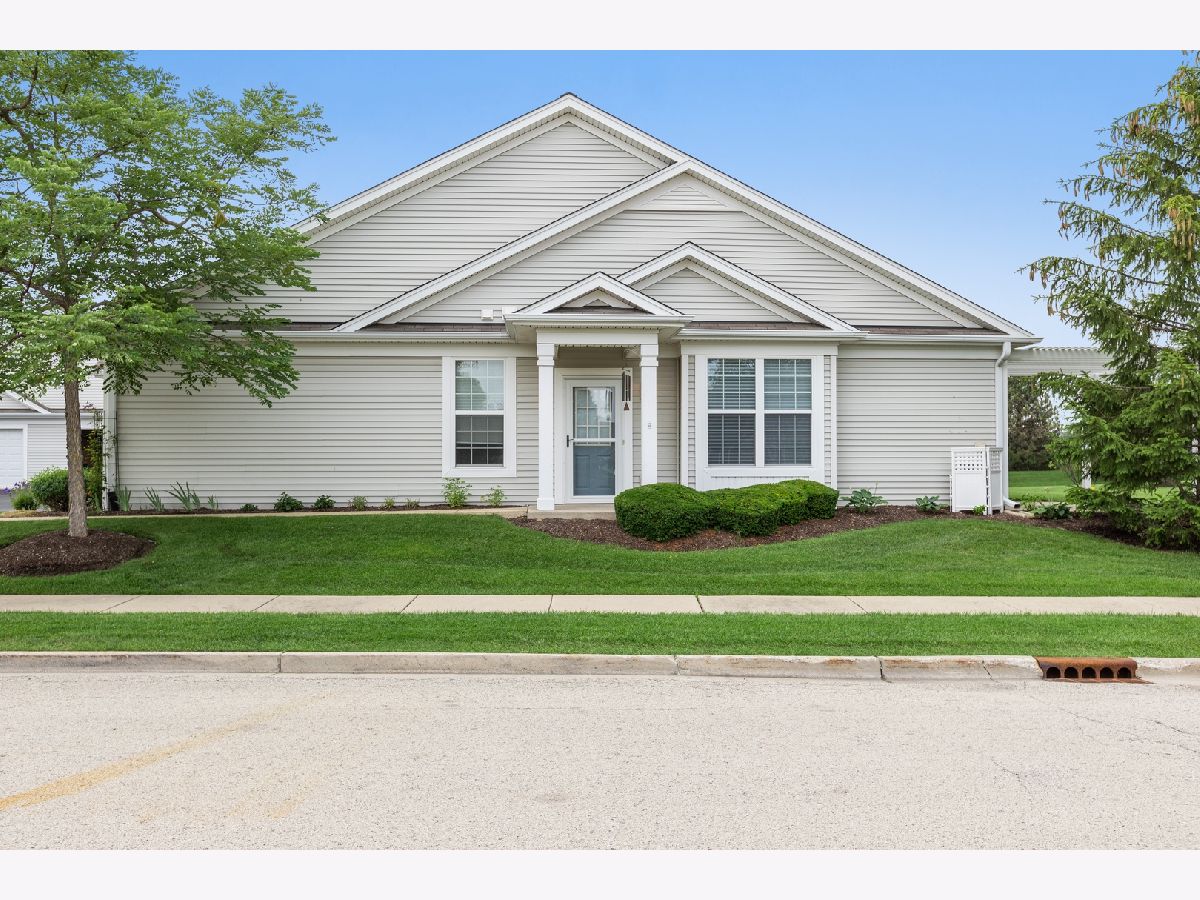 This end unit townhome has an open concept living area with newer wooden like flooring thru out. From this area you are able to go to the covered cement patio great for relaxing or enjoying that morning coffee. Kitchen has beautiful birch cabinets and good counter space, newer stainless steel appliances, and a pantry.. The nice sized master bedroom has the same flooring, and a large walk in closet. Master bath has double sinks and a large shower with seating and a separate linen closet. Second bedroom is also a nice size and has the same flooring.. The second bathroom has a tub. There is a large 2 car garage with extra storage. Del Webb offers many amenities to be enjoyed.. Exercise facilities, pool, and clubhouse are just a few. This development is close to many restaurants, shopping and the 90 tollway.. Come and see this unit and enjoy this wonderful way of living..