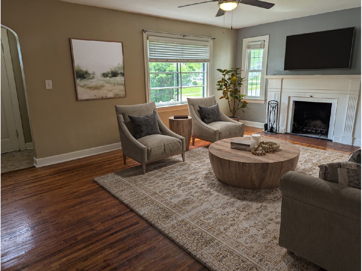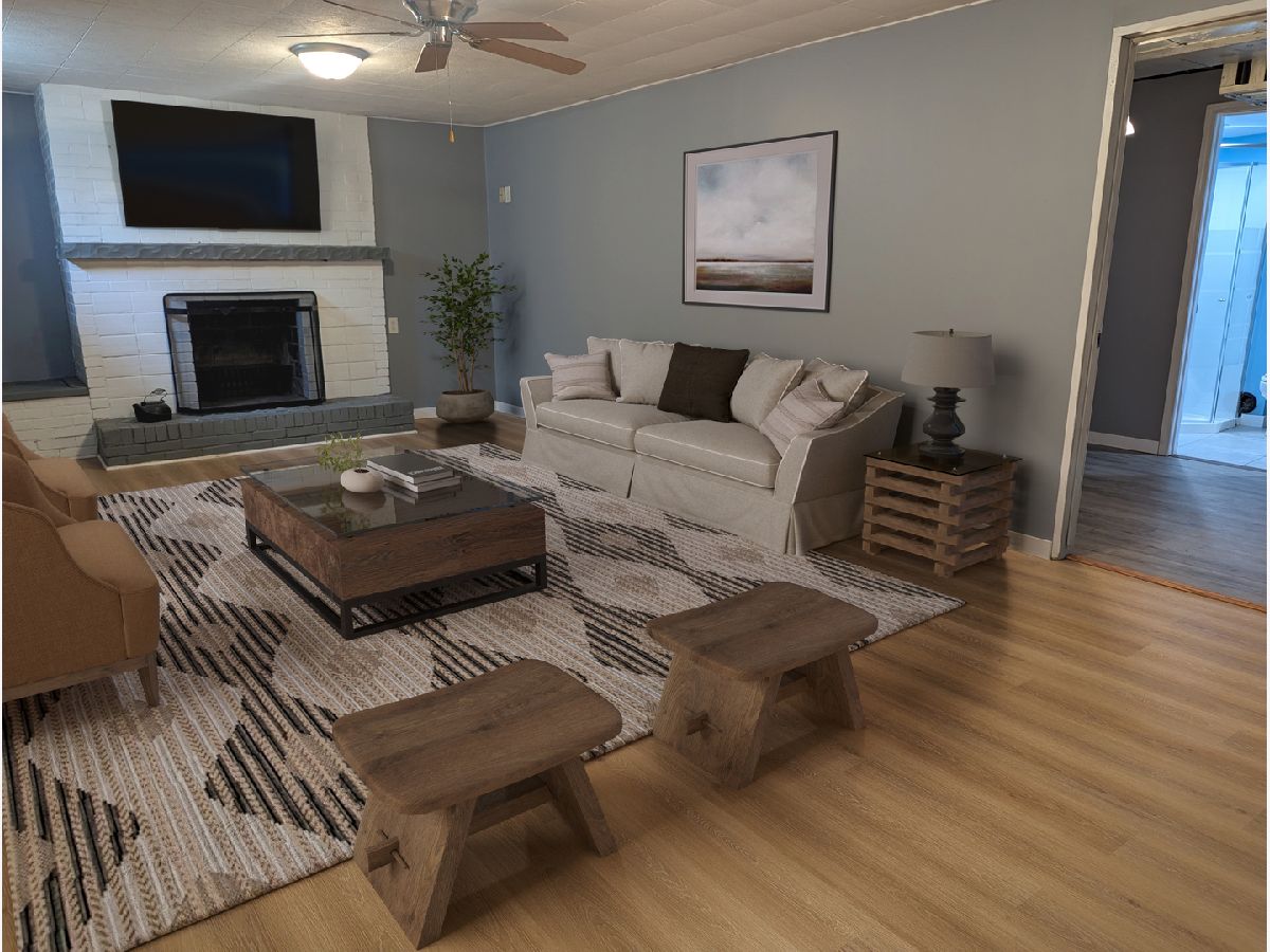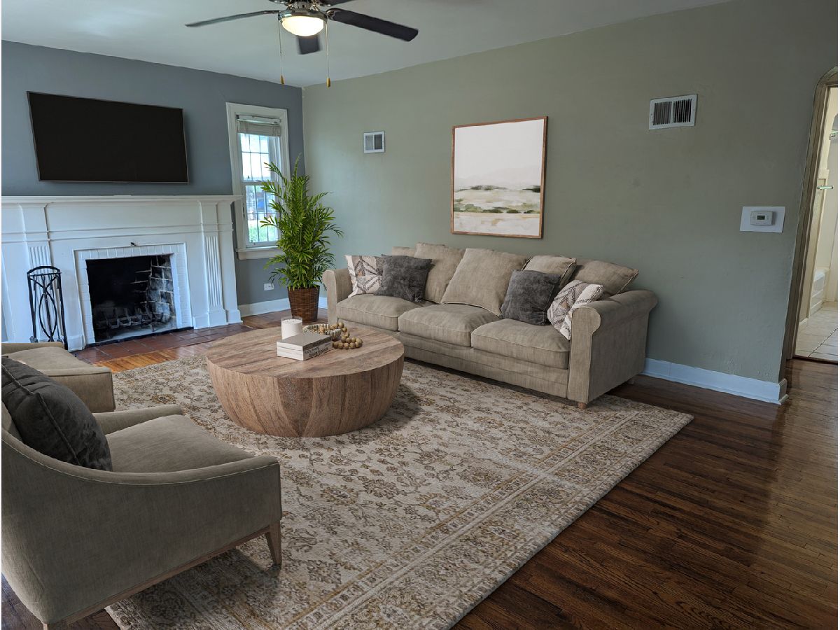 Full of character and move-in ready, this home boasts original hardwood floors throughout, a modernized kitchen, and three levels of functional space. The main floor features a spacious living room with a cozy fireplace, a fully equipped kitchen, two comfortable bedrooms, a full bathroom, and a covered patio perfect for relaxing or entertaining. The upper level offers a generously sized bedroom, providing plenty of space and privacy. On the lower level, you'll find a versatile family room with a second fireplace, a kitchenette area, a second full bathroom, a laundry room with a utility sink and storage area, and a mechanical room with additional storage options. The property includes a detached oversized one-car garage measuring 14' x 20' and a lovely backyard for outdoor enjoyment. Conveniently located near parks, this home blends charm, practicality, and an ideal location.