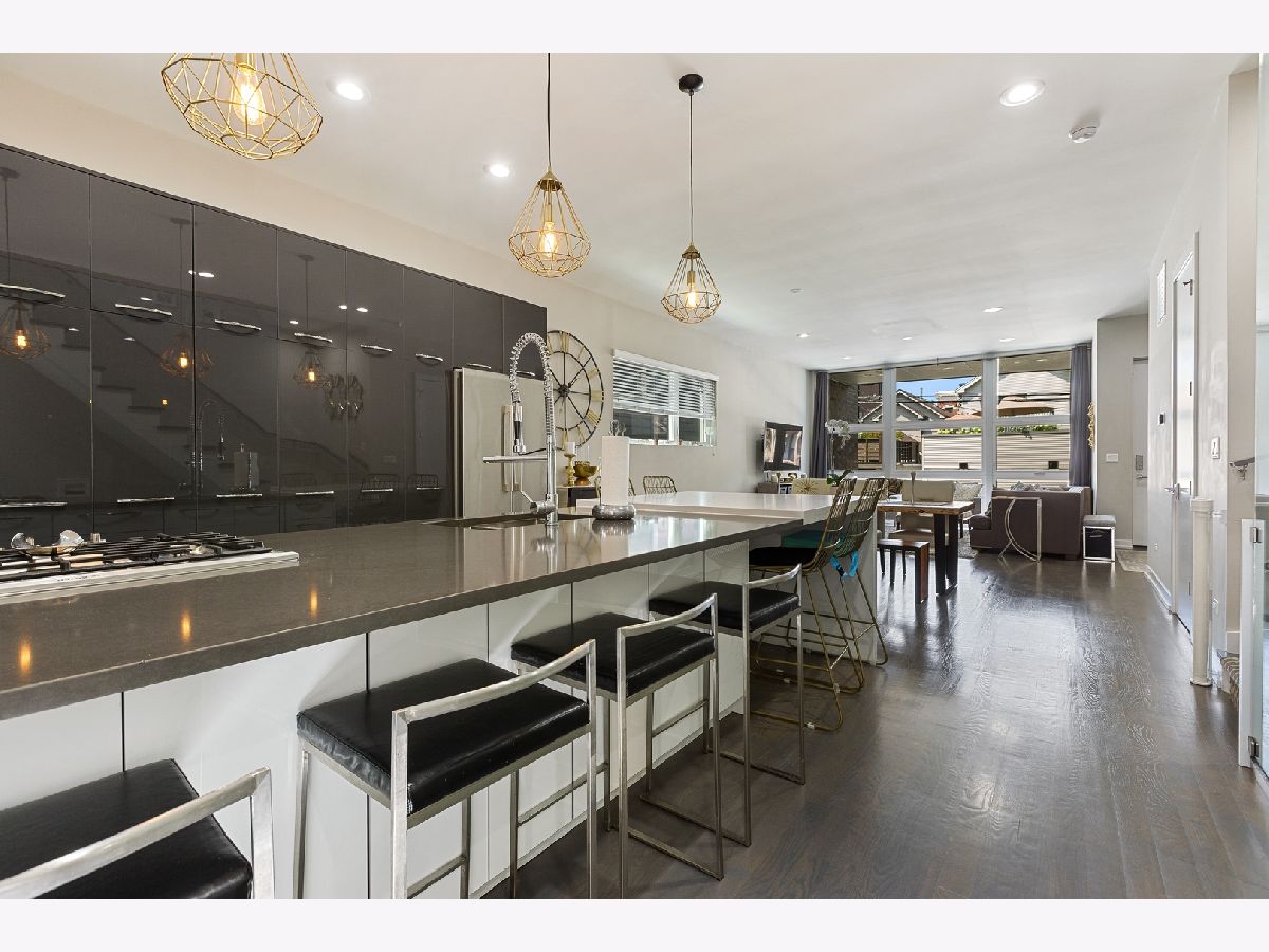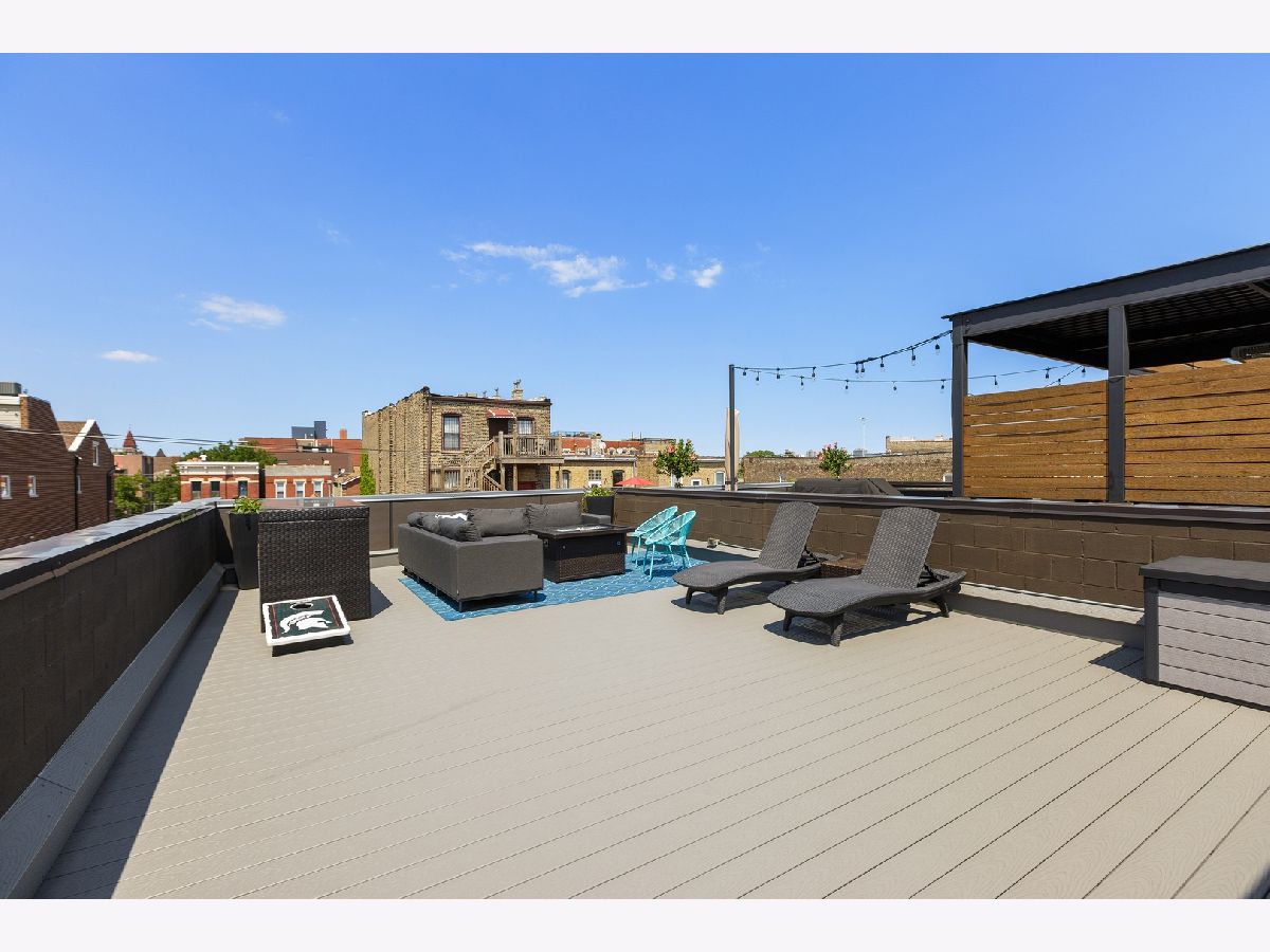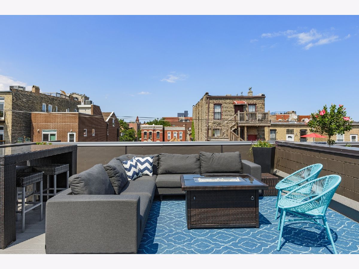 Contemporary single family home built in 2016 with 4bd/3.1ba in booming West Town. Floor-to-ceiling windows brighten the open concept floorplan with hardwood floors and glass wall staircase. Unique kitchen showcasing sleek cabinetry and extra large center island, built to host gatherings with friends and family. First of two outdoor spaces right off the kitchen, expanding your entertainment options. Full length windows continue in the master bedroom with en suite featuring dual rain shower heads. Two more bedrooms and a full bathroom complete the second floor. Third full bathroom in the lower level, along with an additional room that can be utilized as a 4th bedroom or office. Expansive rooftop deck just passed the interior wet bar with pergola, TV, and plenty of room for lounging or taking in the unobstructed views of the Chicago skyline. Attached two car garage with a car pad in front perfect for guest parking. Unbeatable location near Chicago Blue Line, 90/94, and several neighborhoods including West Town, Noble Square, River West, and West Loop.
