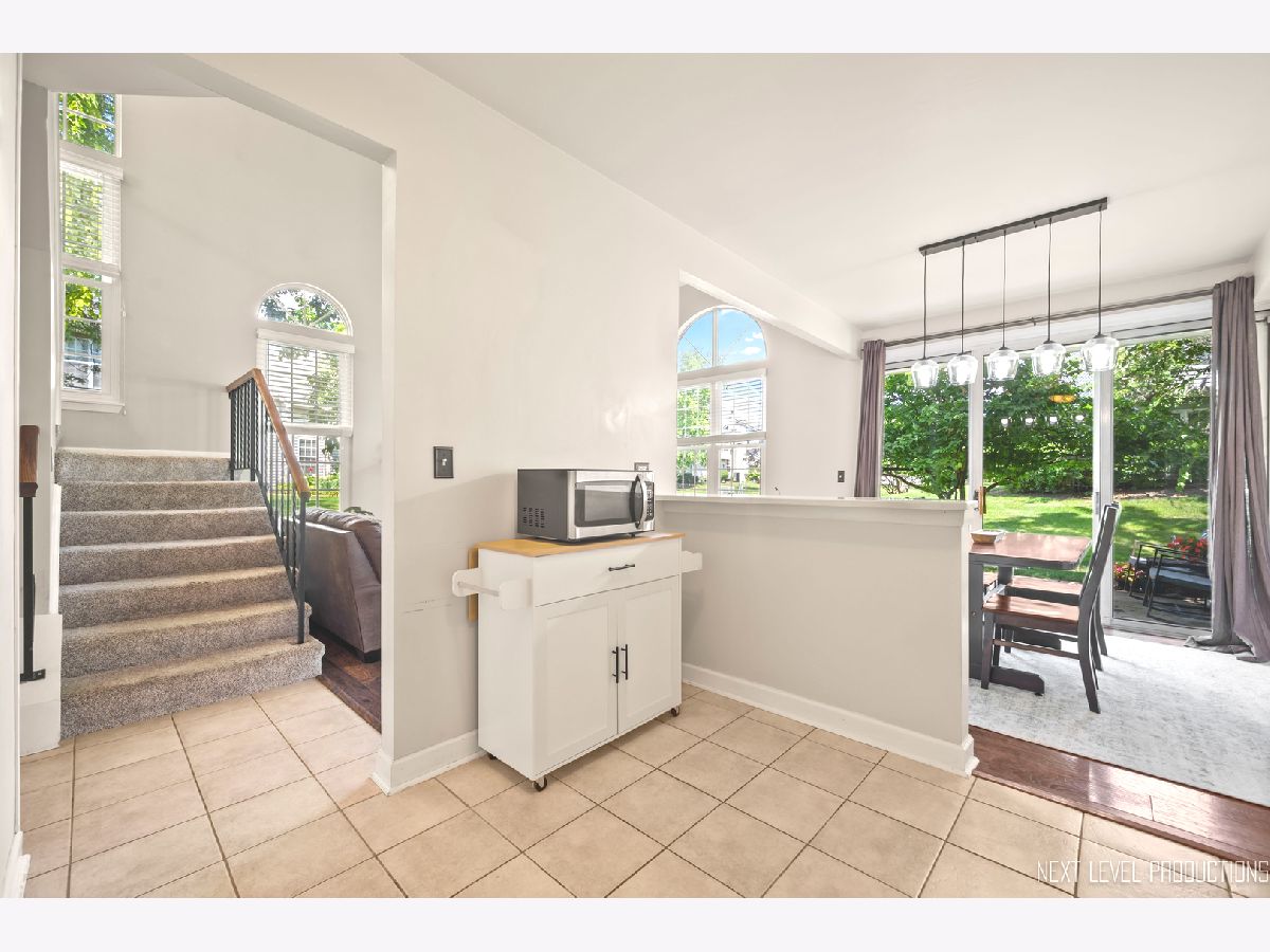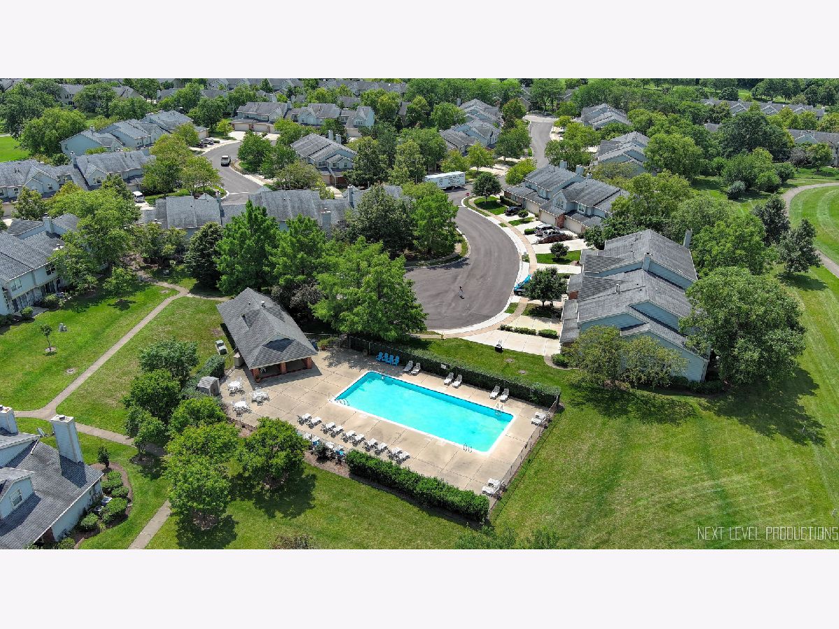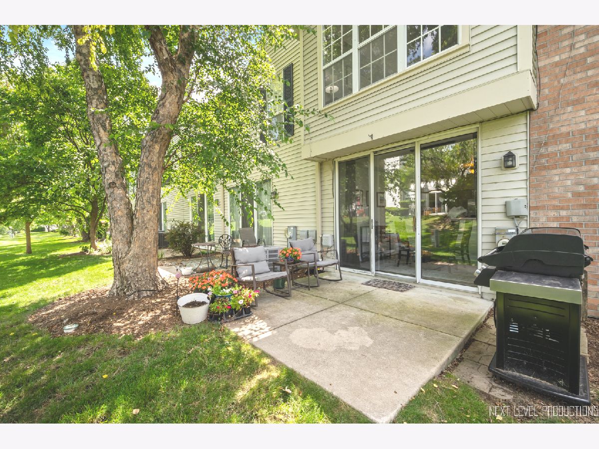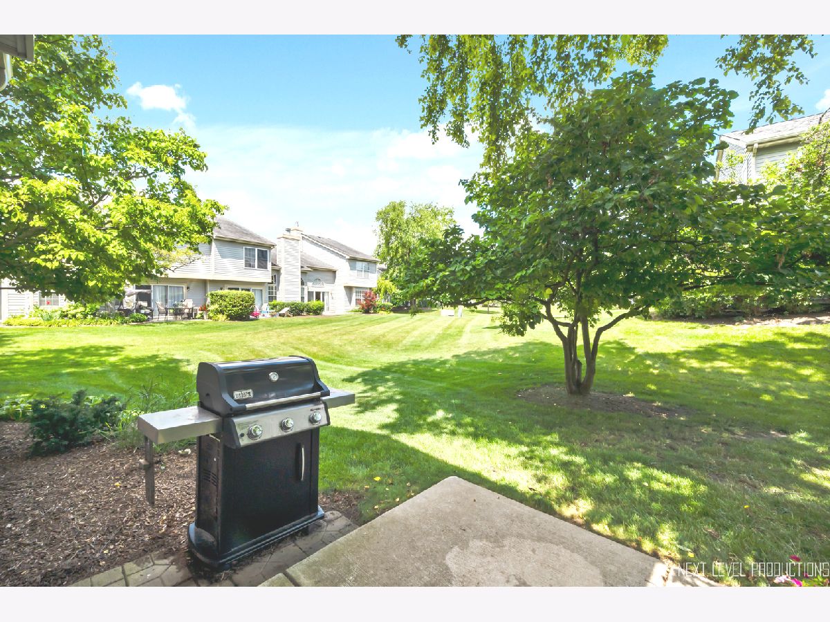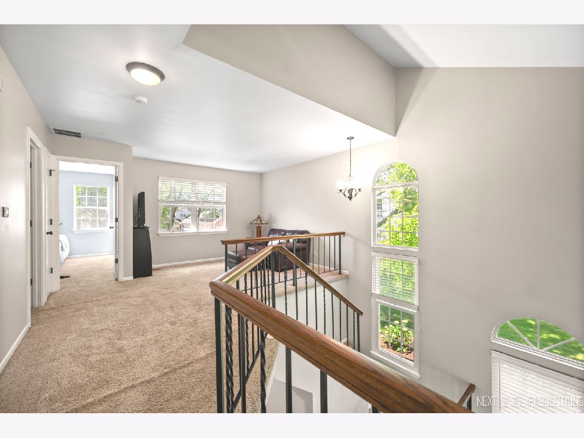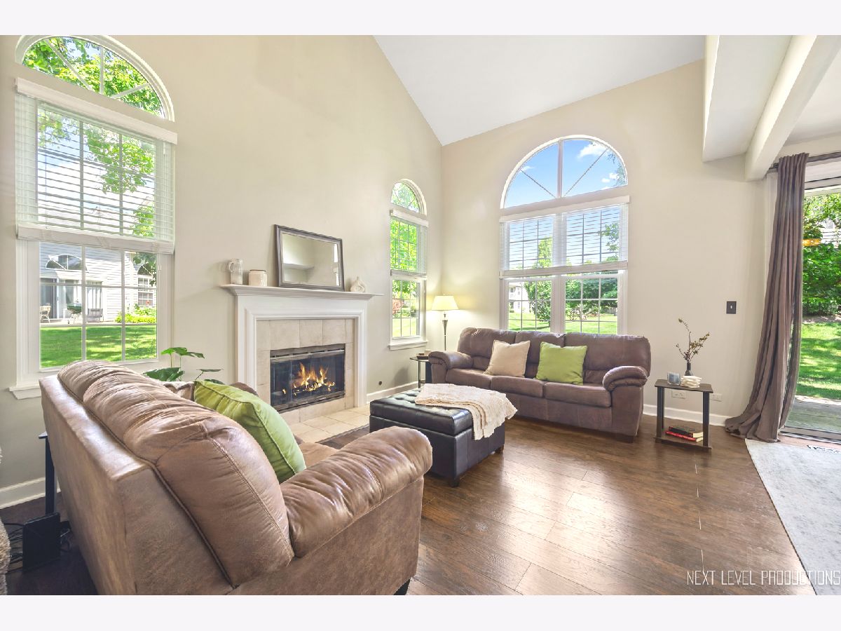 Beautifully updated, private end-unit available in desirable Glendale Lakes golf community! Newly painted family room with cathedral ceilings, walnut engineered hardwood flooring, cozy gas fireplace and arched windows allows for an abundance of natural light throughout! Adorable kitchen with ceramic tile flooring, quartz countertops, lighter cabinets, stainless-steel appliances and pantry. Separate dining room space with contemporary pendant lighting ideal for entertaining! Sliding glass door overlooks peaceful patio space and common grass area. Wrought iron staircase leads to tranquil loft area, ideal office or lounging space. Spacious vaulted primary room with 2 separate closets and ensuite bath with ceramic tile flooring, contemporary sink and glass shower door. Decently sized 2nd bedroom and full bath with ceramic tile surround and updated sink and mirror. 1st floor laundry and 1/2 bath plus attached 1-car garage. No rentals allowed. Additional amenities include pool and clubhouse. Conveniently located near shops, dining and access to expressways! Don't miss out on making this sweet home yours today!