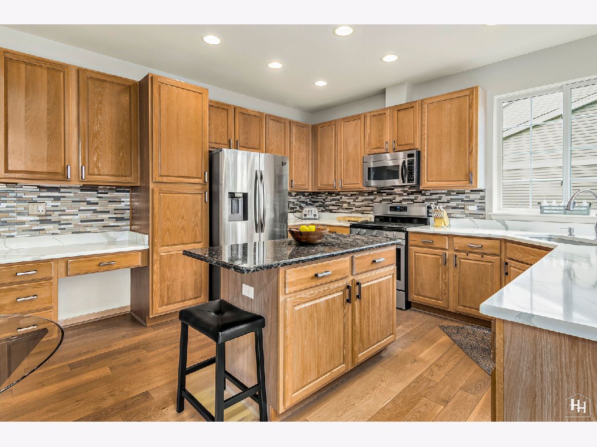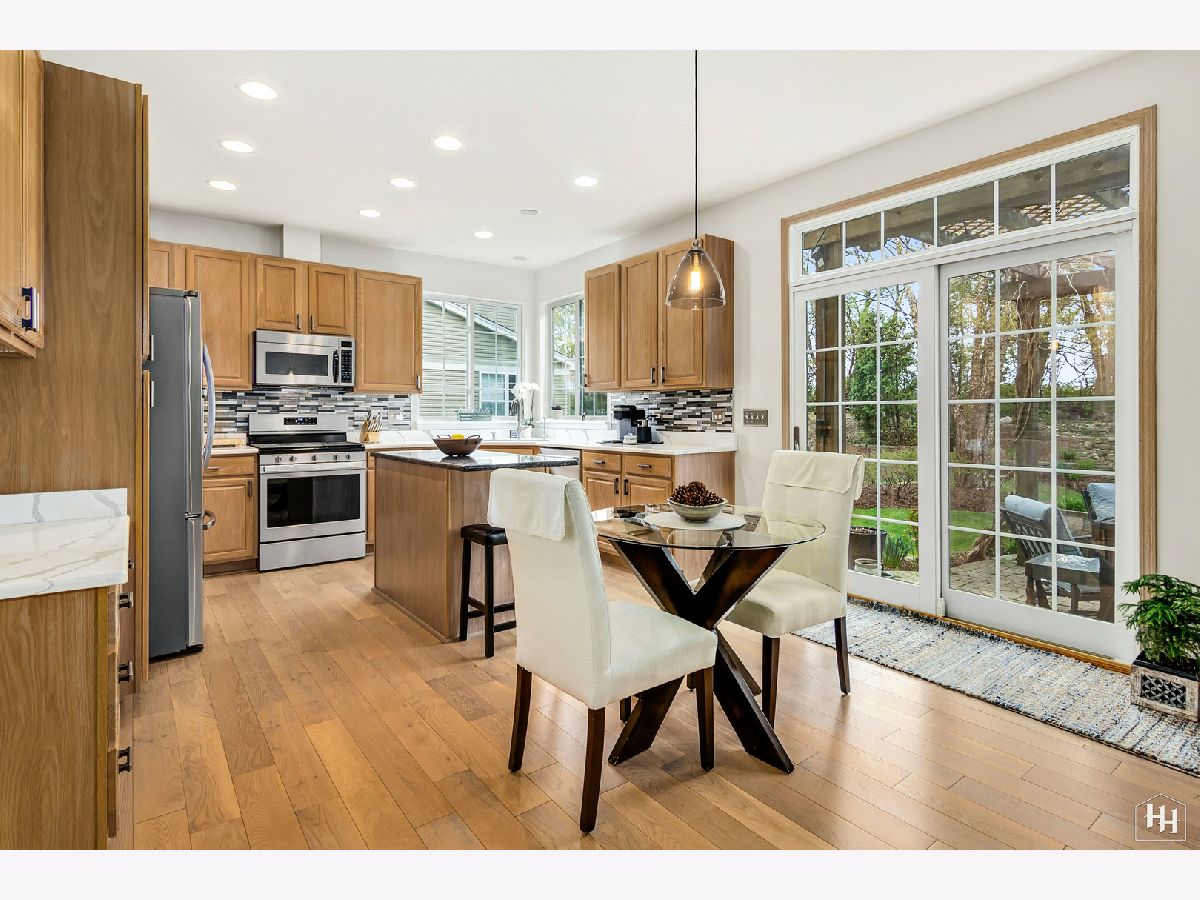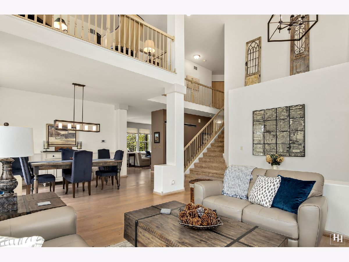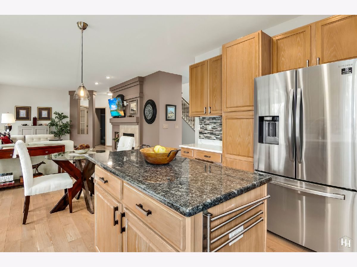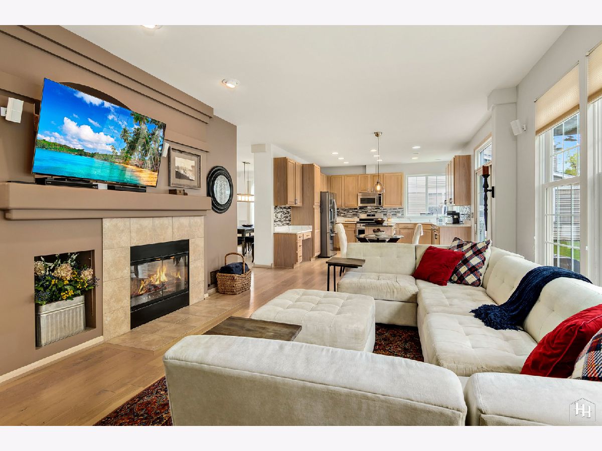 This immaculate and beautifully kept home is situated on a quiet street in Cambria Subdivision, backing to walking trails and an 18-acre dog park! With a 2-story foyer and vaulted ceilings, welcome to the light and bright open-concept floor plan everyone is looking for! The owners have made wonderful updates to the home including fresh paint, beautiful light fixtures, and on-trend, light-colored wide plank hardwood floors throughout the main level. The kitchen updates are tasteful and modern, with new stainless steel appliances, quartz and granite countertops, backsplash, and under mount sink. Nothing to do but move in and get settled! Enjoy relaxing in the evening in front of the gas log fireplace while admiring the gorgeous landscape outdoors. The main level also features a first-floor office that can be utilized as a bedroom or in-law quarters thanks to the full bath next door. The laundry is located in the mudroom off the garage door. Three bedrooms upstairs and a loft that could be converted into an additional bedroom if desired. With hardwood floors, it's currently used as an office and would make a great play space or additional family room area. The primary bedroom is huge and has great closet space, the en-suite features dual vanities and a jetted tub. One of the two additional bedrooms has a direct entrance into the hall bath. The unfinished basement has high ceilings and is ready for your finishing touches, the plumbing is roughed in for a bath. 3-Car Garage. Tranquil and private setting with a lovely patio and pergola, & professionally designed gardens, easy to maintain with a sprinkler system. Sunrun solar panels are on a 20-year lease. * Updates include Marvin windows and furnace installed in 2011, A/C, irrigation system'12, Water heater '13, roof, siding, gutters, driveway '15, ejector pit '17. Current owners painted the entire interior (& removed wallpaper), added hardwood floors to the kitchen, family room, first-floor office/bedroom, and loft, and updated the kitchen with new stainless steel appliances, granite/quartz countertops, backsplash, under mount sink, new gas log fireplace insert. * This home is simply perfection from inside and out! Cary Schools! Fun community, down the street from Kaper Park and splash pad, a short drive to brand new Sunburst Bay Aquatic Center. The walking/bike trail runs behind this property and connects it to nearby community garden plots and and dog park! Minutes away from delicious restaurants in downtown Cary, the Metra, and gorgeous parks and trail systems the area is known for. Quick Close Possible!