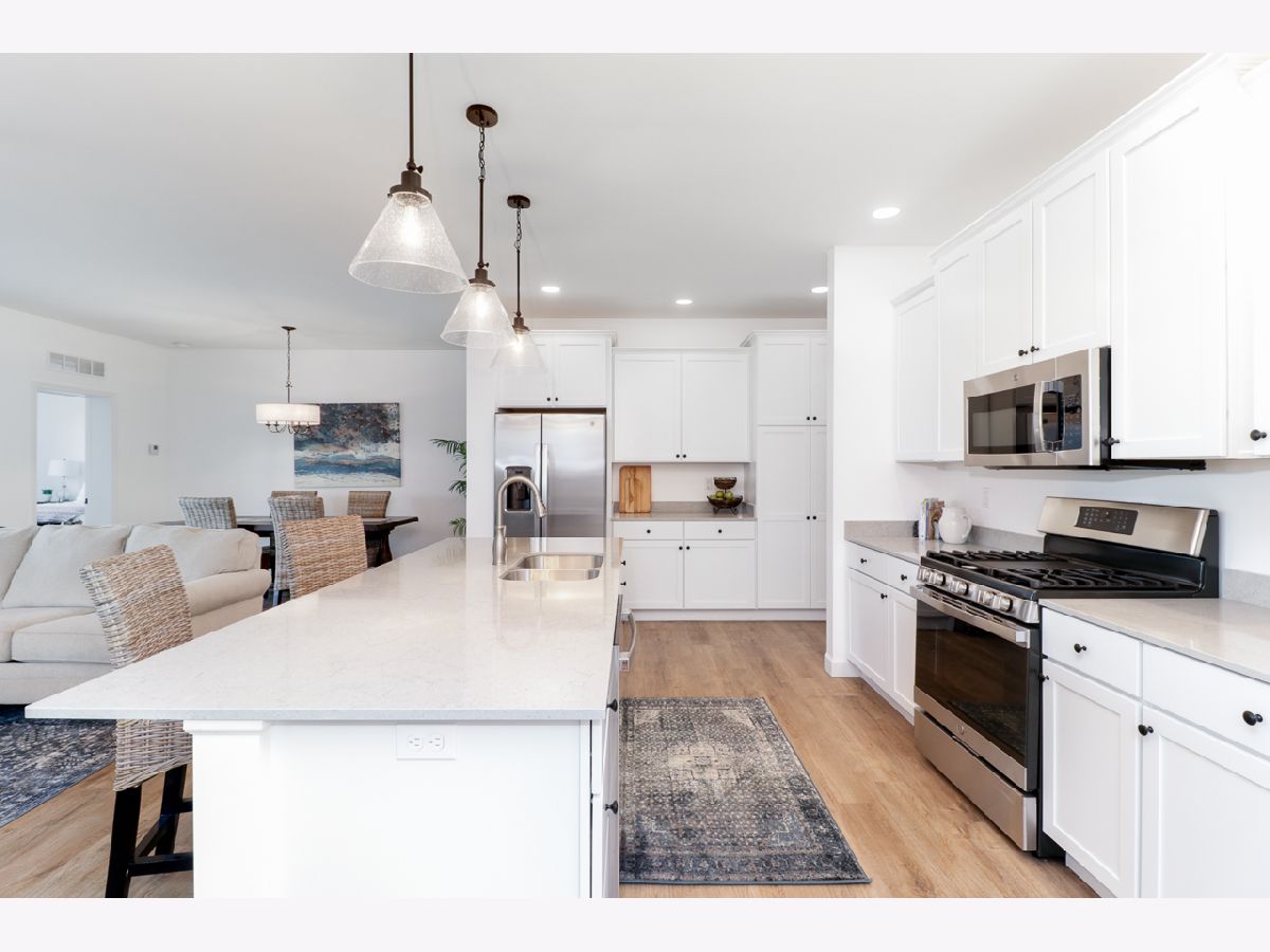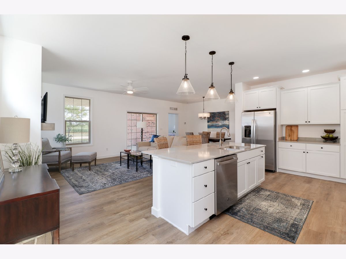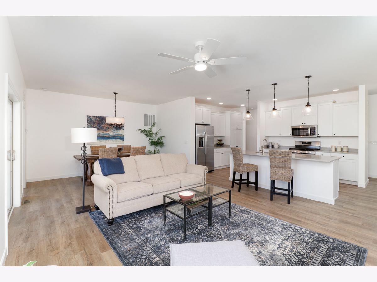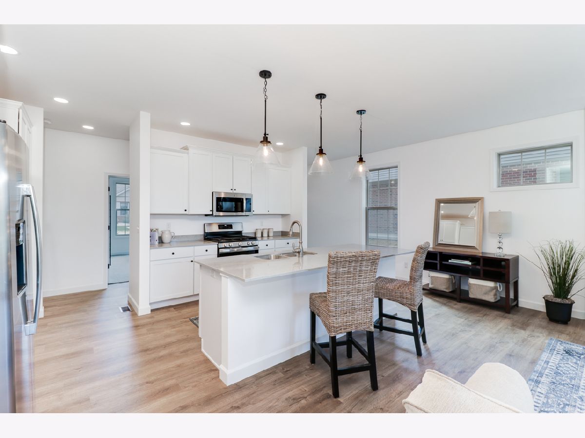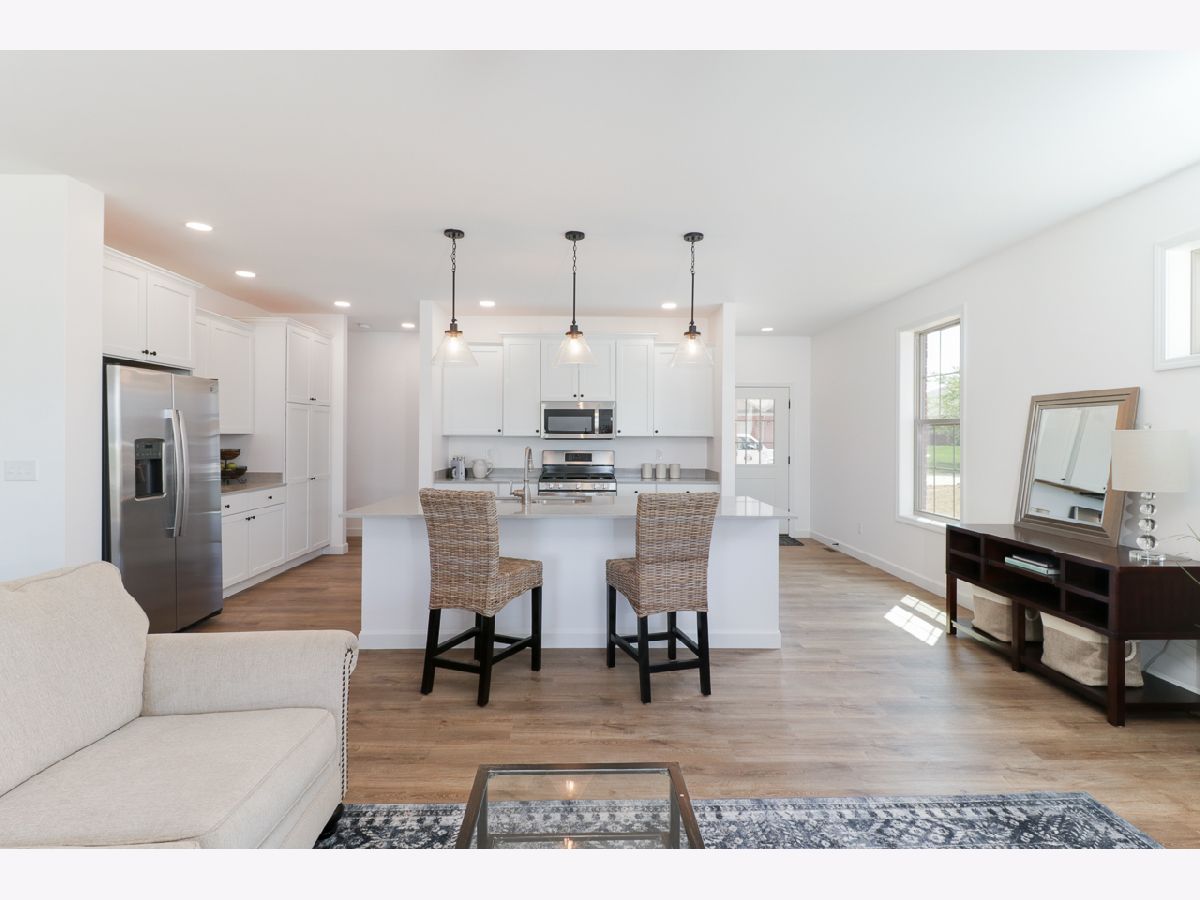 Motivated Sellers! New construction in a great community. Snow removal & lawn care provided by homeowners association. Well designed floor plan. Quality construction. White Merillat kitchen cabinets including large pantry cabinet. Low maintenance luxury vinyl plank flooring. Large covered patio with gas installed for future use. 9' ceilings. Quartz countertops. Pella windows. Extended common area in rear. Bath countertops are cultured marble with double vanity in primary bath. Transom windows on either side of fireplace. Note: Photos are of neighboring unit.