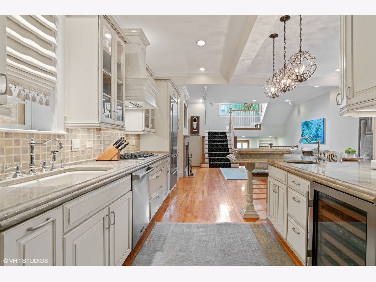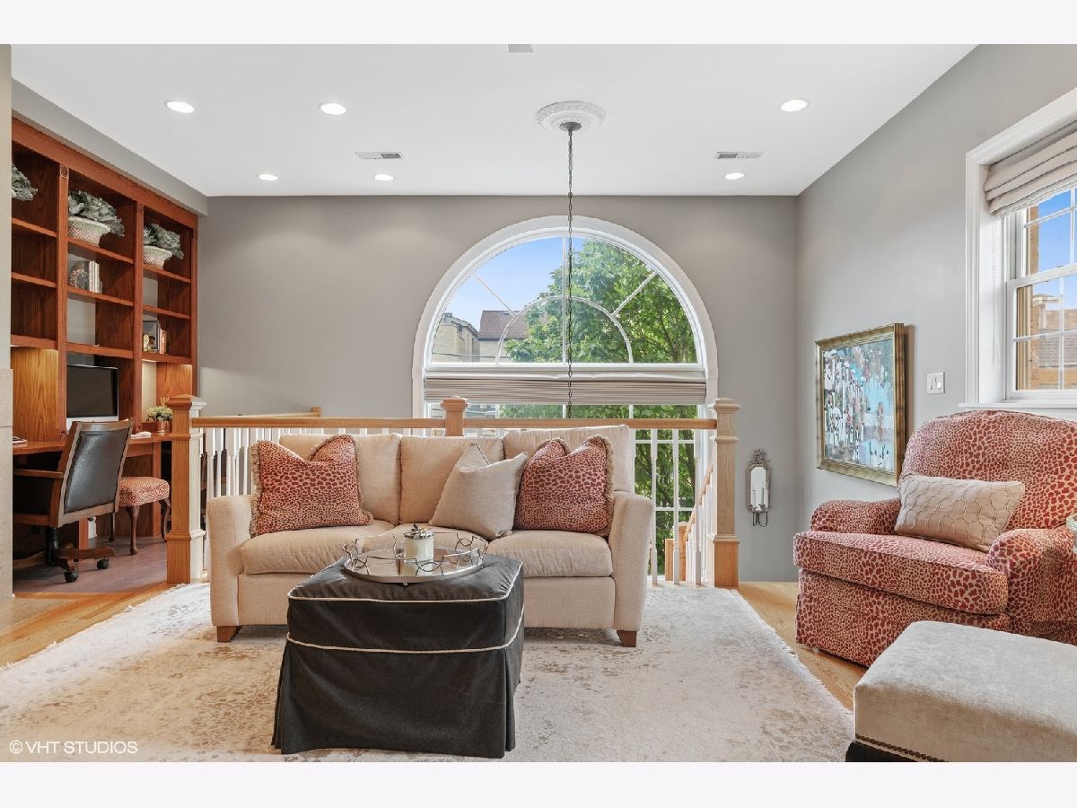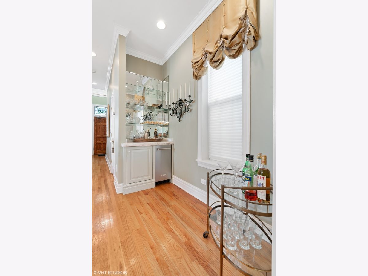 Stunning curb appeal and upgrades abound in this stately 5 bedroom/4.1 bathroom classic Chicago brick home ideally located in the heart of the Southport Corridor and Burley school district. Meticulously preserved and updated with today's living in mind, this gorgeous residence features a beautifully designed front porch with copper roof, ceiling detail and gas lantern lighting, custom millwork, built-ins and cabinetry throughout, numerous a/v upgrades, abundant natural light, timeless finishes and fixtures, custom lighting and beautifully manicured outdoor spaces. The main floor offers a formal living room with fireplace, separate dining room with custom built-in bar with gorgeous, quartzite countertop and floating mirrored shelving. The custom designed kitchen boasts commercial grade SubZero and Thermador appliances, quartzite countertops with detailed edging, generous storage overlooking an expansive great room with fireplace, built-ins and stairwell atrium that leads to a large mudroom ideally positioned for access to the backyard and garage. There are 2 staircases to the top floors of the home, including a sweeping rear staircase with massive windows allowing for dramatic ambiance and leads to the 2nd floor lofted library boasting grand built-in desks, shelving and an additional fireplace. The 2nd level also offers 3 large bedrooms, including 1 room with ensuite bathroom with a soaking tub, marble countertops and impeccable finishes, 2 additional large bedrooms each with built-ins/desks and large closets and a side by side laundry area complete this level. The top floor boasts an elegant primary retreat complete with separate office/sitting room that offers the ideal work-from-home layout complete with storage, built in television and overlooks the outdoor terrace with partial skyline views. The primary bedroom and bathroom offer a large walk-in closet, spa-like bathroom with separate soaking tub, gorgeous finishes and fixtures, dual vanity with storage and separate shower. The lower level features an oversized family room, 700 bottle wine cellar with custom built-in racks, dry bar with refrigerator, additional bedroom, full bathroom with shower and stunning subway tile and a plethora of storage closets/rooms. The back patio is an entertainer's dream featuring professionally designed landscape architecture, pavers, built-in grill including gas grill and a Green Egg and flanked with a brick fireplace with limestone mantle. Newer lot line to lot line 2.5 car masonry garage with additional storage. All right around the corner from the Southport Corridor's vibrant dining and shopping scene, transportation, health clubs, grocery stores including Whole Foods and a block from Margaret Donahue Park.