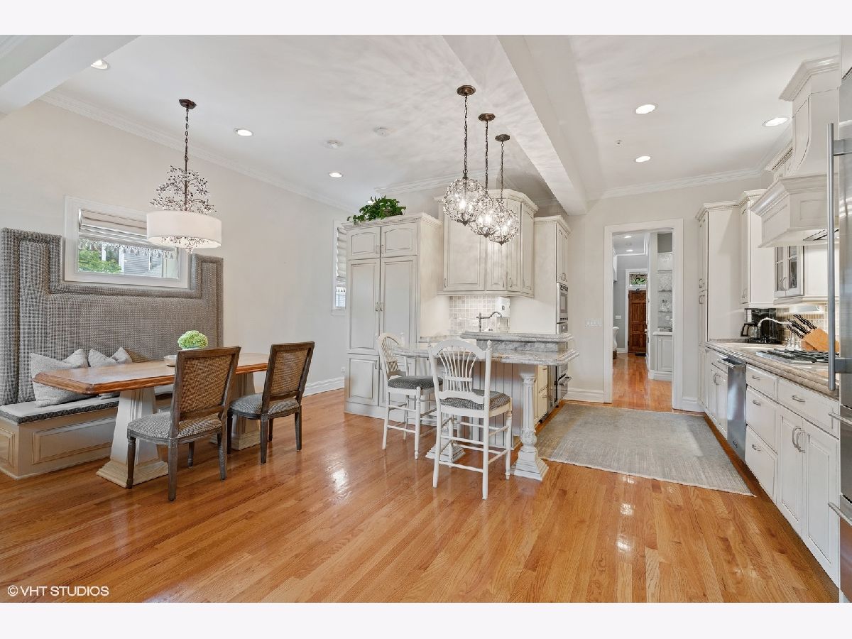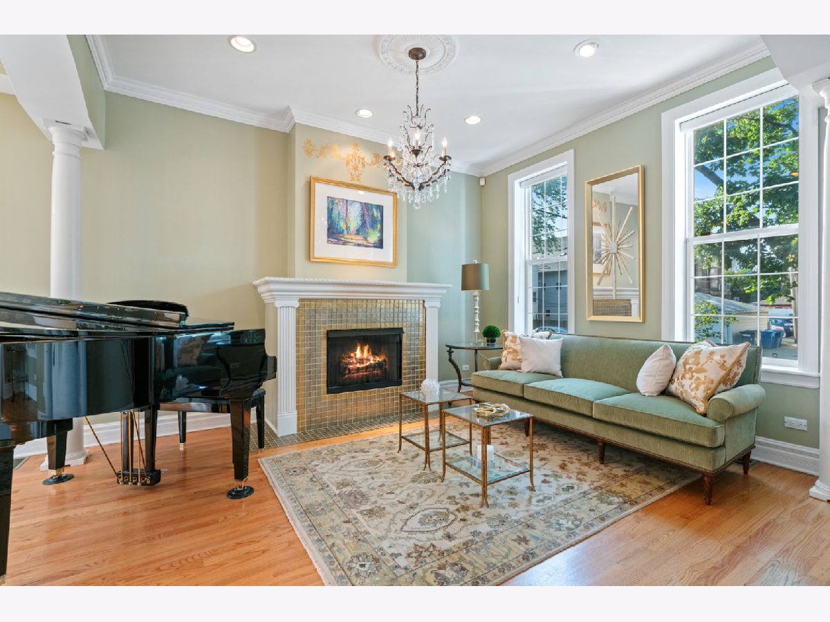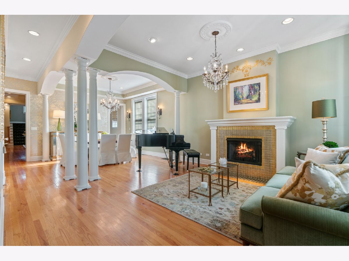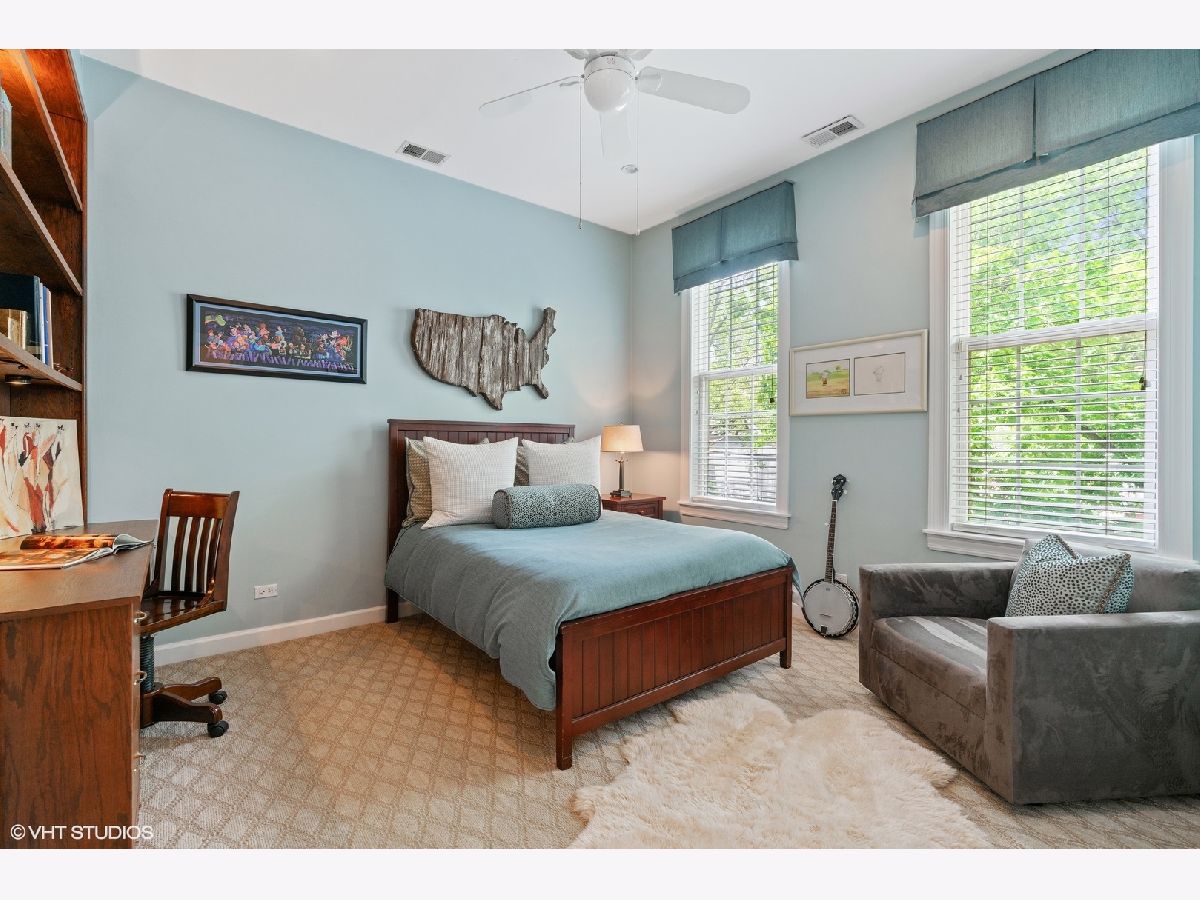 Stunning curb appeal and upgrades abound in this stately 5 bedroom/4.1 bathroom classic Chicago brick home ideally located in the heart of the Southport Corridor and Burley school district. Meticulously preserved and updated with today's living in mind, this gorgeous residence features a beautifully designed front porch with copper roof, ceiling detail and gas lantern lighting, custom millwork, built-ins and cabinetry throughout, numerous a/v upgrades, abundant natural light, timeless finishes and fixtures, custom lighting and beautifully manicured outdoor spaces. The main floor offers a formal living room with fireplace, separate dining room with custom built-in bar with gorgeous, quartzite countertop and floating mirrored shelving. The custom designed kitchen boasts commercial grade SubZero and Thermador appliances, quartzite countertops with detailed edging, generous storage overlooking an expansive great room with fireplace, built-ins and stairwell atrium that leads to a large mudroom ideally positioned for access to the backyard and garage. There are 2 staircases to the top floors of the home, including a sweeping rear staircase with massive windows allowing for dramatic ambiance and leads to the 2nd floor lofted library boasting grand built-in desks, shelving and an additional fireplace. The 2nd level also offers 3 large bedrooms, including 1 room with ensuite bathroom with a soaking tub, marble countertops and impeccable finishes, 2 additional large bedrooms each with built-ins/desks and large closets and a side by side laundry area complete this level. The top floor boasts an elegant primary retreat complete with separate office/sitting room that offers the ideal work-from-home layout complete with storage, built in television and overlooks the outdoor terrace with partial skyline views. The primary bedroom and bathroom offer a large walk-in closet, spa-like bathroom with separate soaking tub, gorgeous finishes and fixtures, dual vanity with storage and separate shower. The lower level features an oversized family room, 700 bottle wine cellar with custom built-in racks, dry bar with refrigerator, additional bedroom, full bathroom with shower and stunning subway tile and a plethora of storage closets/rooms. The back patio is an entertainer's dream featuring professionally designed landscape architecture, pavers, built-in grill including gas grill and a Green Egg and flanked with a brick fireplace with limestone mantle. Newer lot line to lot line 2.5 car masonry garage with additional storage. All right around the corner from the Southport Corridor's vibrant dining and shopping scene, transportation, health clubs, grocery stores including Whole Foods and a block from Margaret Donahue Park.