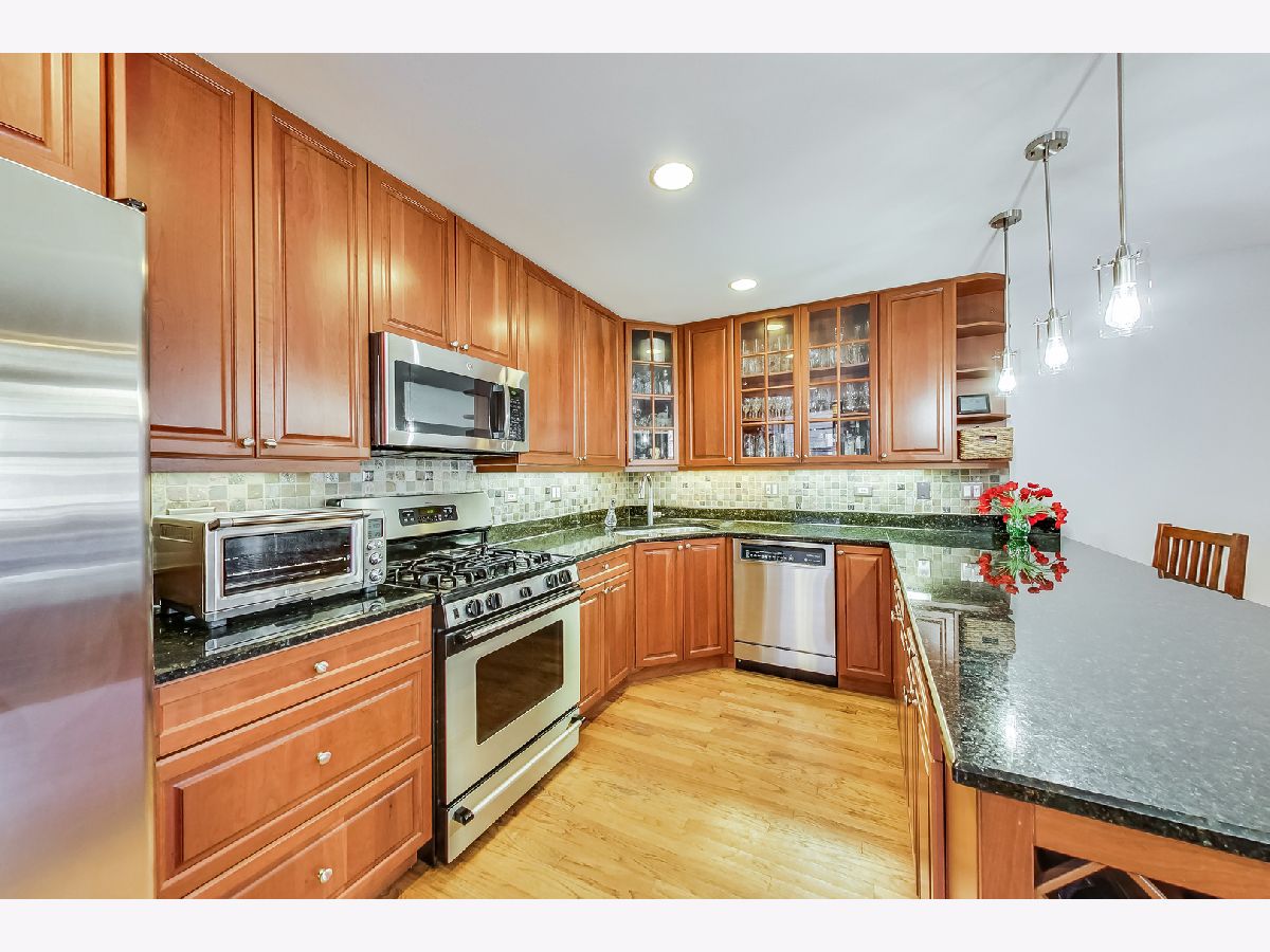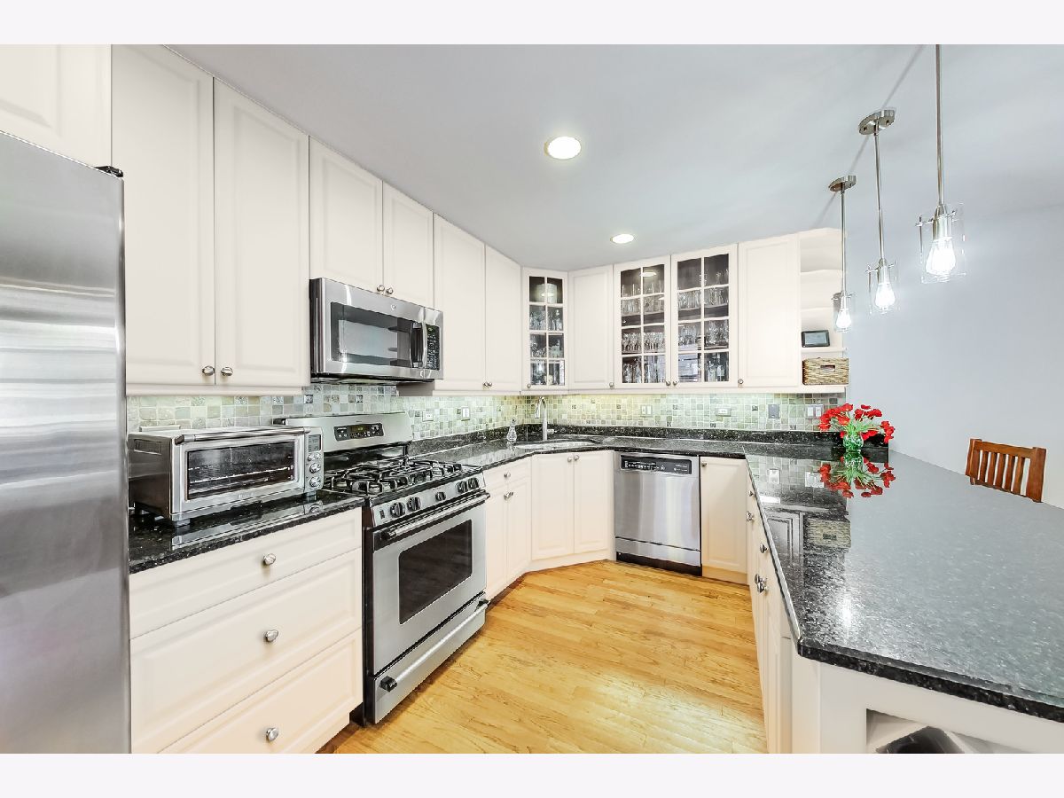 Fantastic south facing 2 bed/ 2 bath, nestled on beautiful residential George Street, in one of the most desirable areas of Lakeview and Burley School District. This beautiful, extra-large home features a terrific floorplan with generously proportioned rooms, hardwood floors throughout, fresh paint, and tons of closet/storage space Additional features include a sunny south facing living room with fireplace. Expansive, open kitchen with incredible cabinet space, custom backsplash, granite countertops and stainless-steel appliances. Kitchen opens up to a large family room with fireplace and separate dining room. Huge private rear deck, perfect for entertaining as well as access to shared common roof deck. Primary suite features two closets and large marble en-suite boasting dual vanities, whirlpool and separate shower. Sizable second bedroom and elegant second bath complete this home. In-unit washer/dryer and deeded parking included. Enjoy the conveniences of being in the heart of Lakeview, with close proximity to EL, health clubs, Whole Foods, and all the shopping, boutiques, restaurants, bars and coffee shops Lakeview has to offer.