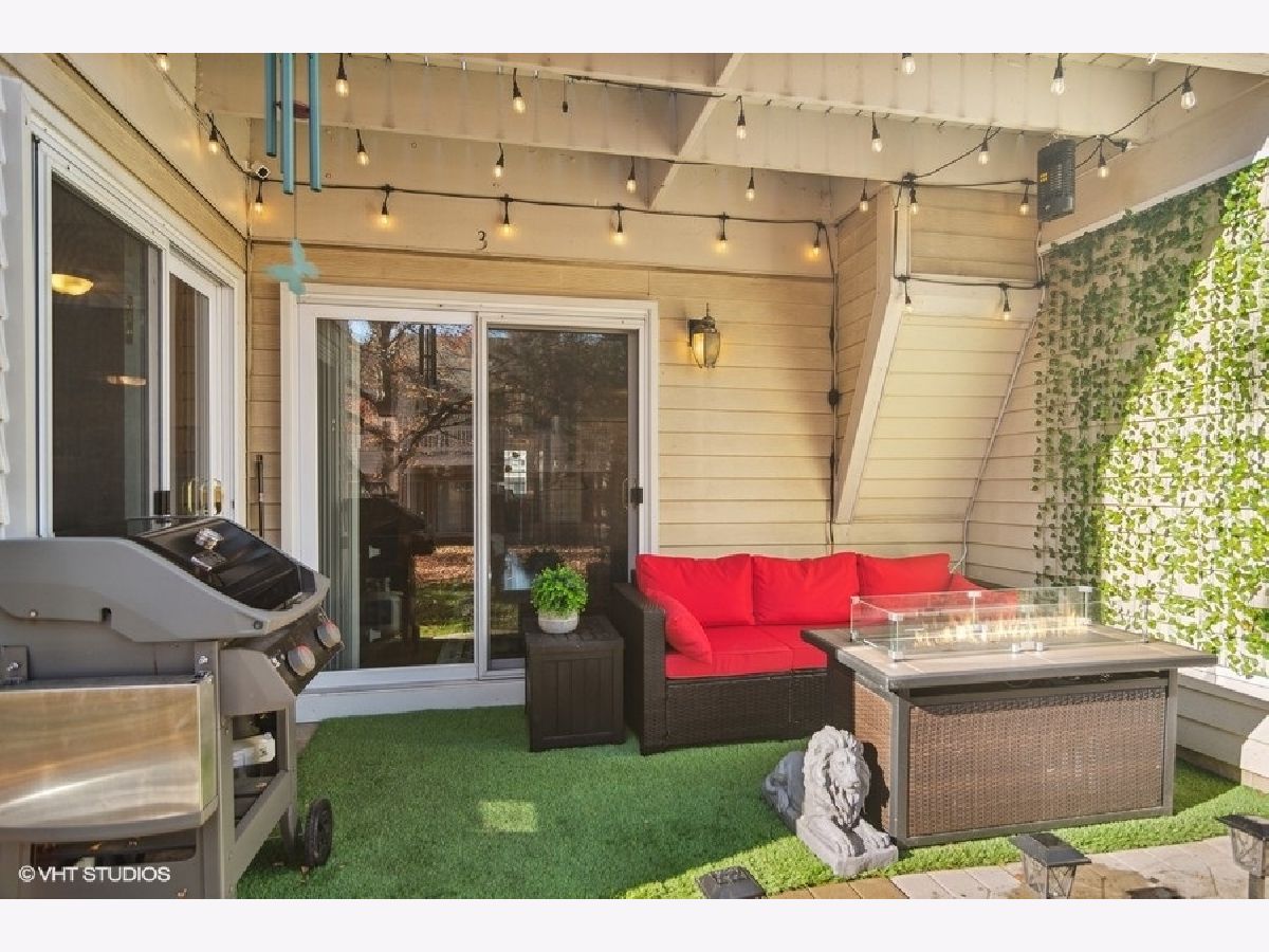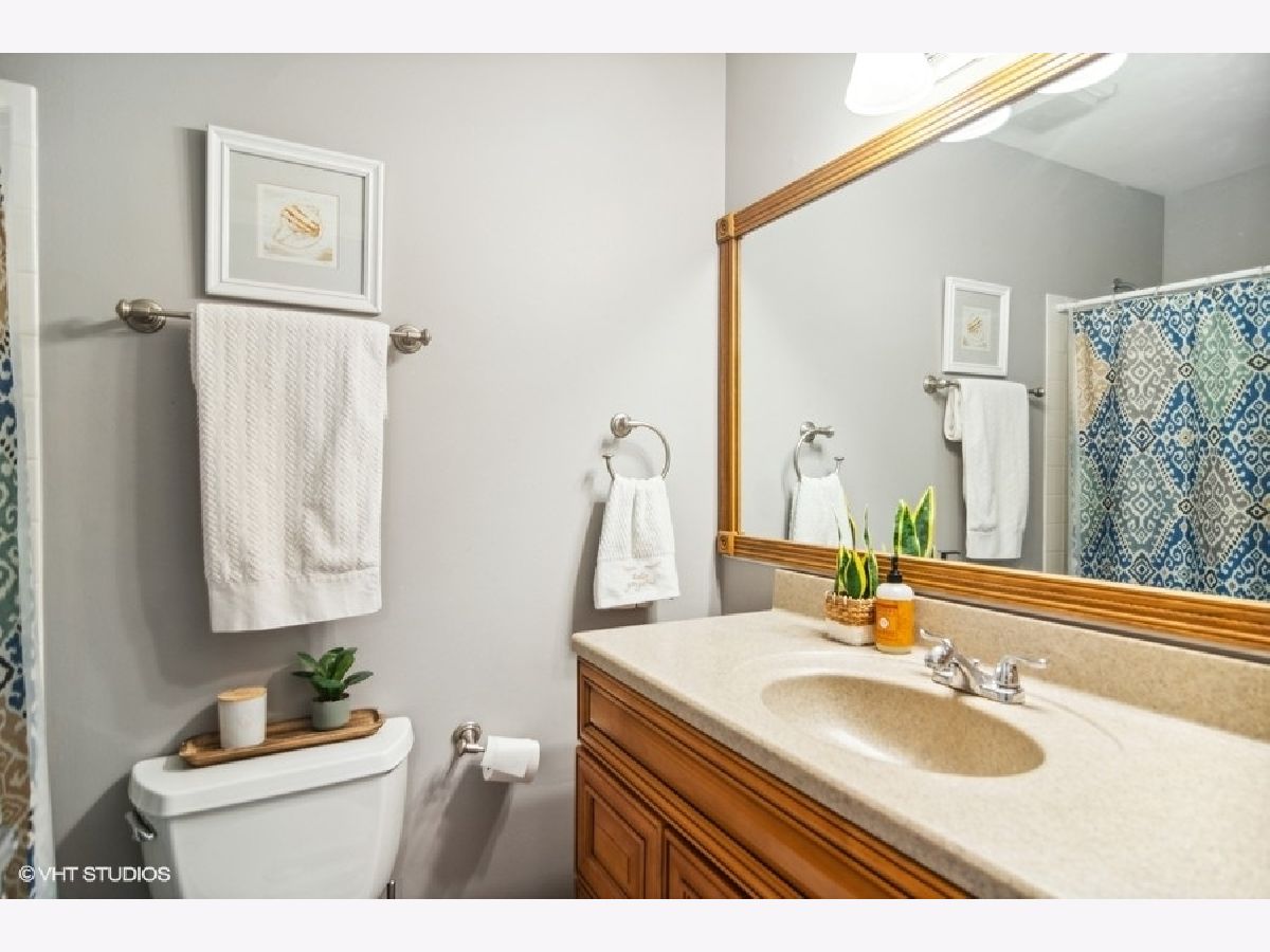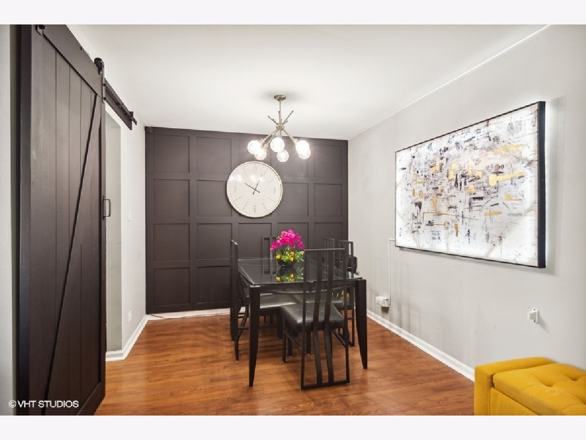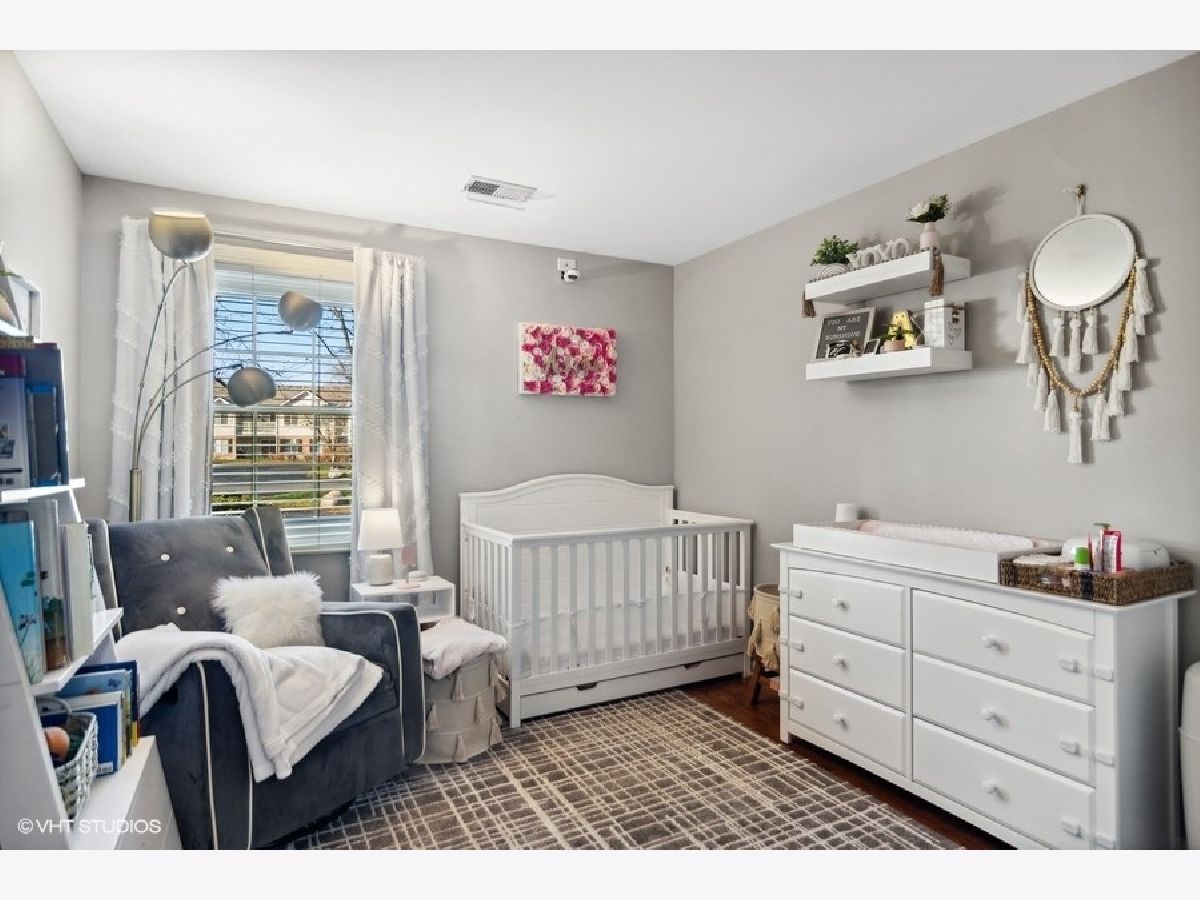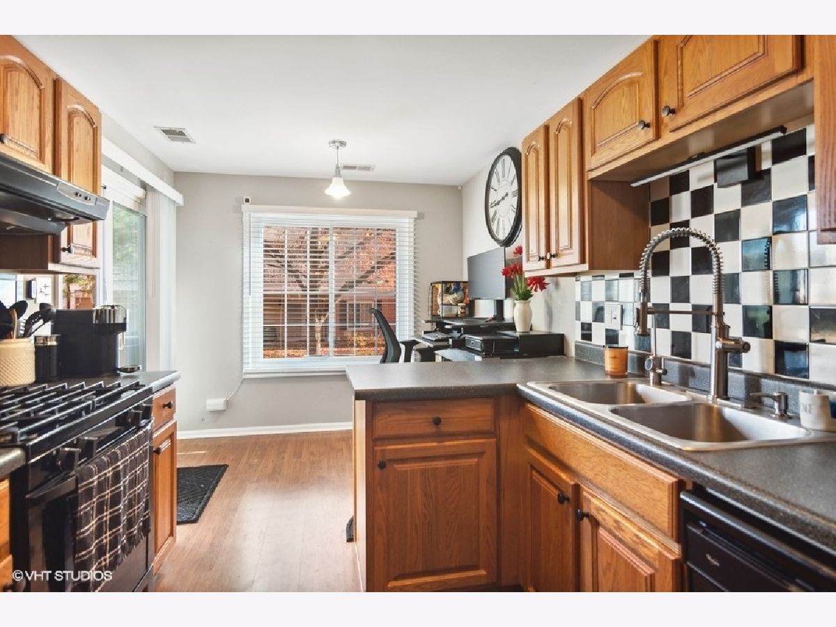 Nestled in the heart of Harvest Run, this beautifully renovated 2 bed, 2 bath condo is not one you want to miss! Step into an open concept living room and dining room boasting a fresh coat of paint, newer laminate flooring, and a modern board and batten feature wall. The kitchen features a barn door, solid wood cabinets, checkerboard backsplash, and an adjacent breakfast room with sliding door access to the patio. A covered patio is the perfect space for grilling, al fresco dining and entertaining, or simply enjoying some fresh air. Rest and relax in a spacious master bedroom with barn doors leading into an ensuite bathroom featuring a large walk-in closet, double sinks, and a glass enclosed shower area. A good sized second bedroom, second bathroom, and in-unit laundry room completes the unit. A generously sized one car detached garage offers space for a vehicle and small workshop/storage area. The detached garage has direct access to the common area of the condo. Minutes to shopping centers, Deer Grove Forest Preserve, schools, neighborhood parks and Palatine Bike Trail.