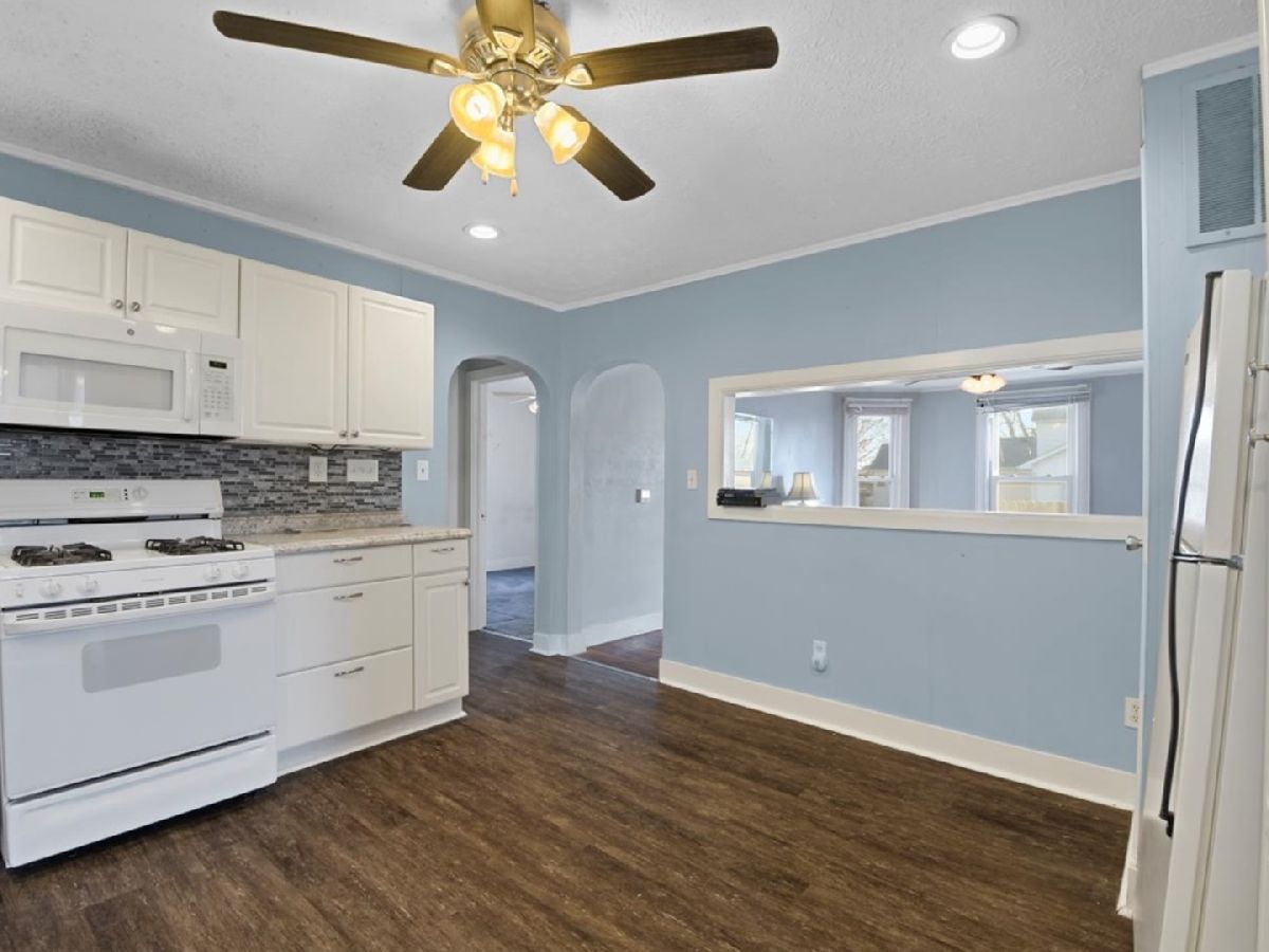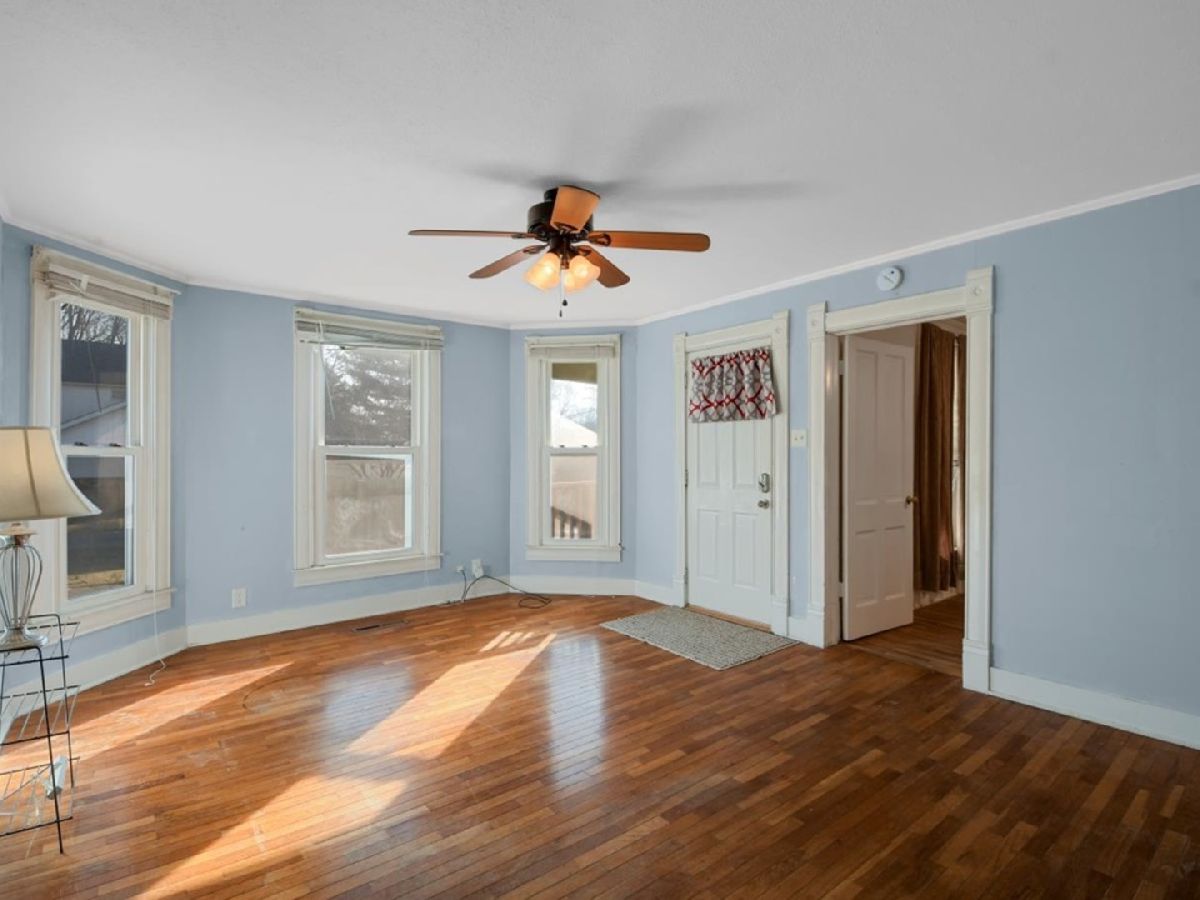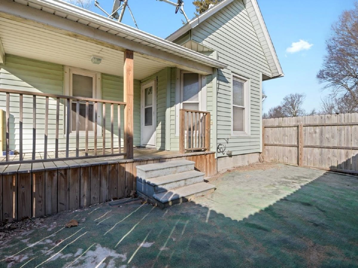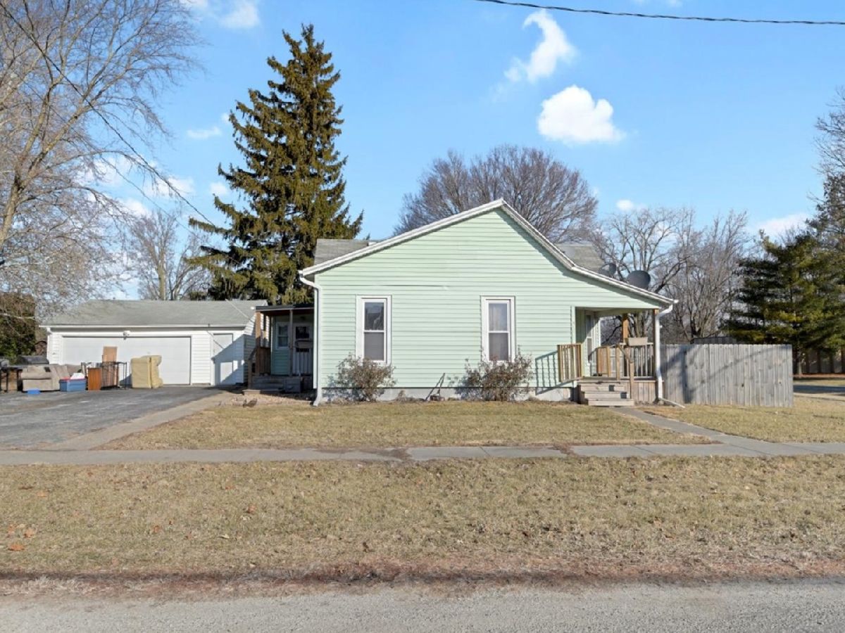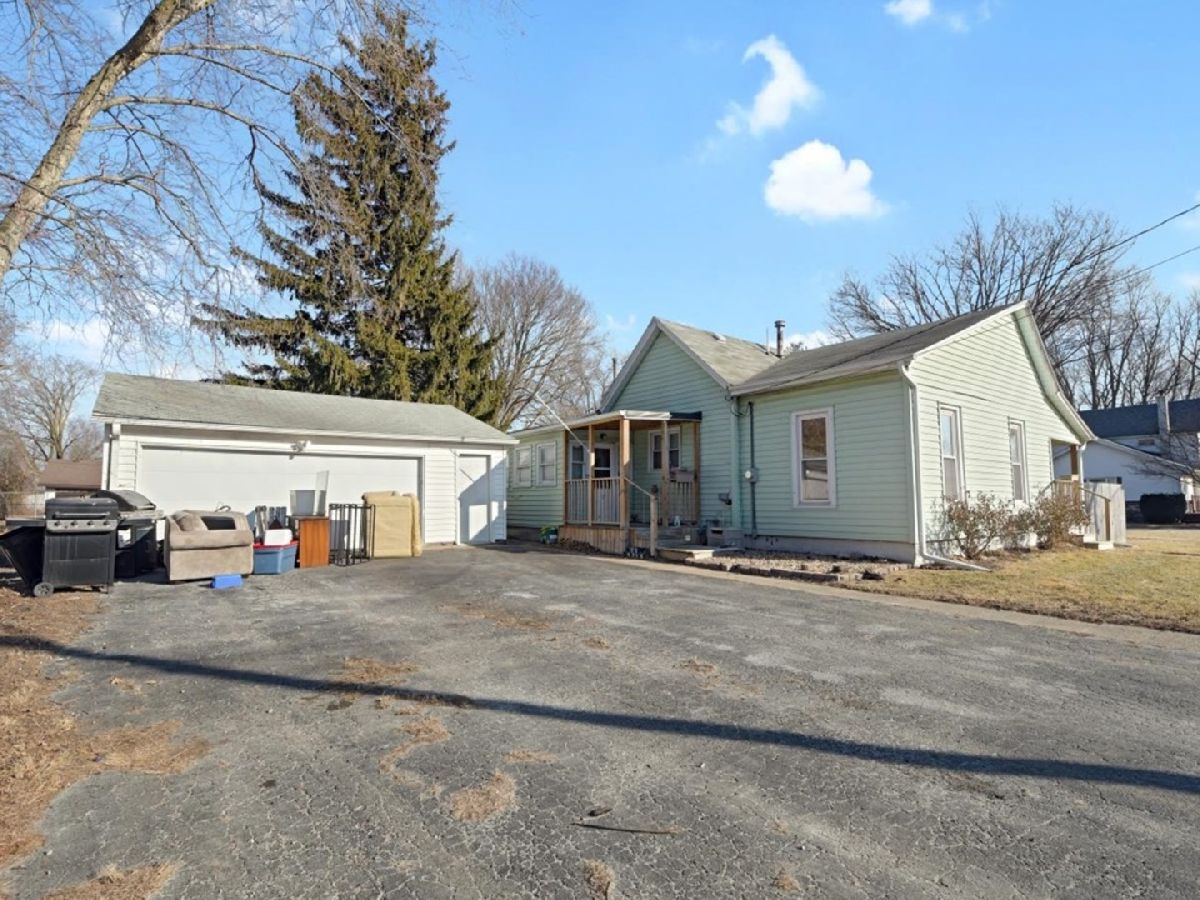Charming 3 bedroom with inviting front porch on a double lot. Over 1200 sq ft with a 2 car detached garage this home offers a great opportunity in a small community within teh Monticello school district. The living room features hardwood flooring, bay/bow window, arched doorway, and pass thru to kitchen. Nicely updated eat-in kitchen features tiled back splash, painted cabinets and laminate tops. Large laundry room with back porch access offers sink and great storage. Updates include HVAC in 2018, kitchen and bath 2018, rubber roof in 2018. Updated electrical panel. Property being sold as-is.