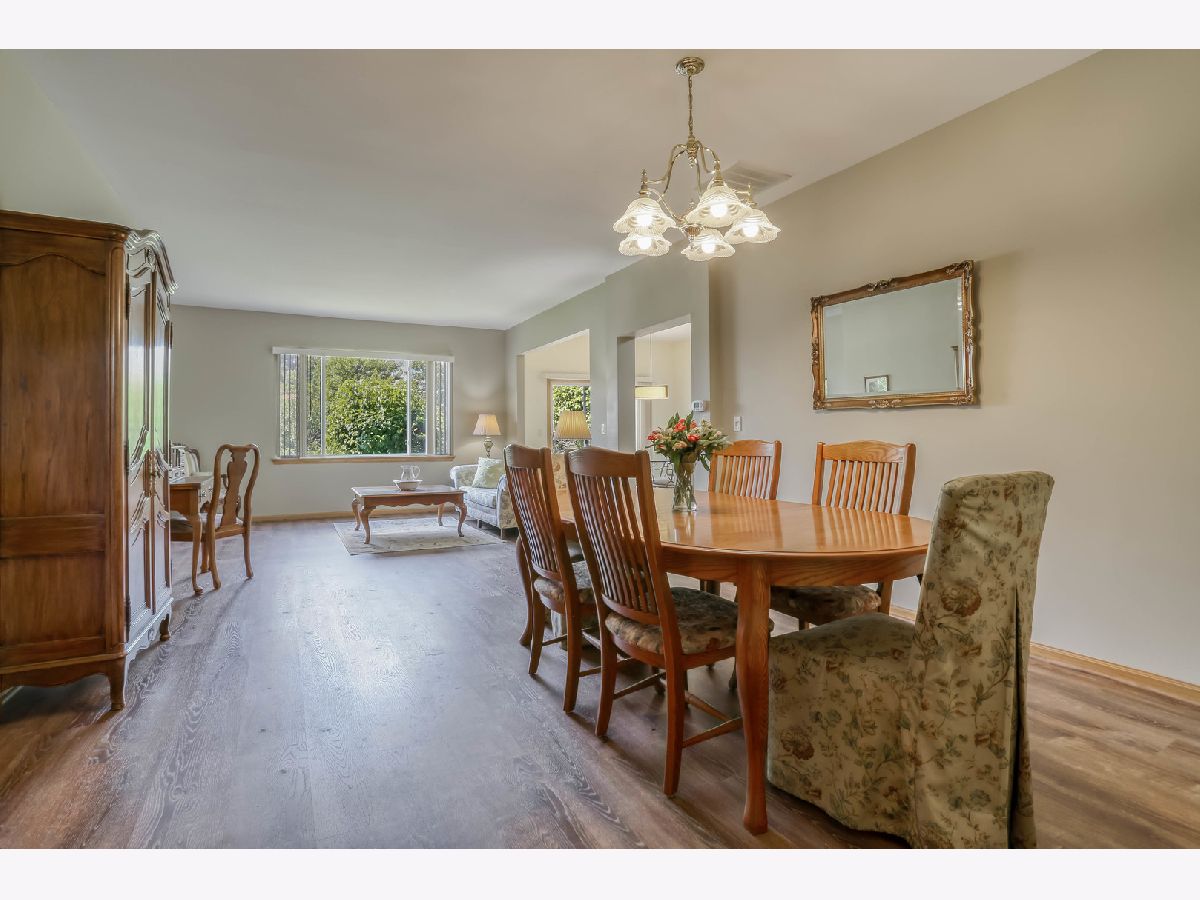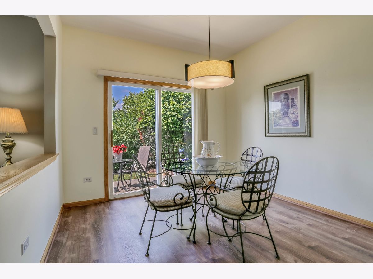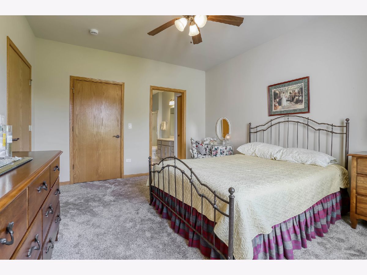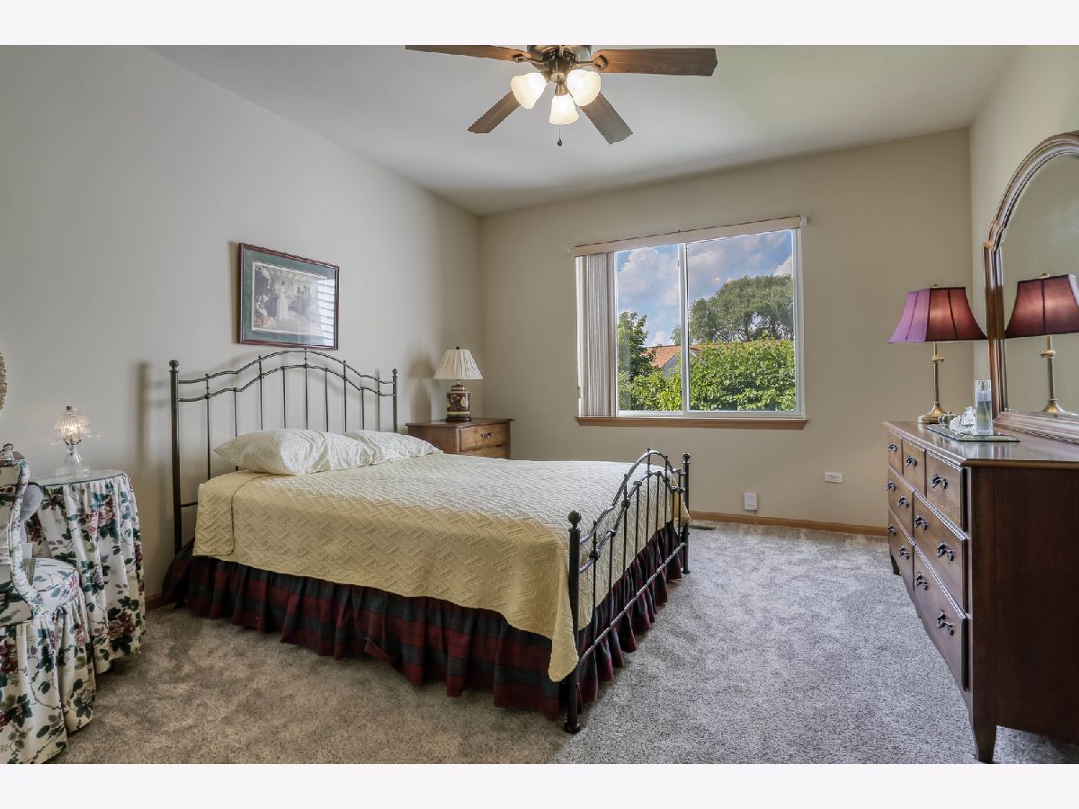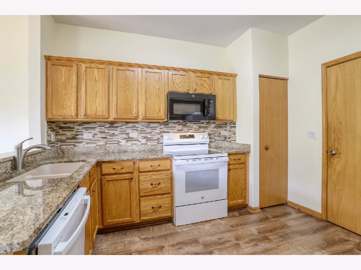 Ready for new owners, this refreshed Laguna RANCH model is beautifully updated with stylish touches throughout. Enjoy the quiet, picturesque setting in Carillon's 55+ Active Adult Community with no neighbors behind you. This move-in ready home boasts a bright and welcoming open floor plan designed for easy living. From the moment you step inside, you'll appreciate the airy 9-foot ceilings and the newer luxury vinyl flooring that flows seamlessly throughout the main living areas. The spacious dining room is ideal for both formal and casual dining occasions and opens to the expansive, versatile living room, creating an inviting space. The lovely eat-in kitchen is highlighted by an abundance of oak cabinetry, granite countertops, glass tile backsplash, and all newer appliances, just 1-2 years old. A sun-filled eating area with a modern drum light fixture is perfect for everyday meals. Step outside through the sliding glass door that leads to a quaint concrete patio that is tree-lined for privacy. The expansive primary bedroom suite features newer carpet, a generous walk-in closet, and direct access to the refreshed shared bathroom, which includes quartz counters and a large shower. A versatile second bedroom with a bay window makes a perfect guest room, office, or cozy den. The laundry room features a convenient closet and direct access to the 2 car garage. UPDATES INCLUDE: luxury vinyl floors and carpet (2023), roof, gutters, soffits/fascia (2023), interior painted (2023), smoke/carbon detectors (2025). Previous seller representations: air conditioner and furnace (2017), granite countertops and kitchen backsplash (2017), faucets and sinks throughout (2017), bathroom quartz countertop and painted vanity (2017), light fixtures and fans (2017), hot water heater (2016), washer and dryer (2016). Carillon is a gated, golf course community with indoor/outdoor pools, clubhouse, tennis courts, countless activities and much more. Ideal location near shopping dining and easy access to I-55 and expressways. Don't miss out on this beauty located in the Chelsea community.