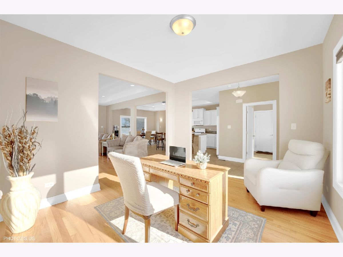 Welcome to this custom-built, all-brick home situated on 1.35 peaceful acres in highly desirable New Lenox, offering two dedicated office spaces-ideal for today's work-from-home lifestyle. Built in 2013 by a highly respected custom builder and meticulously maintained by its original owner, this home showcases exceptional craftsmanship, durability, and timeless design. The main level features hardwood flooring throughout and a thoughtfully designed kitchen with Ivory granite countertops, custom cabinetry, and a dual-fuel range (gas cooktop with electric oven). The kitchen floor was structurally reinforced with additional joists to support heavy tile and ensure long-term stability and peace of mind. Enjoy abundant natural light from large Andersen windows, known for their energy efficiency and quality. The home offers elegant details throughout, including tray ceilings, upgraded lighting, and ceiling fans in every bedroom. The second level includes three spacious bedrooms, all featuring hardwood floors and generous closet space. A true standout is the 12-foot walk-out basement, already finished with one bedroom and a full bathroom, plus extensive storage. The space offers exceptional potential to add two additional bedrooms, a recreation area, home gym, office, or theater-perfect for related living or future expansion. The all-brick construction, open acreage, and mature surroundings help keep the home naturally cooler in summer while providing privacy and tranquility. Conveniently located near top-rated schools, parks, shopping, and major highways, yet offering a quiet, private setting. This is a rare opportunity to own a solidly built, custom all-brick home by a quality builder, with outstanding flexibility, space, and long-term value.