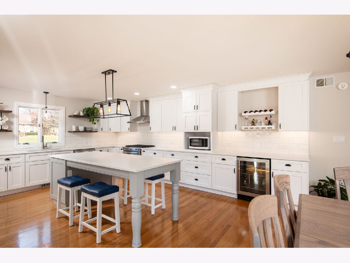 Welcome to fine living in the highly sought-after Erin Hills subdivision! This stunning oversized split-level home, perched atop a generous corner lot, is a true gem. Boasting both style and functionality, this residence offers a lifestyle of comfort and sophistication. As you approach, the exterior sets the tone for what awaits inside. The focal point of outdoor entertainment is the expansive patio adorned with new concrete, providing the perfect setting for large gatherings or intimate evenings under the stars. Step inside to discover a kitchen that is truly a chef's delight. Remodeled in 2021, the designer kitchen features Whirlpool appliances, quartz countertops, a large island, built-in wine rack, and a convenient beverage fridge. The adjacent spacious eatery is the ideal spot for meals or entertaining guests. The lower family room features a stone wall and wood-burning fireplace, built-in workstations that make it easy to stay productive during work-from-home days, while a storage closet and powder room add to the convenience. The lower family room seamlessly opens to the massive outdoor fenced patio, creating a harmonious indoor-outdoor flow. The upper-level hosts three generously sized bedrooms, including a master suite that defines luxury living. The updated bathroom is a spa-like retreat, highlighting a double vanity, soaking tub, and a walk-in shower with a bench. The master bedroom is complete with a large walk-in closet featuring built-in shelving, as well as an additional spacious closet. Descend to the fully finished sub-basement with a large storage room that provides ample space for seasonal items, while a full bathroom and laundry facilities offer additional functionality. Revel in the brand-new high-end carpeting that has just been installed downstairs. Car enthusiasts and hobbyists alike will be delighted by the extra-deep, heated garage capable of accommodating up to four vehicles. Complete with a side-load garage door, this outdoor space is designed for convenience and accessibility, making it a haven for car aficionados, mechanics, or anyone with a penchant for spacious storage. There is a half-bath in the garage along with hot running water! Immerse yourself in the comfort, style, and functionality that this property offers. Many upgrades in last couple years including new tear off roof in late 2023. Do not miss the opportunity to make this dream home yours!