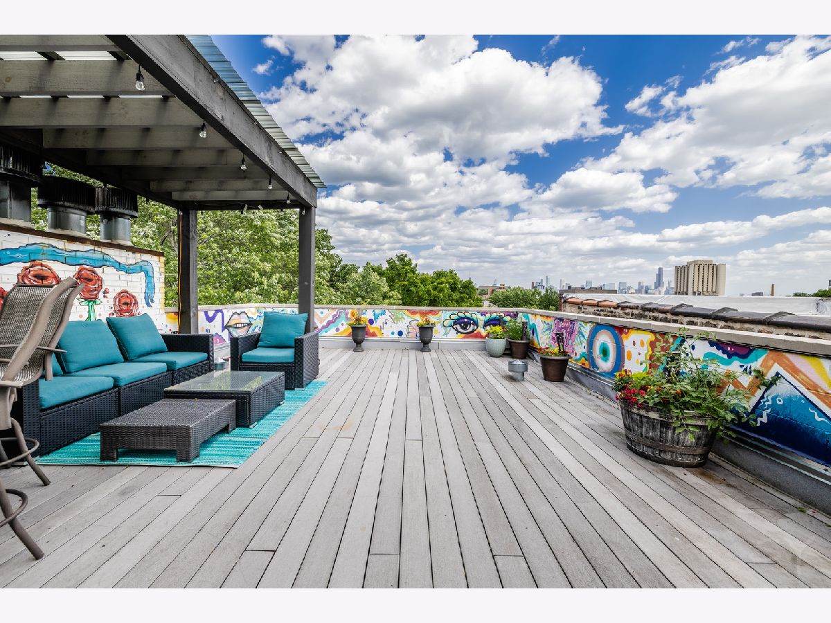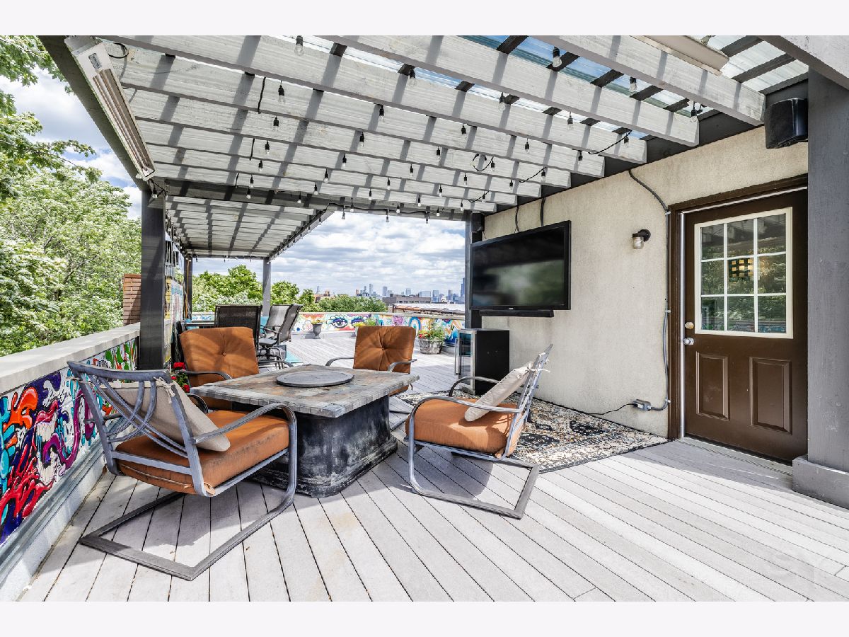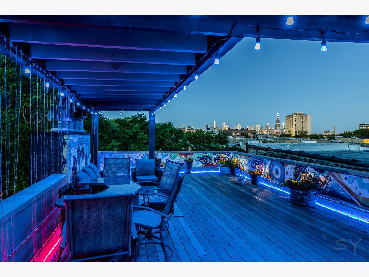 HIGHEST AND BEST OFFERS DUE AT 5PM MONDAY JUNE 17! Stunning contemporary penthouse with PRIVATE ROOFTOP DECK, Super high 12+' ceilings & maple hardwood floors! This home is sun drenched with GIANT windows in the living room as well as custom crown molding with LED lights. Gas burning fireplace. One of a kind stainless steel counter tops in the kitchen with BRAND NEW STAINLESS STEEL APPLIANCES June 2024. BRAND NEW, gorgeous, gut rehabbed custom en suite primary bathroom with heated floors, rain shower, and large soaking tub. 3 private outdoor spaces including a front balcony, back deck, and HUGE BEAUTIFUL PRIVATE ROOFTOP deck with full skyline views and private interior access with floating staircase. This rooftop deck spans the entire length of the building with grey trex maintenance free composite decking and a custom built pergola with UV protectant roof with commercial heaters to extend your outdoor season in the Spring and the Fall. One of the nicest rooftop decks you'll ever see. In unit washer/dryer and one garage spot included. Great location with easy access to the 606, the Western Blue Line, and all the nightlife, dining, and shopping in Bucktown, Wicker park, and Ukrainian Village. 3 blocks from 209 acre park!! Agent owned