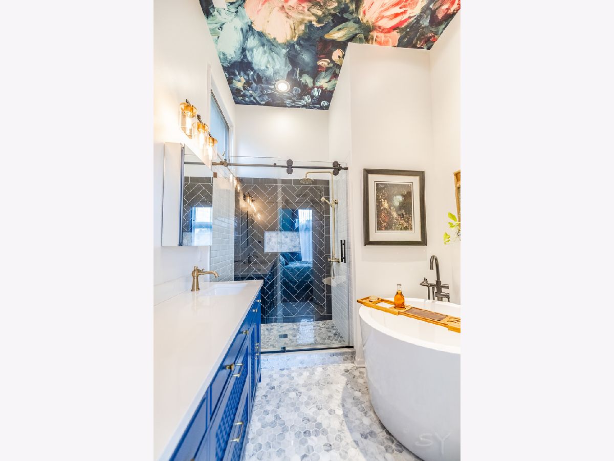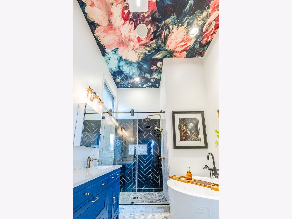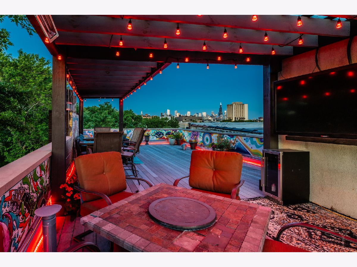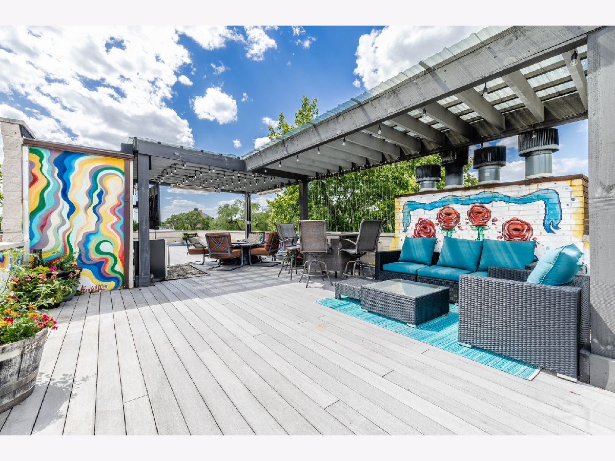 HIGHEST AND BEST OFFERS DUE AT 5PM MONDAY JUNE 17! Stunning contemporary penthouse with PRIVATE ROOFTOP DECK, Super high 12+' ceilings & maple hardwood floors! This home is sun drenched with GIANT windows in the living room as well as custom crown molding with LED lights. Gas burning fireplace. One of a kind stainless steel counter tops in the kitchen with BRAND NEW STAINLESS STEEL APPLIANCES June 2024. BRAND NEW, gorgeous, gut rehabbed custom en suite primary bathroom with heated floors, rain shower, and large soaking tub. 3 private outdoor spaces including a front balcony, back deck, and HUGE BEAUTIFUL PRIVATE ROOFTOP deck with full skyline views and private interior access with floating staircase. This rooftop deck spans the entire length of the building with grey trex maintenance free composite decking and a custom built pergola with UV protectant roof with commercial heaters to extend your outdoor season in the Spring and the Fall. One of the nicest rooftop decks you'll ever see. In unit washer/dryer and one garage spot included. Great location with easy access to the 606, the Western Blue Line, and all the nightlife, dining, and shopping in Bucktown, Wicker park, and Ukrainian Village. 3 blocks from 209 acre park!! Agent owned