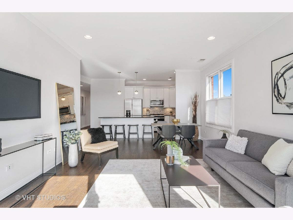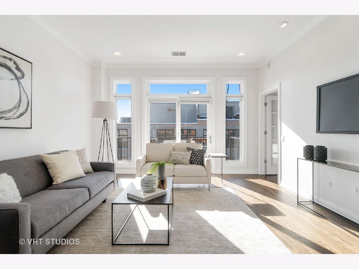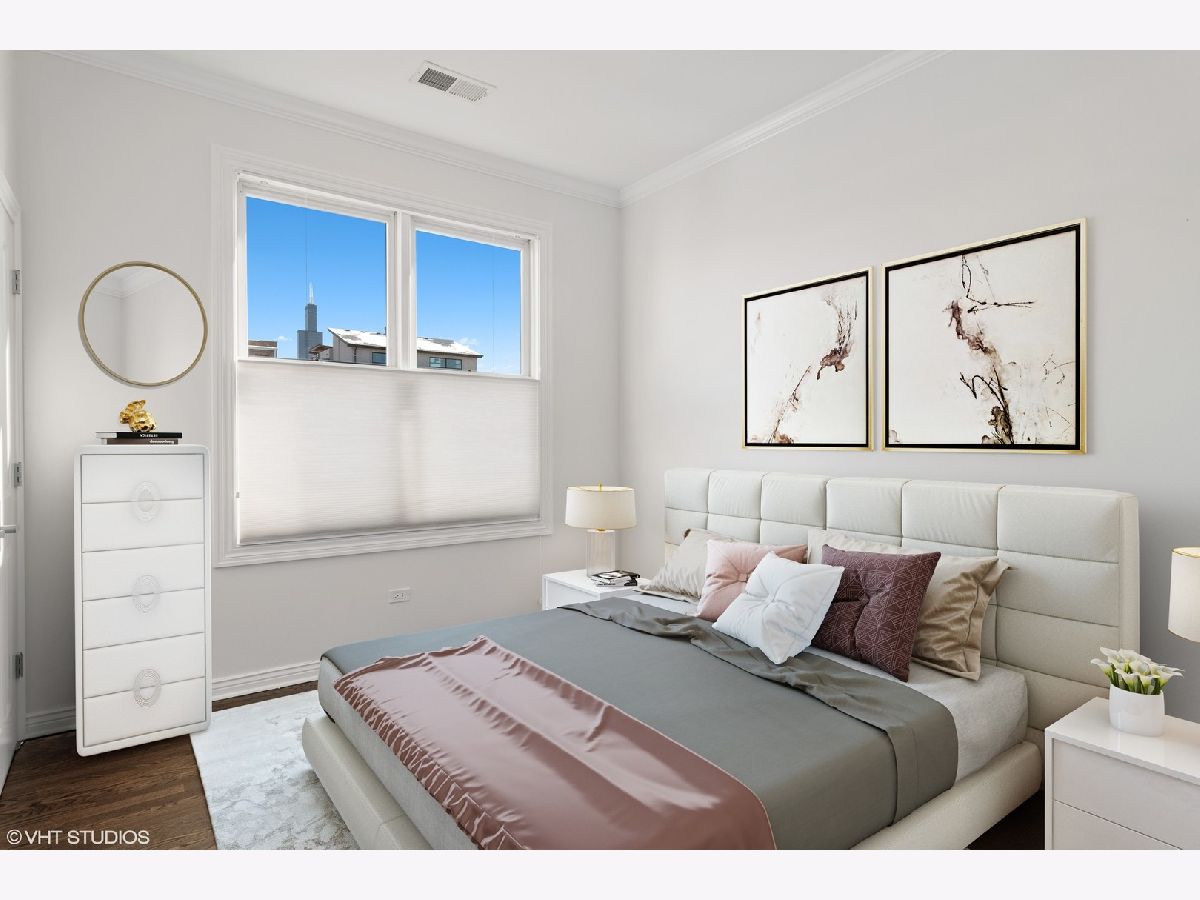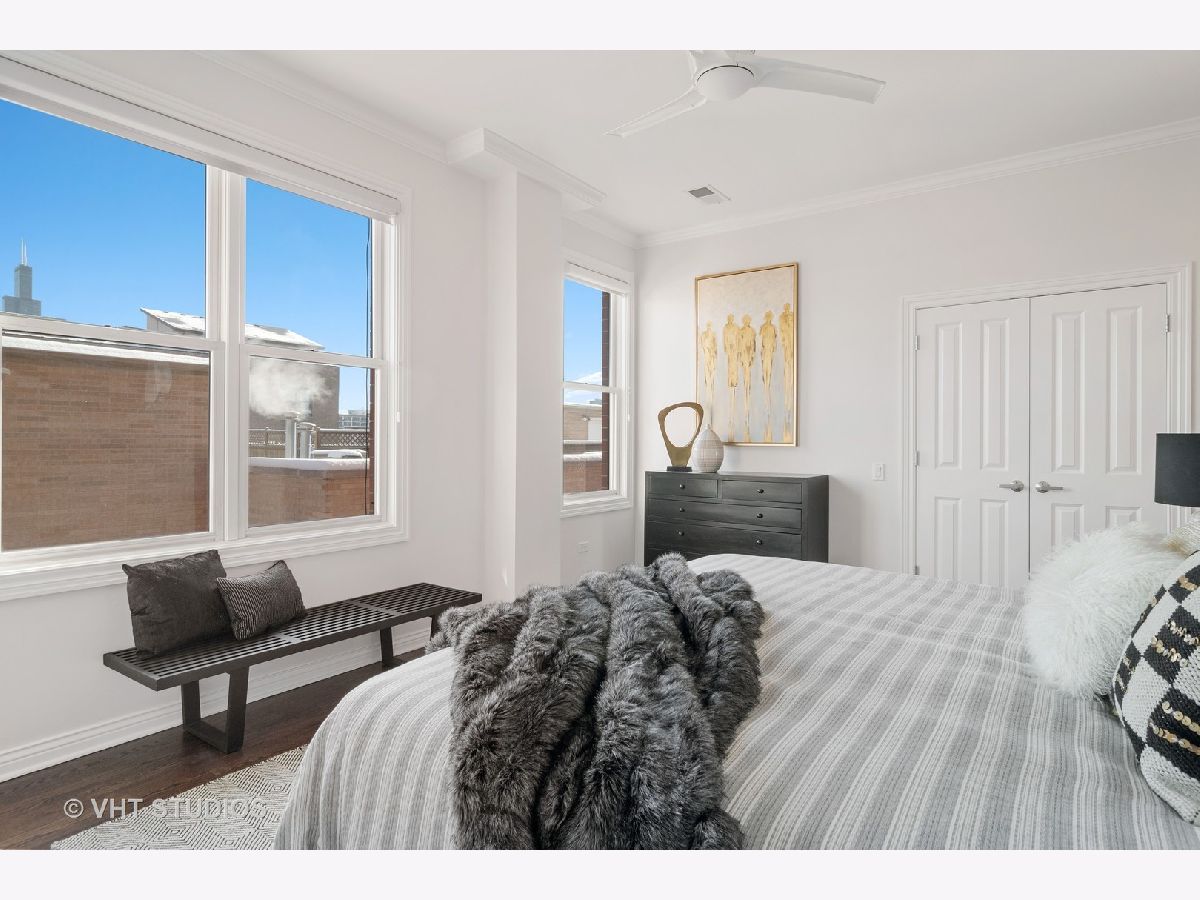 Outstanding corner three bedroom, two bathroom unit in a boutique elevator building in the heart of the West Loop! Coveted open concept floor plan provides a spacious dining and entertaining area which opens up to a balcony with Skyline views of the City! Open white kitchen with marble backsplash, Bosch dishwasher, new refrigerator and oven and an island with seating for up to four. Luxurious primary suite features a bedroom that has ample space for a King-sized bed, tons of organized closets, and a spa bathroom with dual vanities and a separate tub plus shower. Freshly painted throughout with newly refinished hardwood floors. This unit comes with two deeded, heated garage parking spaces with extra storage space. Close to Skinner Park and Skinner School, Randolph Street's amazing shops and restaurants, and the Morgan & Ashland Pink/Green line "L" stations. Easy access to Rush, United Center, & the Expressway. Not to be missed!