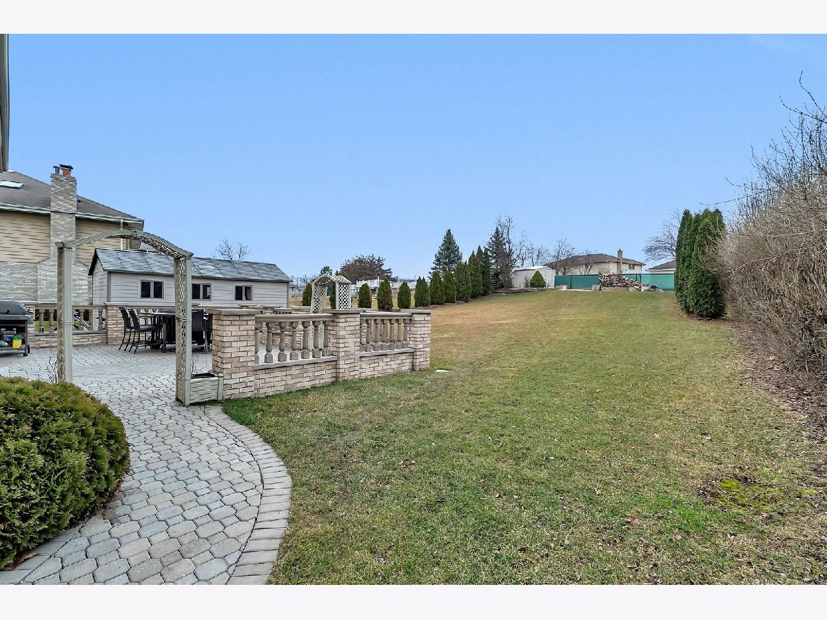 Welcome to your dream home in the highly sought-after subdivision of Erin Hills, Homer Glen! This spacious 4-bedroom, 2.5-bathroom house offers luxurious living spaces and modern amenities throughout. As you enter, you'll be greeted by high ceilings adorned with impressive chandeliers, setting the tone for elegance and comfort. To the left, a versatile dining room awaits. Nearby, a convenient half bath adds to the main floor's functionality. Venture further in to discover an office space providing flexibility to suit your lifestyle. The heart of the home lies in the high-end kitchen, boasting a wine fridge, top-of-the-line appliances, and granite countertops. An adjacent eating area overlooks the expansive backyard. Next to the eating area is the living room with plenty of space to entertain with a cozy fireplace. Upstairs, the impressive master bedroom awaits, complete with a spacious walk-in closet and an updated ensuite bathroom. Pamper yourself in the master bath, featuring a luxurious soaking tub and tile shower. Down the hall, discover another fully updated bathroom with a tile shower and double sink vanity, offering modern sophistication for the entire family. Three additional bedrooms, each with custom closets, provide ample space. The finished basement adds versatility to this already stunning home, boasting an electric fireplace, a full custom made wet bar with quartz countertops, an additional wine fridge, and two storage rooms for added convenience. The backyard is complete with a brick patio and a large shed, offering endless possibilities for outdoor enjoyment and entertaining. With a 3-car garage and extra wide stone driveway providing ample parking and storage space, this home truly has it all. Don't miss your chance to own this exquisite property in the desirable Erin Hills subdivision. Schedule your showing today and make this house your forever home!