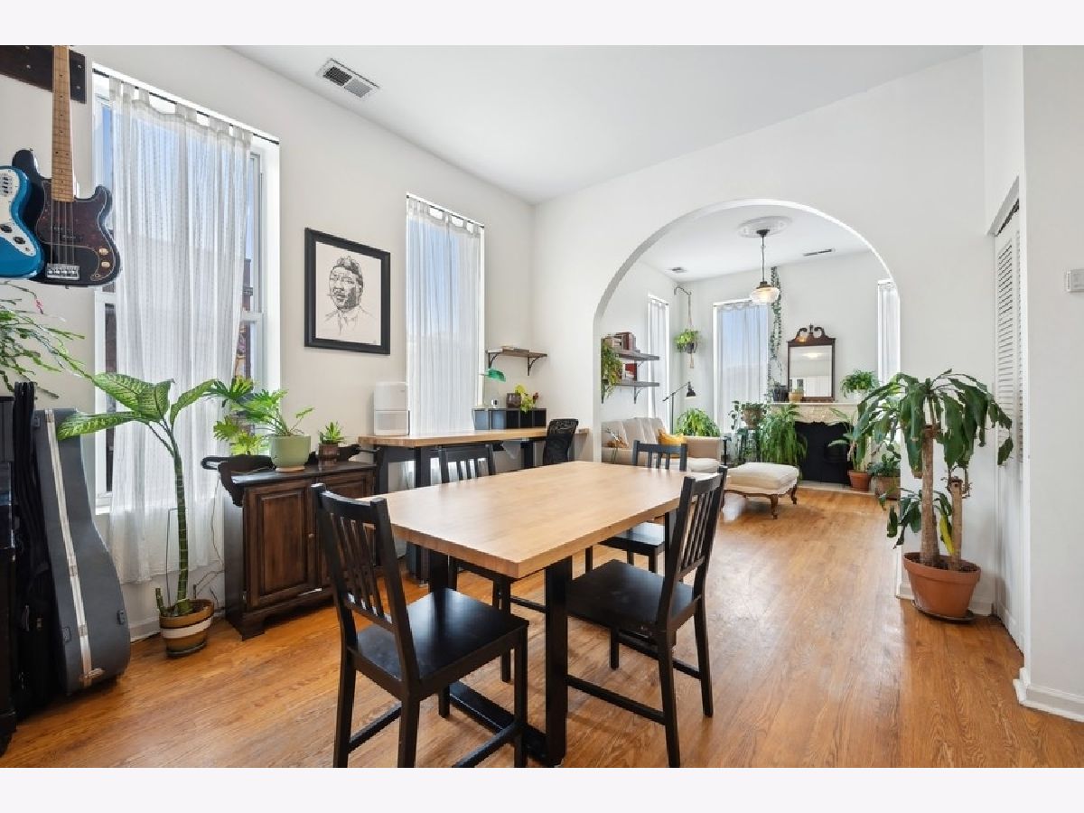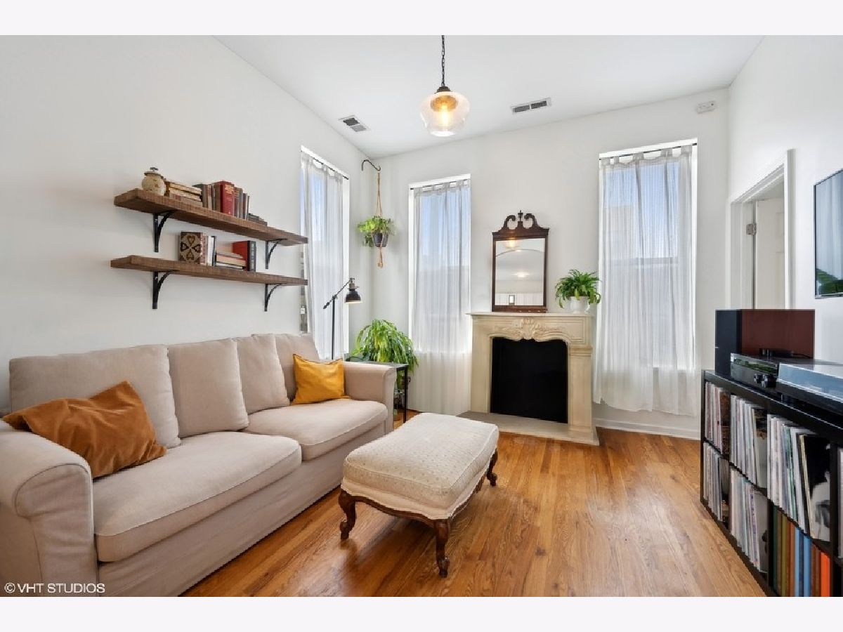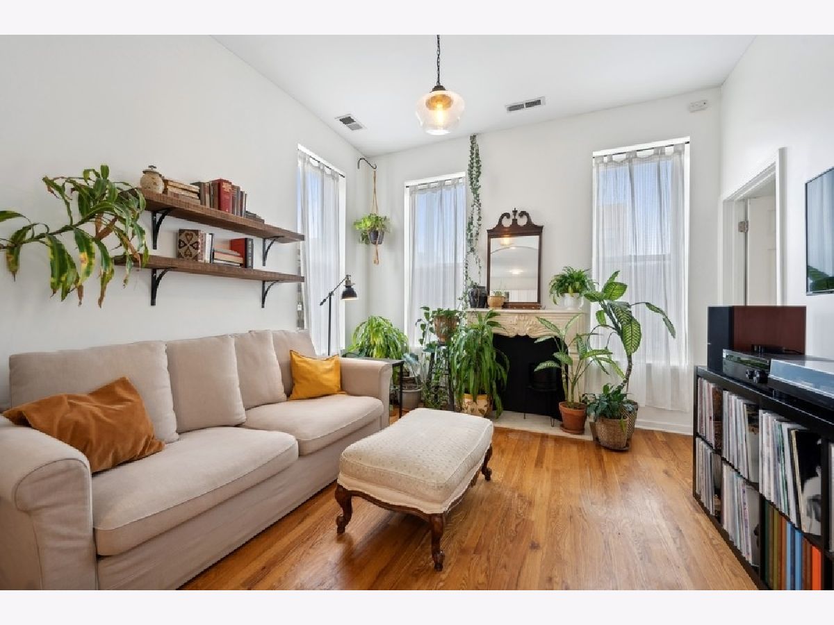 Fantastic Wicker Park two bedroom, one bath corner unit condo with an abundance of windows providing gorgeous natural light. Great open layout from the living room through to the kitchen. A charming arched walkway defines the living area featuring a charming decorative fireplace with mantel. Updated kitchen includes new island with butcher block top, cabinets, granite countertops, sink and oven hood. Updated bath offers new vanity with granite and floor tile. Spacious bedrooms with sizable closets. Hardwood floors thoughout. Central a/c. Free laundry in the basement. Easy street parking. Well run association with 36k in reserves! Walk to The 606, Western Blue Line, nightlife on Division Street, music venues and much more! Easy access to the highway. New roof access structure, door and flashing. One rental unit permitted. Minimum six month rental. A walkers dream with boutique shopping, cafes and nightlife all right outside your front door!