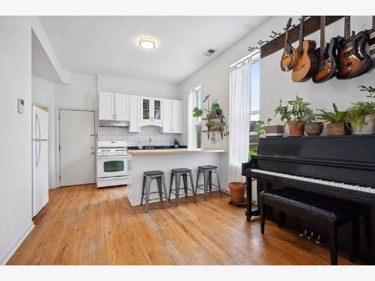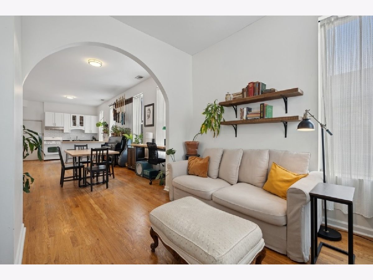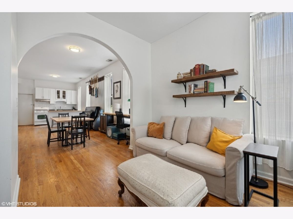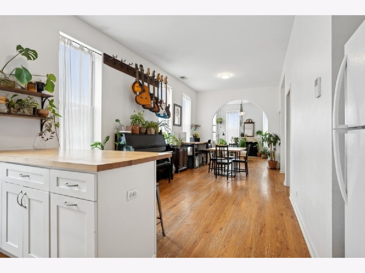 Fantastic Wicker Park two bedroom, one bath corner unit condo with an abundance of windows providing gorgeous natural light. Great open layout from the living room through to the kitchen. A charming arched walkway defines the living area featuring a charming decorative fireplace with mantel. Updated kitchen includes new island with butcher block top, cabinets, granite countertops, sink and oven hood. Updated bath offers new vanity with granite and floor tile. Spacious bedrooms with sizable closets. Hardwood floors thoughout. Central a/c. Free laundry in the basement. Easy street parking. Well run association with 36k in reserves! Walk to The 606, Western Blue Line, nightlife on Division Street, music venues and much more! Easy access to the highway. New roof access structure, door and flashing. One rental unit permitted. Minimum six month rental. A walkers dream with boutique shopping, cafes and nightlife all right outside your front door!