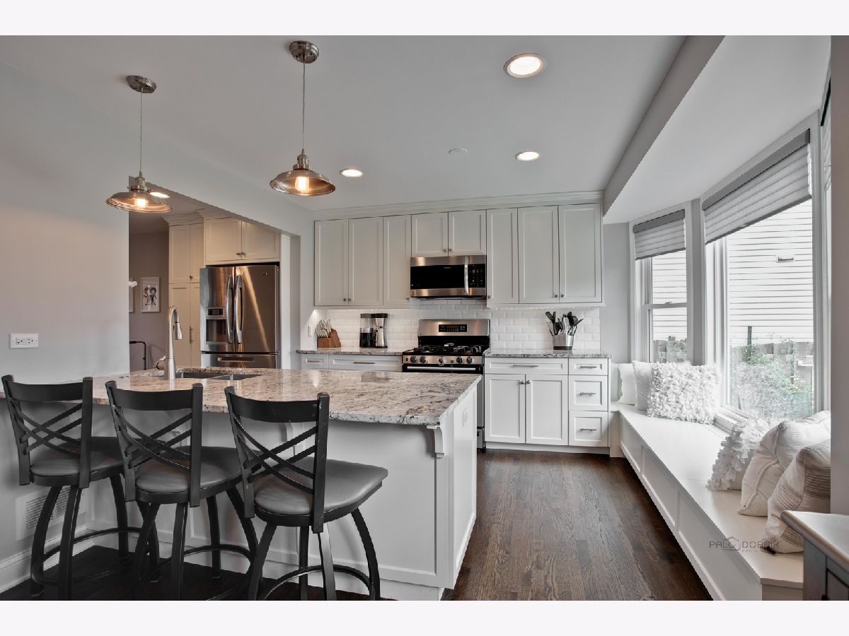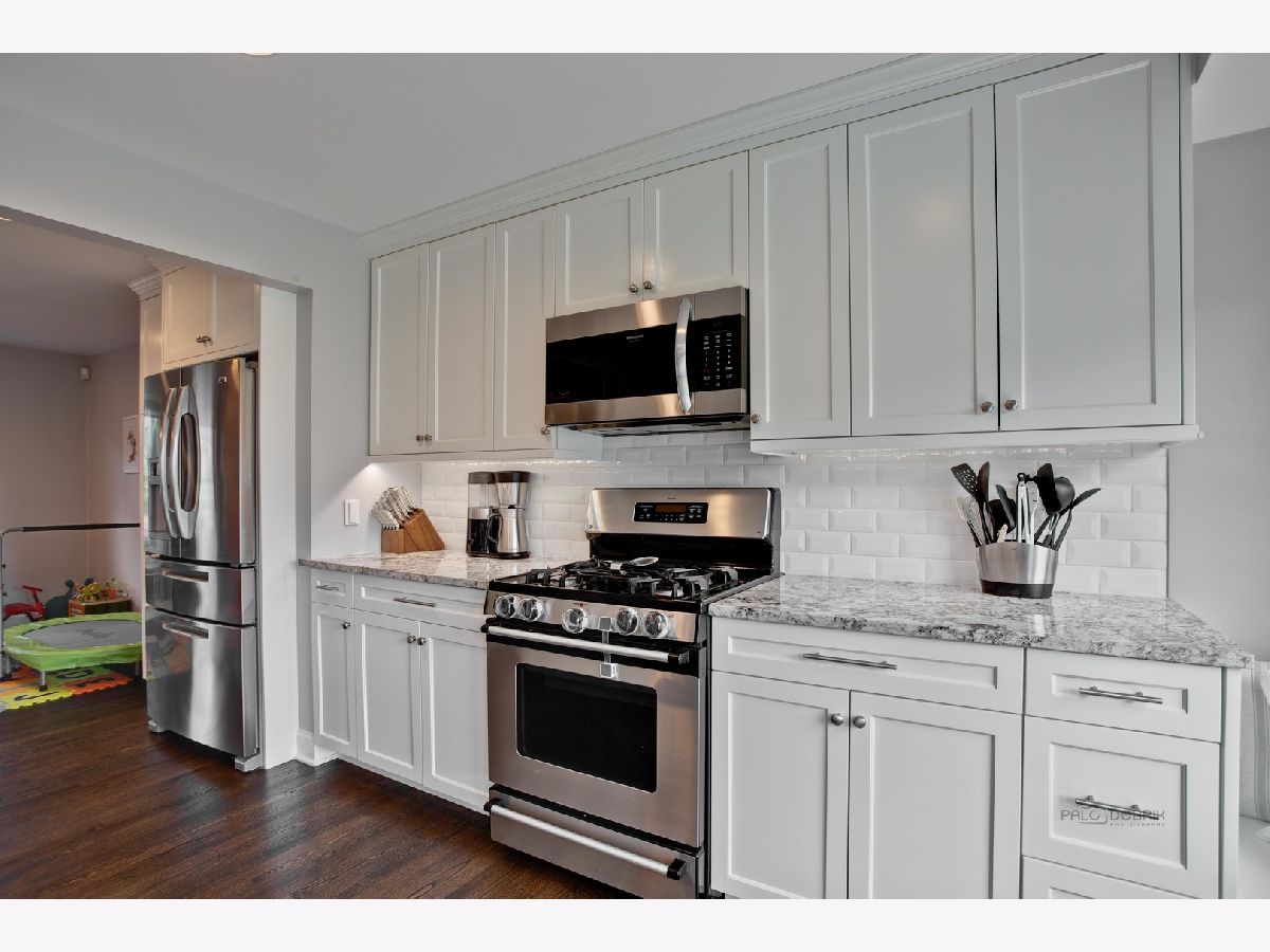 Fresh design meets modern family living in this gorgeous Green Knolls home featuring a flowing circular floor plan, tons of living space, and truly enviable updates! The foyer welcomes you into the bright living room which opens to the renovated kitchen. You will LOVE this stunning well-appointed kitchen with all stainless steel appliances, ample white cabinetry, granite counters, a walk-in pantry, a cozy window seat with bright bay picture window, a breakfast bar with modern pendant lighting, and an eating area! Gather in the family room by the fireplace with brick surround and raised hearth, flanked by elegant built-ins. Step out through sliders to the enclosed porch where you can dine al fresco. Upstairs, a luxe master suite awaits featuring a deep walk-in closet and an ensuite bath, boasting a Corian separate shower with rain shower head, a dual granite vanity, and a luxurious jacuzzi tub with granite surround. A second suite offers dual bifold closets and a shared ensuite bath with a tile shower/tub and a granite vanity. Two additional bedrooms are each spacious and bright with rich dark hardwood floors. Finished basement recreation room and combined laundry/utility. Attached 2-car garage. Fully fenced backyard with a concrete patio, lush lawn and professional landscaping, and play set. Incredible location nestled in one of Buffalo Grove's most popular neighborhoods. Excellent award-winning schools, shopping, dining, parks, the BG Park District, and so much more close by!