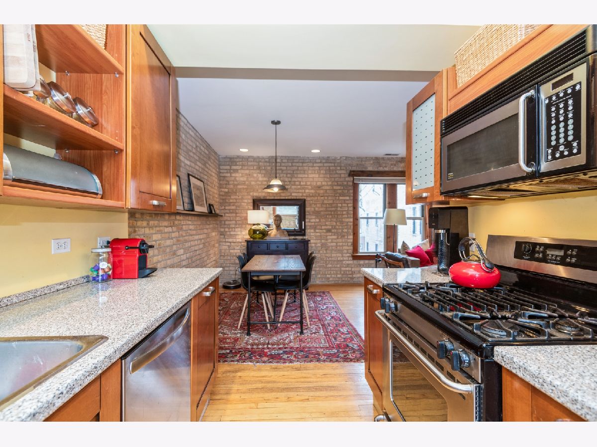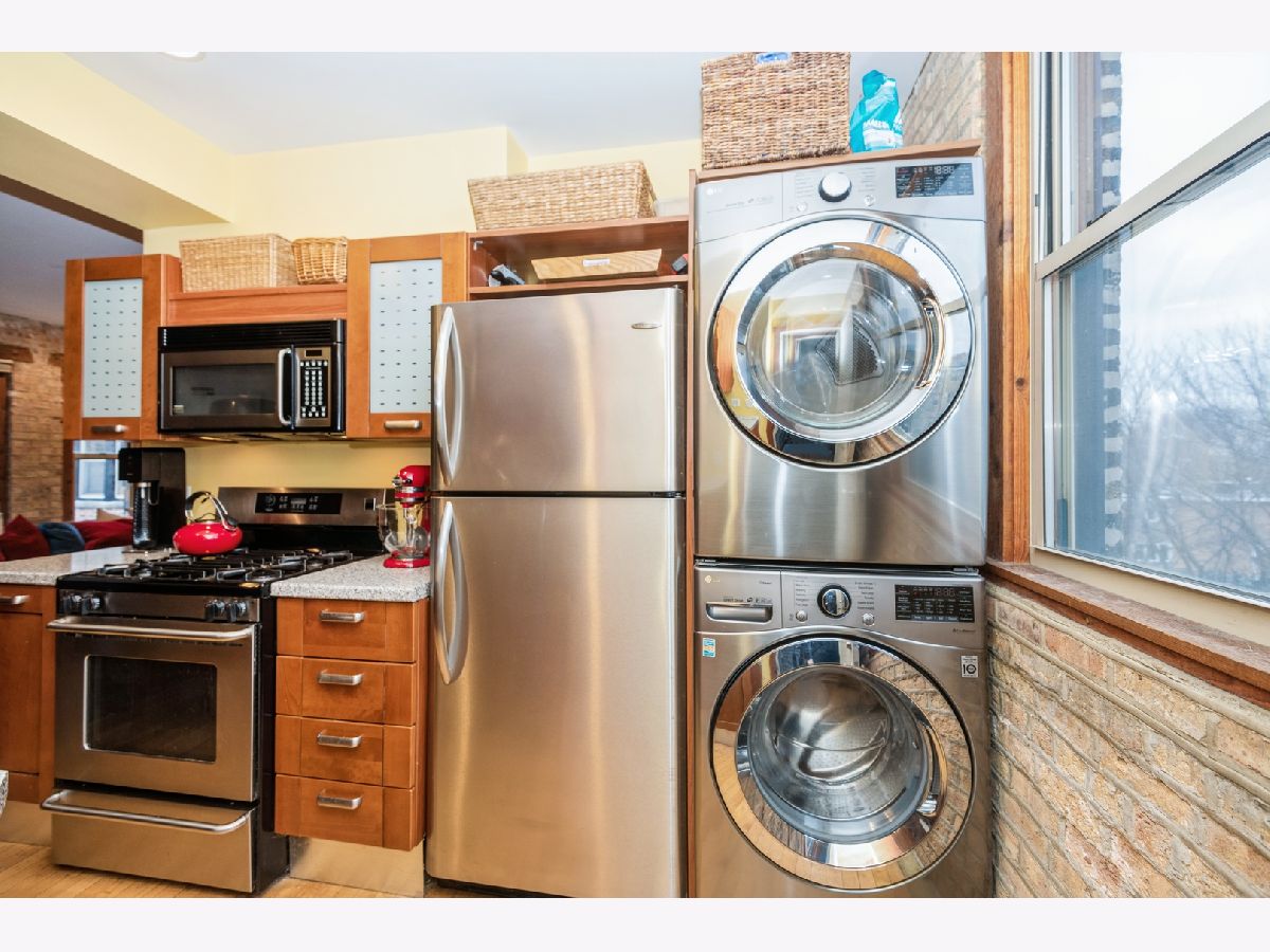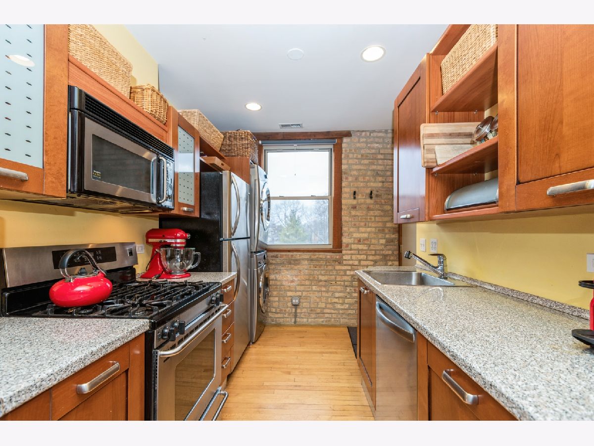 Welcome to this rare, sun-drenched, top-floor, two bedroom condo with private garage. Located in a classic courtyard building - gut-rehabbed in 2002 and well-managed building. This unit has hardwood floors, gorgeous exposed brick, tons of natural light and closet space, stainless steel appliances, individually controlled furnace and a/c and in-unit washer and dryer. Large private garage (with plenty of storage space), easy street parking, pet friendly building and additional secured storage in basement. Easy access to downtown Evanston as well as Chicago. Two blocks away from CTA and grocery store, Peckish Pig and other restaurants. Move-in ready.