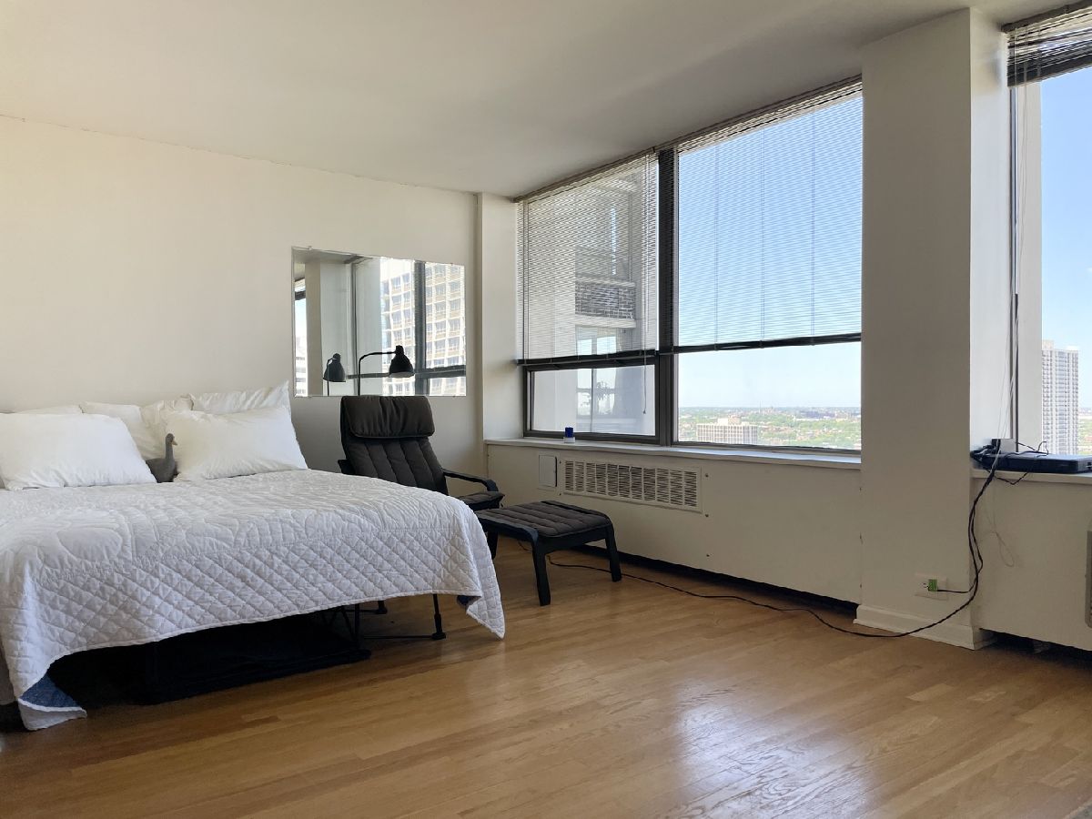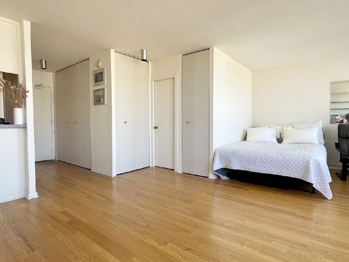 Great convertible studio facing east, move-in ready or take time to upgrade as you desire. The building offers a doorperson, laundry facilities, receiving room, dry cleaner, bike room, storage locker, and rooftop deck. The Carl Sandburg Village offers 2 pools, tennis courts, and beautiful courtyard. Assessments include everything except for electricity. Conveniently located near CTA, grocery stores, shopping, restaurants, lake and more! Pet friendly.