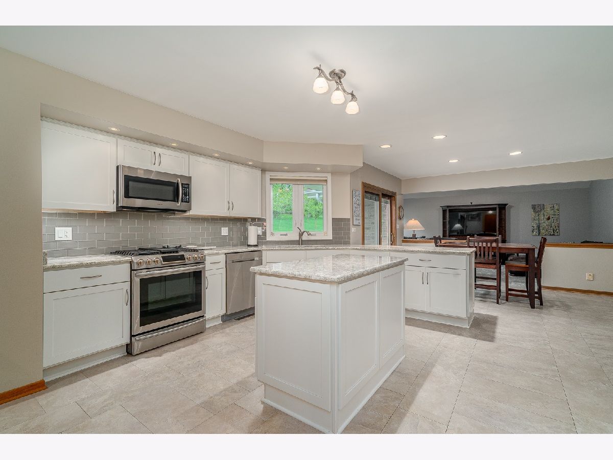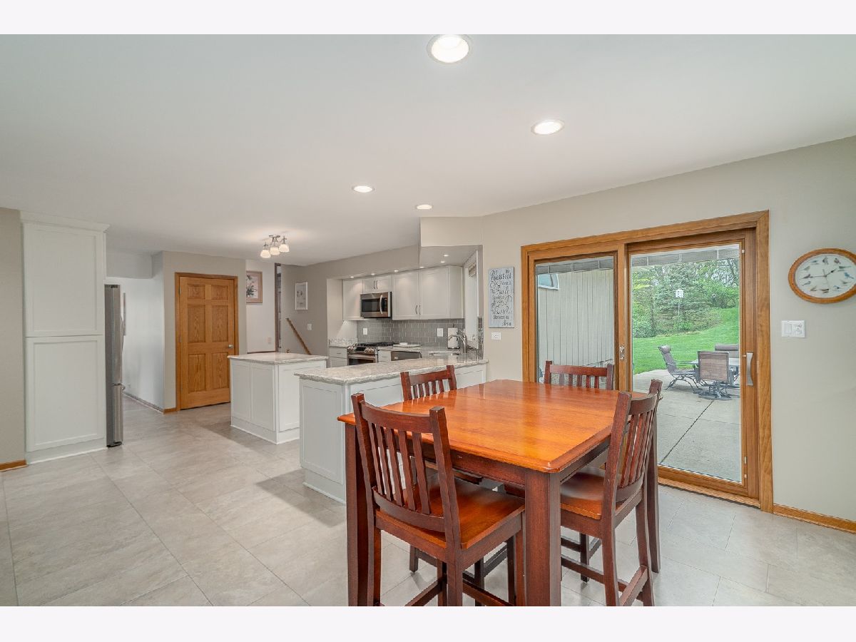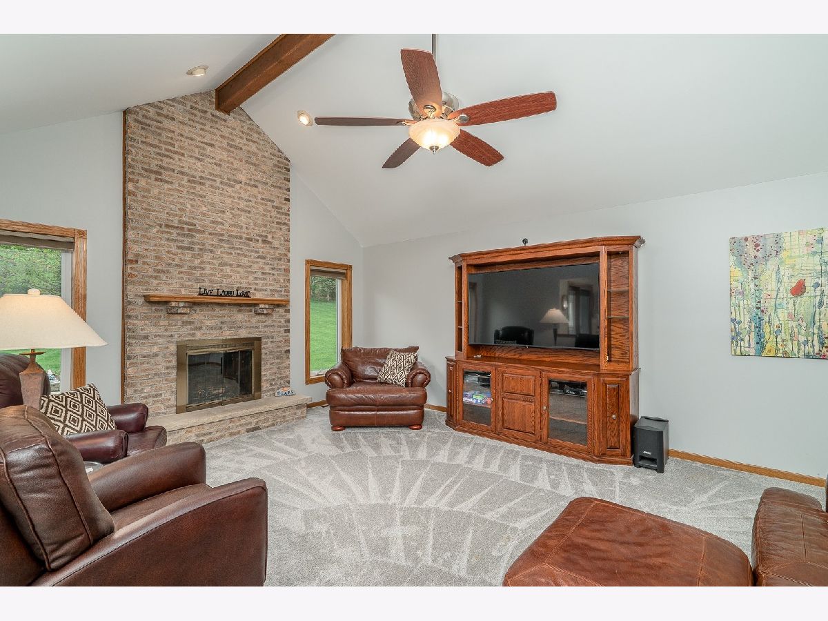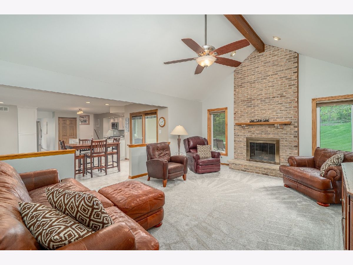 Welcome to this charming and modern brick ranch in the Erin Hills Subdivision! 4 bedrooms plus 2.1 bathrooms await you in this lovely home! Hardwood floors, neutral tones, and updates galore carry you throughout. Step into the sun-filled living room with plenty of natural light to come through and hardwood floors that carry to the inviting dining room. The dining room is situated right next to your kitchen for easy entertaining access! Enjoy prepping and cooking in the eat-in kitchen that features plenty of white shaker style cabinets with soft close drawers, stunning quartz countertops with accenting grey subway tile backsplash, pantry closet and stainless steel appliances. The cozy family room with a beamed vaulted ceiling has a beautiful brick wood burning fireplace that makes for a perfect spot to relax in. Step up and find the master bedroom suite complete with a luxurious bathroom that has a beautiful walk-in shower and double sink quartz vanity, plus a heated floor! 2 additional generously sized bedrooms with plenty of natural light and remodeled bathroom complete this level. All bedrooms have gorgeous hardwood floors. There is a full unfinished basement that is a blank canvas for endless possibilities. 2 car attached garage allows for additional storage. The space continues outside in the expansive professionally landscaped backyard that backs up to woods. Large patio area has plenty of room to entertain and enjoy the upcoming summer months! Many updates include New sump pump and backup system in 2020, updated bathrooms, porcelain tile in 2017, kitchen remodeled in 2017, Roof, gutters, downspouts and sky light in 2012. Great location down the street from the park and pond, walking trails, and in award winning school districts! Truly move-in ready!
