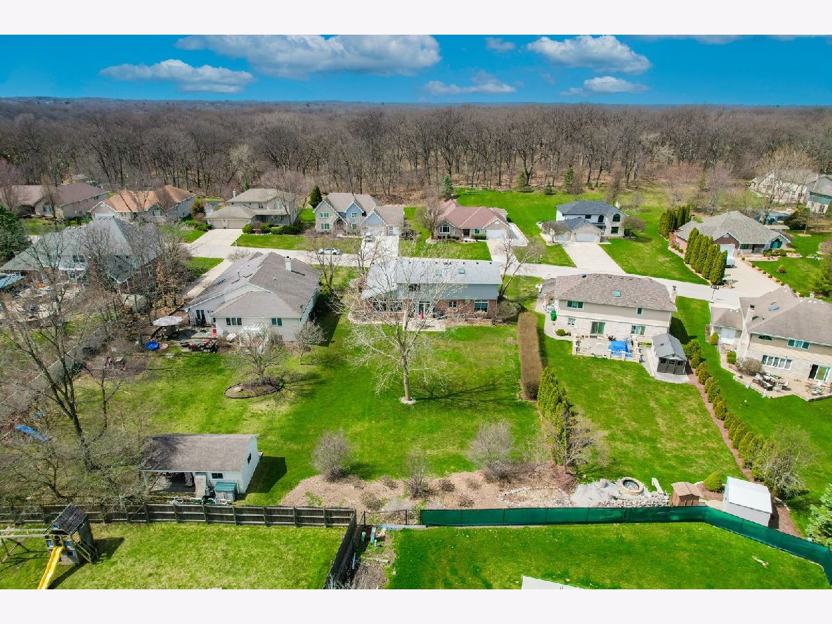 ABSOLUTELY GORGEOUS HOME located in the PEACEFUL, QUIET and PRIVATE Erin Hills subdivision in Homer Glen. This home is located at the very back end of the subdivision where there is very little (if any) outside traffic. This home has fabulous curb appeal with a lovely, west-facing front porch which is the perfect spot for a relaxing morning coffee or taking in a spectacular evening sunset over the woods right across the street. The current owners absolutely love this home and, from the moment you enter, it becomes evidently clear that they have taken extremely good care of it. On the main floor you will find gorgeous hardwood floors, beautiful oak trim and 9 foot ceilings in every room. There is a spacious front living room with enormous windows overlooking the front porch which bring in tons of afternoon sunlight. There is also a formal dining room which leads into the VERY SPACIOUS and OPEN kitchen. This kitchen is a chef's dream with the perfect layout for cooking and entertaining. This wonderful kitchen features high end stainless steel appliances including a Viking range with built in grill and range hood with external venting, granite counter tops, custom cabinets, center island, butler pantry and a lovely stone backsplash. The kitchen opens to a nice and very convenient dining area with direct access to the back concrete patio and ENORMOUS back yard. There are so many things you can do with this much yard space! The kitchen dining area opens into a lovely family room with a brick, wood burning fireplace (with gas line) and it is directly adjacent to a first floor bedroom/office space. There is also a FULL BATHROOM on the main floor perfect for related living or visiting house guests. There is also a large laundry/mud room which leads directly into the huge three car garage with very tall ceilings and extra storage space. Upstairs you will find four spacious bedrooms including a large primary bedroom suite with a beautifully updated primary bath. Both of the upstairs bathrooms have dual sinks, gorgeous granite counter tops, modern paint colors and large skylights bringing in tons of light. There is also a wonderful full basement. Half of the basement is finished with a lovely kitchenette area, modern paint colors, recessed lighting and waterproof laminate flooring. The other half of the basement is wide open and unfinished providing tons of extra space for a workshop, storage and additional recreation space. There is also a bathroom conveniently located in this area as well. All of this on a nice, quiet, tree lined street in the LOVELY Erin Hills subdivision. This WONDERFUL NEIGHBORHOOD gets very little outside traffic because there are no through streets and this house is just down the street from one of the nicest neighborhood parks in Homer Glen complete with walking trails, open space prairie, playground equipment and a covered picnic pavilion. An AMAZING OPPORTUNITY to own a GREAT HOME in a FANTASTIC NEIGHBORHOOD! What more could you possibly want? Make your offer today because this one will not last long!