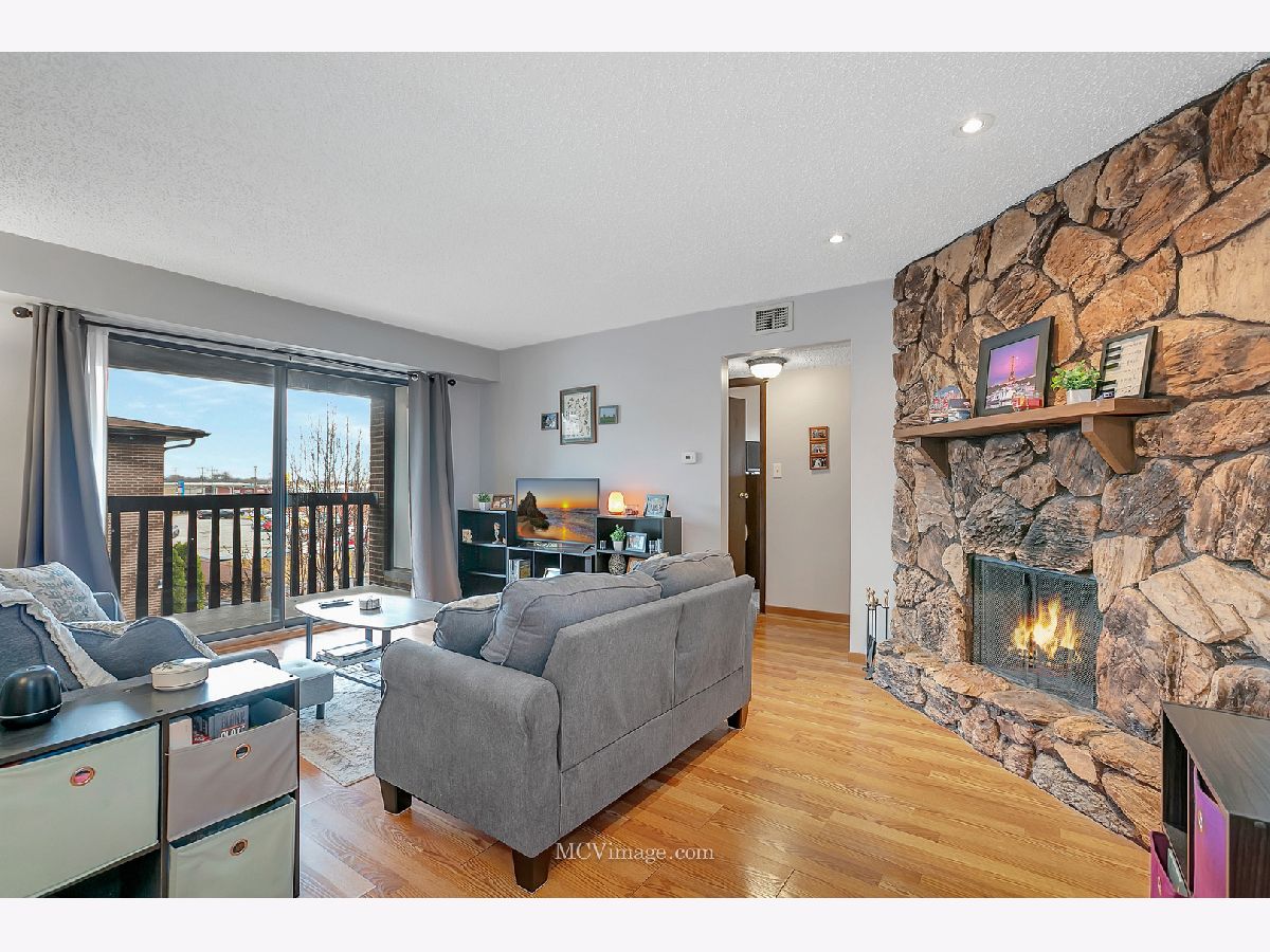 An absolute "GEM" located in Regal Chateaux of Crestwood. Beautiful wood laminate flooring flows thru-out the dining area and spacious sun drenched living room featuring a corner fireplace and sliding doors leading to the outdoor balcony. Newer carpeting in both bedrooms including the large master suite with its own bathroom and a large walk-in closet. Both bathrooms have been nicely updated. The spacious kitchen offers lots of solid oak cabinetry, plenty of countertop space and a cozy eating area plus access to the balcony. You'll love the full size laundry room with a full size washer and dryer. Freshly painted thru-out along with modern lighting and plumbing fixtures. Furnace and A/C only 2 years old. Newer windows as well. Access to pool and club house. Units are rentable with no rental cap, perfect for investors! Pet friendly association! This home is immaculate and has been maintained perfectly...Come take a look today!