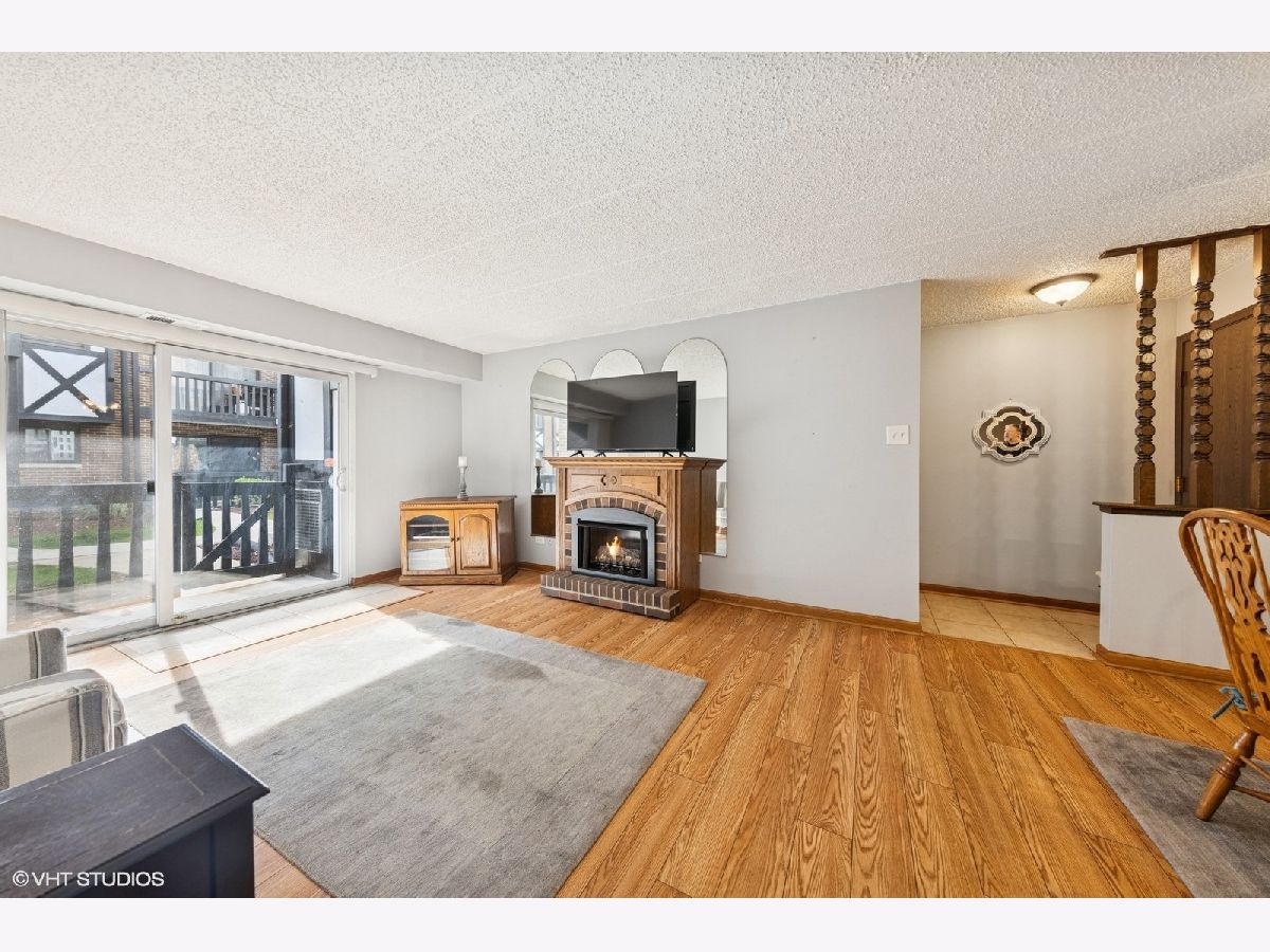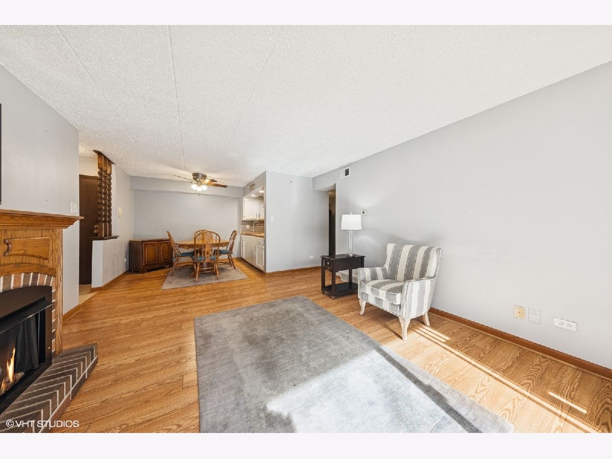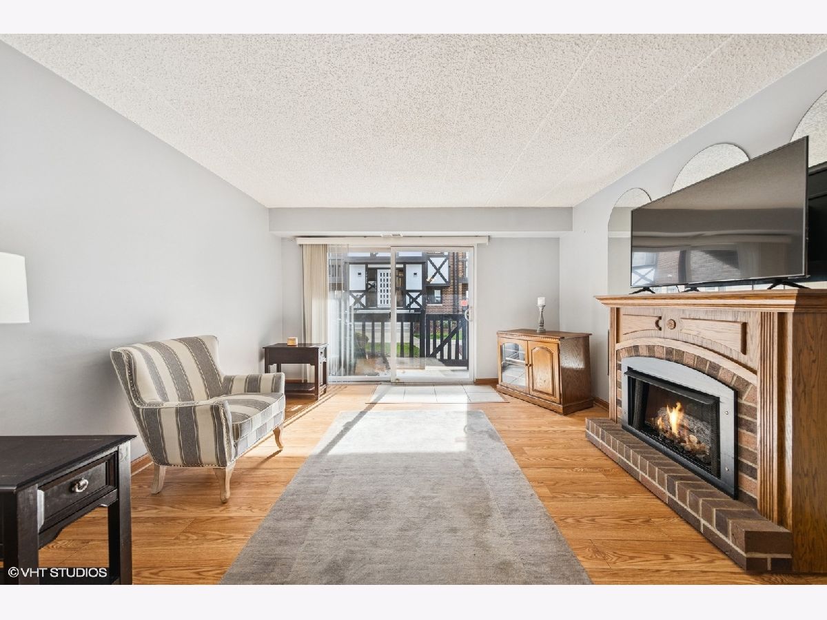 Welcome to Regal Chateau! This beautifully updated first-floor condo with 1 car detached garage offers the perfect blend of comfort, style, and convenience. Featuring a traditional floor plan offering two generously sized bedrooms with ample closet space The spacious primary suite is the owners dream o with a walk-in closet and private bath. Enjoy hardwood vinyl flooring throughout and an updated kitchen with white cabinetry, stainless steel appliances (oven, microwave, and dishwasher), stylish butcher block counters and on trend modern grey ceramic tile. The separate dining room is perfect for entertaining. The inviting living room boasts a cozy fireplace (included with the unit) and opens to a private balcony through beautiful sliding glass doors, offering tranquil views and additional storage. The laundry and utility area adds everyday convenience. This flexicore-constructed unit includes a separately deeded 1-car garage #51, and is ideally located as the closest unit to the in-ground pool-perfect for summer enjoyment! Don't miss your opportunity to own this well-appointed and thoughtfully updated home in a desirable community. Schedule your showing today!