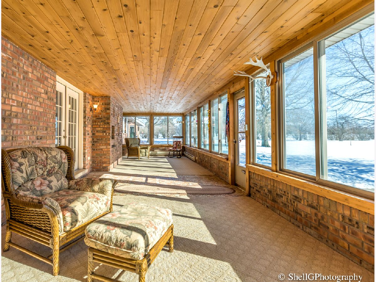 HUGE price drop! Peaceful, country living done right! Five-plus acres lined with beautiful mature trees nestle a sprawling 5000 sq ft. + brick ranch home with many custom features! This home showcases 3 bedrooms on the main floor including the master suite wing - offers two full baths, hers for soaking in an antique claw foot tub, marble flooring, granite vanity, sky lite, his with bench seat, two shower heads, granite vanity with stone flooring, private closets for each, hers enjoys floor to ceiling mirrors in the 13 x 14 dressing area. Each over sized room is spacious yet feels cozy and inviting, from the formal living from that flows into the study/library onto the centrally located family room w wb/gas fireplace, take the French doors to the sun room or enjoy the stunning chef's kitchen with a center island, cherry cabinets, granite counters, glass back splash, separate pantry closet, SS appliances, a Jenn Air grill and decorative brick work that was featured in Architectural Digest. The first floor secondary bedrooms offer an over sized 2nd bed and 3rd bedroom that could be related living. This bedroom offers 2 rooms in one along with small kitchenette area, walk in closet and full bath w stand up shower, granite counter, cherry vanity, 2nd deep 4x8 closet. This home has an attached 2 car garage with full walk up 2nd floor loft for storage, convert to a man cave or bonus room. The partial basement has a possible 4th bdrm and a playroom, 2 work areas and a cedar closet, with loads of room for storage and the mechanical's. The attached heated sun room with tongue and groove ceiling, an indoor grill, windows replaced 8 yrs ago, is exactly where you want to be to see the wild life come through the yard or to oversee your 32 x 42 wood barn with stairs to the 2nd floor loft, concrete flooring, separate 100 amp electric panel, gas run to barn (water currently capped). This home has geothermal heat and air, propane for the 2-H2O tanks and top of range cooking, electric for sun room and oven. If you add a few solar panels you won't even need the 8kw automatic generator and transfer switch, you could be almost off grid and still so close to town. You won't want to miss all this home has to offer. Please Do Not Drive onto this Property without a confirmed appointment. The owner will be present at showings to answer any questions but will not be bothersome. Thank you