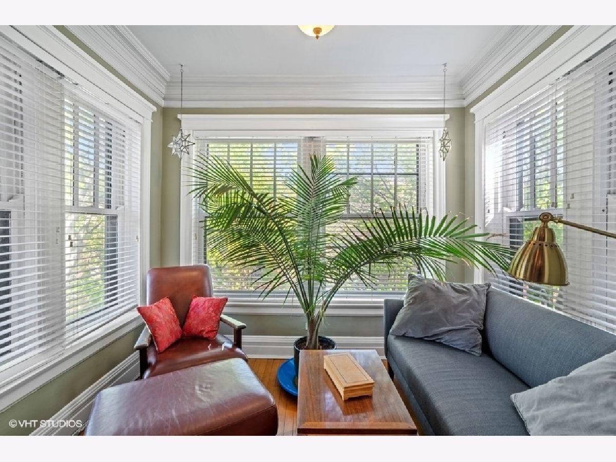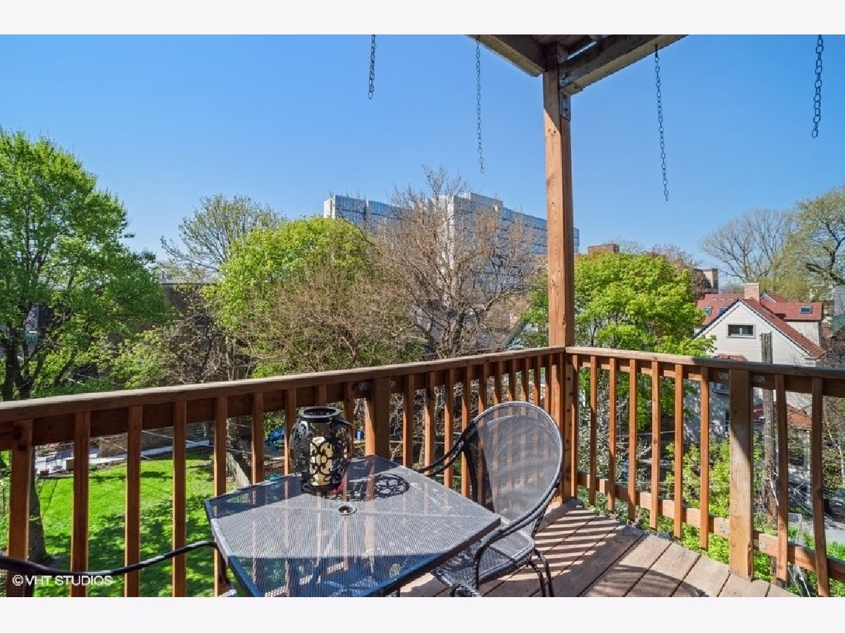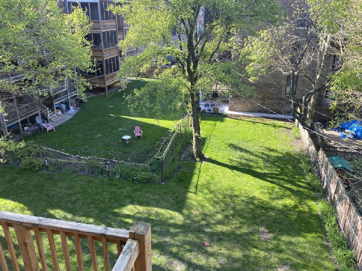 Welcome to this gorgeous, sundrenched top floor condo in the heart of Hyde Park. Unobstructed views of gardens and back yards in north, west and south exposures. Spacious living room with custom 57th street book case, lovely sunporch perfect for reading and hardwood floors. Three bedrooms with great organized closet space, two updated baths. The kitchen has been completely redone recently with white cabinets, stainless appliances, butcher block counters and deep farmers sink, and opens to back porch seating area. Entire unit has been electrically rewired. Washer/dryer in the condo. Well managed building that shares fabulous greenspace back yard. Storage, bike room - and deeded parking space in parking coop on Dorchester included in price. Don't miss this one