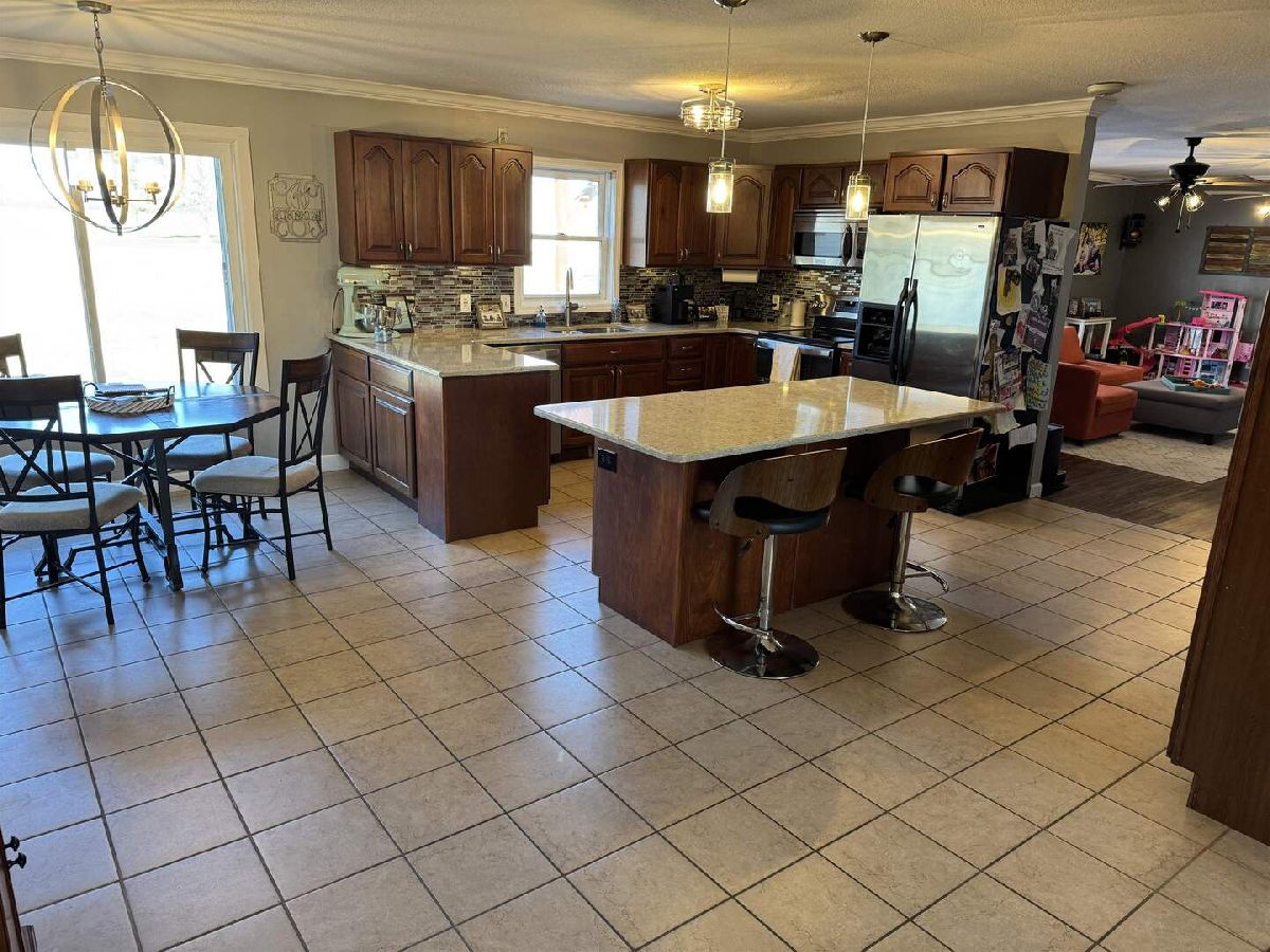 Welcome to this beautiful one-story home offering 2,904 square feet of comfortable living space with 4 spacious bedrooms, each featuring large closets, and 3 full bathrooms. The spacious eat-in kitchen is perfect for gatherings and everyday living, showcasing quartz countertops, abundant cabinetry, and generous counter space. Enjoy cozy evening with two fireplaces - an electric fireplace in the living room and a gas fireplace in the family room - along with the added efficiency of a wood burning furnace. This house ample storage both in house and attached garage including a storage room and space above the garage. If you enjoy outdoor living, you will love the gazebo with a swing, a firepit and lots of wildlife to enjoy while you relax. Did I mention the pole barn with a fabulous mancave with a bar and plenty of room for a hobbies plus additional parking. The attic room is waiting to be developed. Situated in a quiet rural suburb on a dead-end road, this home offers privacy and tranquility, with the back of the lot bordered by open agricultural land, proving peaceful views and true country feel. The following improvements have been made: roof (2025), windows throughout (2017-2026), HAVC (2020), Range (2024), dishwasher (2020), attached garage door (2019). paint throughout (2025), flooring (2019) patio and gazebo (2021).