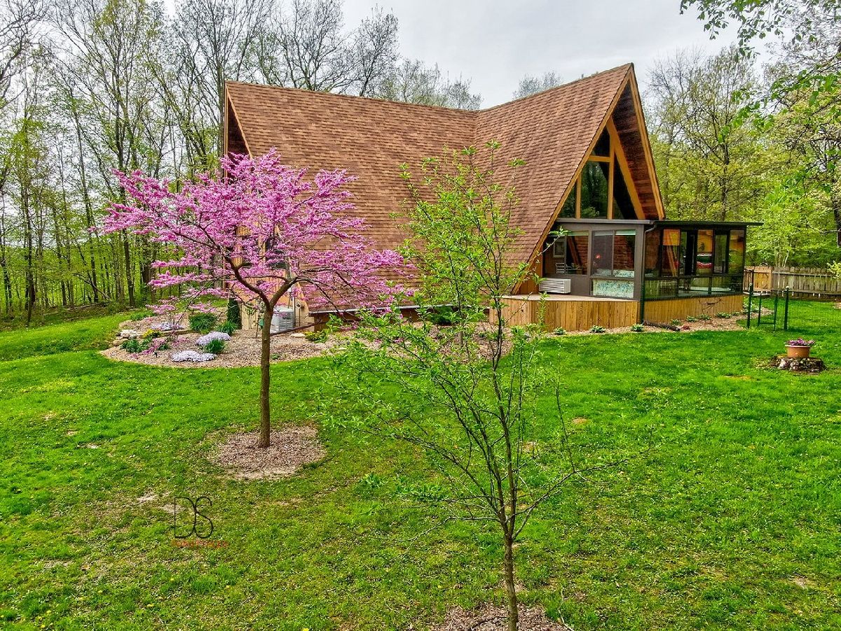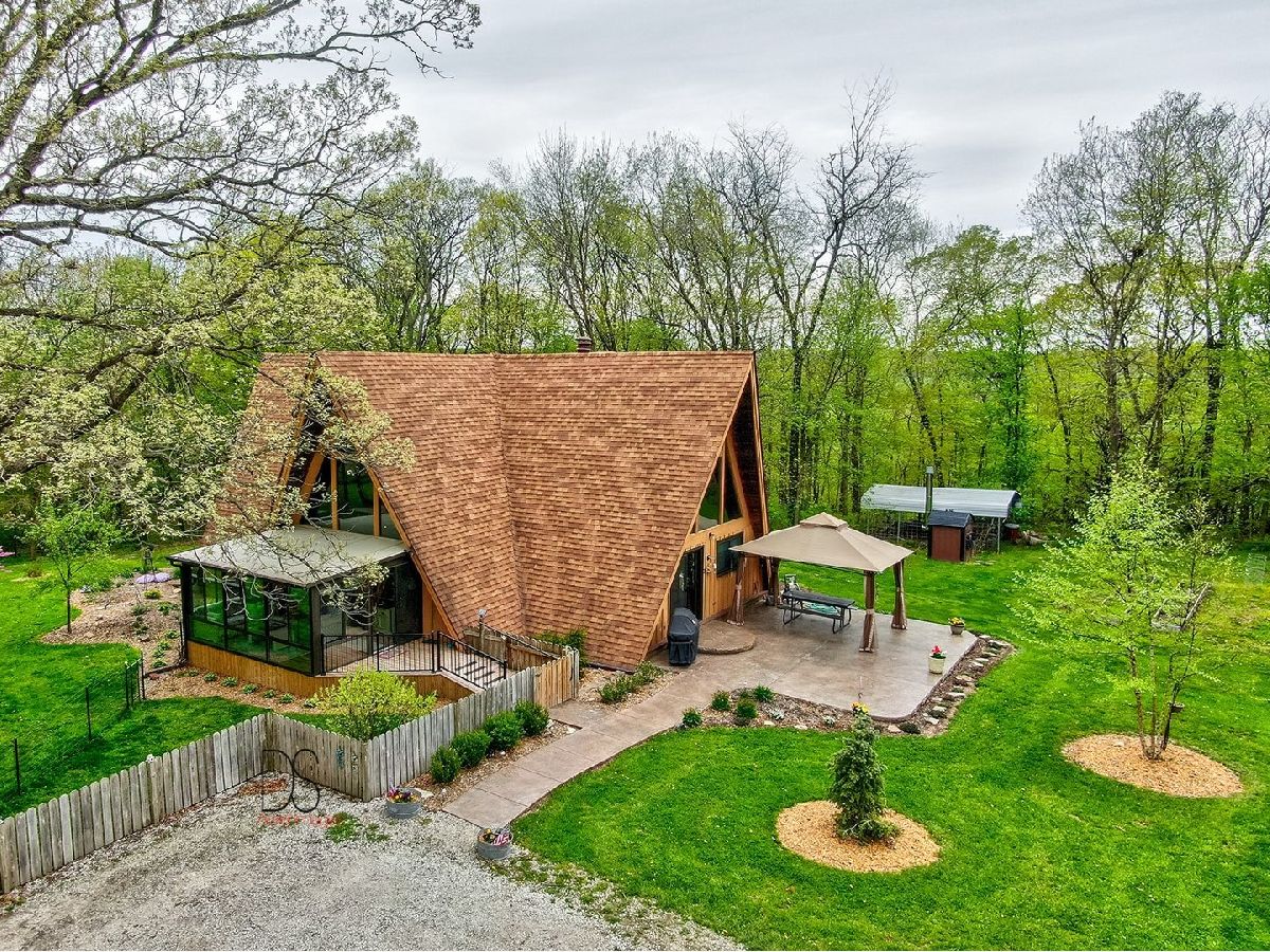 Serenity, peace, tranquility is what comes to mind when you approach this beautiful oasis. This can be your slice of paradise! Words nor pictures can truly capture what this property encompasses. You must experience it for yourself. The beauty of Starved Rock Country, the wooded preserves, wildflowers galore, beautifully landscaped and manicured land, leads you to a unique, impeccably maintained Double A Frame home; an oasis to inspire the next homeowner. The home itself offers an open floorplan with 3 bedrooms, 2full baths. Enjoy the newly finished 4 season room, windows with 180 degree views, allowing you to enjoy the beauty of your surroundings. The home includes two fireplaces, one in the living room and one in the finished basement, where you will find an additional bedroom and bathroom with whirlpool tub. The basement offers loads of storage and living space, as well as double doors to the outdoors for convenience. Bright, natural light shines through the large kitchen windows. The unique loft space overlooks the wide-open living and dining area. All new triple pane windows and sliding glass door. Additional amenities on this property include: Outbuildings consisting of a detached 2 1/2 car garage, a one car detached garage, 30x30 pole building with attached 20x30 heated workshop for the do-it-yourselfer, includes a concrete floor, another 40x36 pole building with concrete floor, and central air conditioning. All buildings have power. The home, 2.5 car garage and 20x30 building and 30x30 building are serviced by a Generac Generator as well. The charming 10x16 "She Shed", contains heat and a/c and could make any gal happy to explore her hobbies or interests. It also has a darling covered porch to accommodate table and chairs. This cozy cottage style shed could make a great playhouse for young ones as well. You are only limited by your imagination on this lovely property. If gardening or hunting is your passion, you can hunt for Morel mushrooms and plant sunflower fields, for example. If farming, raising animals is your thing, the possibilities are endless with the fenced pastures and open land. The privacy offered by the natural wooded grounds, where this 10.43-acre property sits on a gorgeous bluff, is worth the look!