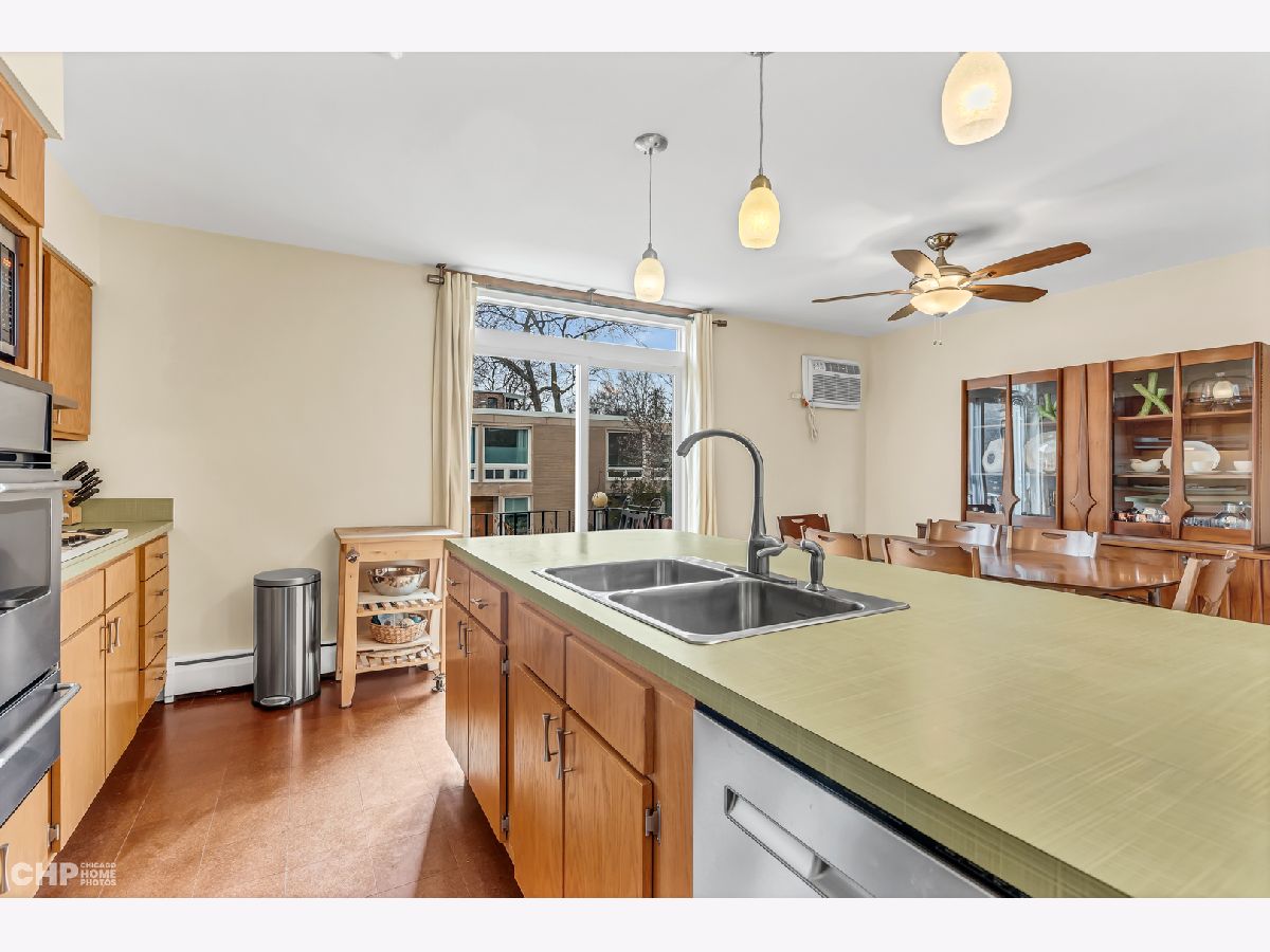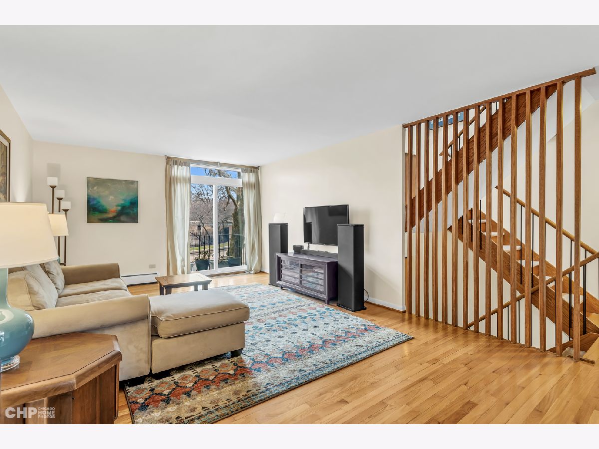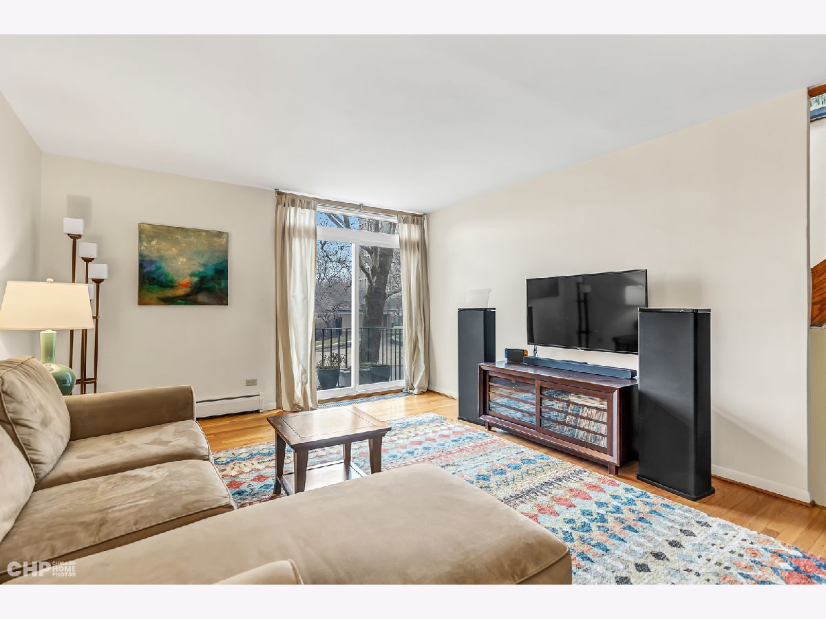 Desirable mid-century "E" townhouse designed in the 1960's by the renowned architect I.M. Pei, within easy walking distance to the Lake, shopping, transportation downtown and the University of Chicago. This lovely family home on 3 levels offers 4 bedrooms, 1.5 bath, an open kitchen, wood floors on the upper two floors, sunny back yard, parking, and the trademark efficiency and comfort of the I.M. Pei design. Current owners have thoughtfully restored the mid-century character while offering modern amenities such as Advanced Window Corp replacement windows (2020), new tear off roof (2020), new skylight that opens, and improvements to plumbing. The kitchen has newer stainless appliances, updated doors on the solid wood cabinetry and a delightfully bright countertop. No central air but modular units make the house cool in the hot months. Efficient hot water radiator heat plus solar gain from south facing windows mean the heat costs are low. Samsung washer (2015) and LG dryer (2022) are included. The back yard is planted with no-mow grass, and includes a Monarch butterfly waystation garden.