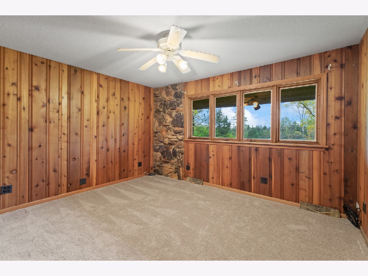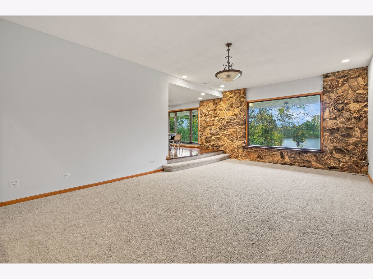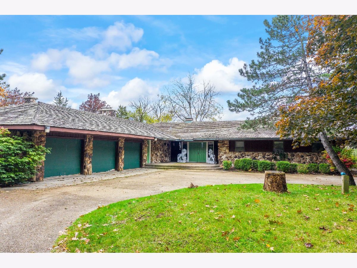 Check out our interactive 3D and Aerial Tour! Be prepared to fall in love with this secluded, peaceful and private Lucky Lake Community! Drive through the front gate and you will see nothing but beauty surrounding you. Spacious ranch sitting on a 1.59 acre lot with your own private lake frontage! Such a unique home with great bones and potential to make it a showpiece! Very spacious home 4 bedroom, 3.5 bath, 3 car garage and a full walkout basement. Hardwood entry opens to the living and dining room with a huge picture window giving you a perfect view of the lake. Eat-in Kitchen has an abundance of white cabinetry and Corian countertop space, double ovens and tile floors. Big family room with gorgeous hardwood flooring, magnificent stone work and heavy woodwork/beams that give you the feel of being in a lodge. All four bedrooms are on the main level including the master bedroom with a slider door leading to your own private patio and a private bathroom with shower. Secondary bedrooms are all nice sized with a full hall bath with dual sink vanity, tile floors and a tub/shower. Convenient powder and laundry room on the main level as well. Head down to the full, finished, walkout basement and find a 2nd family room or recreation room with a gorgeous stone, gas start, fireplace and wood beamed ceiling. Full bathroom in the basement as well with tile floors and a shower. Enjoy the covered patio with beautiful views of the lake. Huge 3 car garage with auto openers. Enjoy the peacefulness this home and location provide - yet still have the convenience of being located in the heart of the Northshore of Chicago. Easy access to I-94, shopping, dining, parks, public transportation and award winning Libertyville High School!! Schedule your showing today!!
