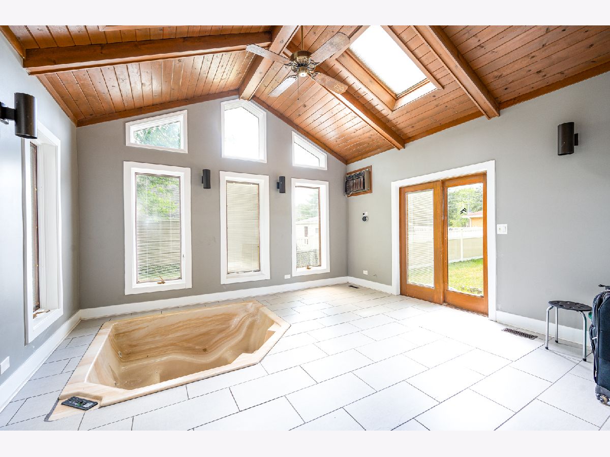 New and improved price. The home is VA and FHA-ready. Visit this grand 7 bedroom, 3 bathroom vintage home that has been beautifully renovated while retaining its character and charm. The open-concept main floor features a dramatic foyer with a new tile floor, a turned staircase, large living and dining areas with gleaming bamboo flooring, and abundant natural light. The kitchen is stunning, with quartz countertops, glass subway tiled backsplash, stainless steel appliances, a breakfast bar with pendant lights, and a walk-in pantry. The fantastic sun/spa room is a highlight, with a vaulted ceiling, windows all around, skylight, hot tub, sliding doors to the patio, and an adjacent full bath and 4th bedroom. Upstairs, you will find a huge master suite with space for a sitting area, 2 reach-in closets, a private bath with granite vanity and double sinks, plus 2 additional spacious bedrooms and a full hall bath. Other home highlights include a brick exterior, dual staircases, curved walls, beveled glass front door, oversized windows, recessed lighting, and French doors. The full basement with exterior access is finished with a rec room, 6th bedroom, an office, and a laundry room. A recently finished extra-large bedroom is also located in the walk-up attic. The home has newer windows, plumbing, 200 amp electrical, furnace and A/C, drywall, Nest thermostat, internet extenders on every level with no dead zones, and lighting. The oversized 2.5-car garage has alley access. The property also features an expansive covered front porch and a fenced yard. This charming home is located in the quaint town of Crete, close to shopping, dining, and the Metra train.