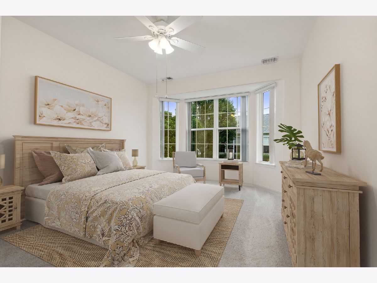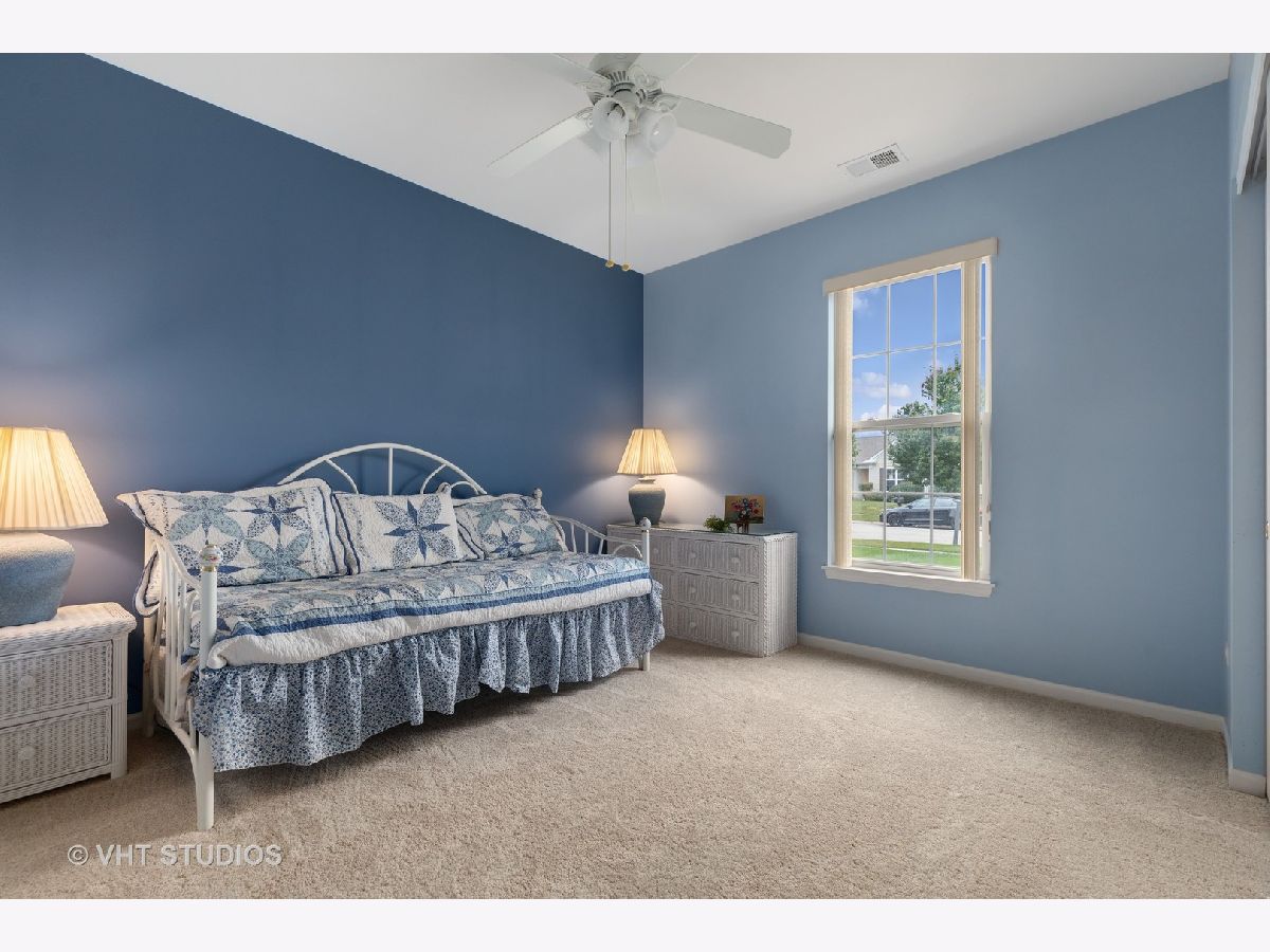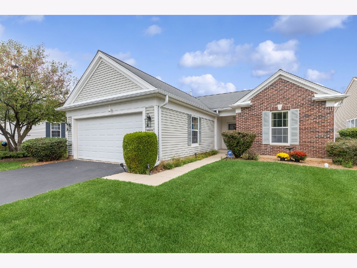 Beautiful Fox model with a sunroom! 2 Bedrooms, 2 Baths, Plus Den. New carpet, new stainless steel appliances, granite counter tops, extended cabinets, recessed lighting. Primary bedroom with bay window, large walk-in closet, ceiling fan and raised double bowl vanity. Lawn irrigation system, security system, and rear patio. Come join the fun in Huntley's active adult 55+ community. 2 outdoor pools, 1 indoor pool, walking paths, bike trails, golf, tennis, pickleball and SO MUCH MORE.