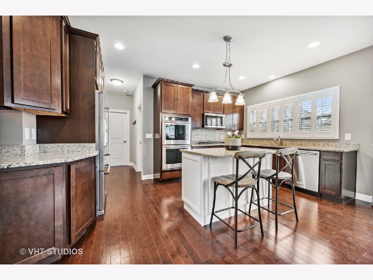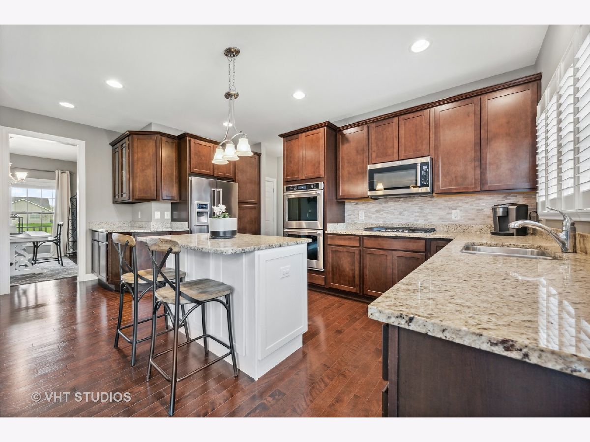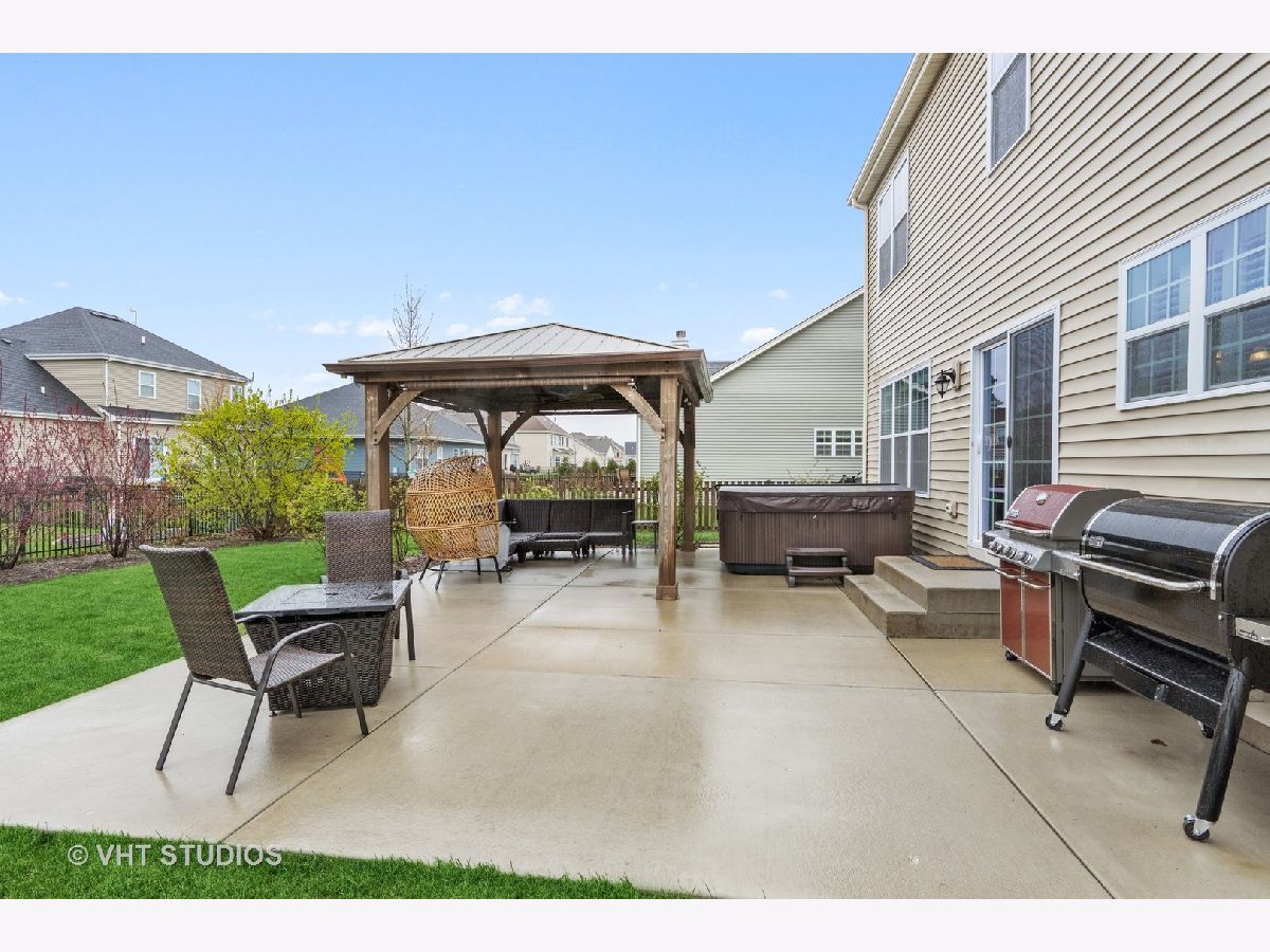 Check out this AWESOME 4 bedroom, 3 bath family home in sought-after Blackberry Creek. Need a home office or in-law arrangement? This home features a first floor den (or 5th bedroom) with adjoining full bath! FABULOUS Chef's kitchen includes KitchenAide stainless appliances, double oven, granite counters, stacked stone back-splash, an island with breakfast bar seating, and a pantry closet, as well as table space with views of the back yard. The COZY family room features gas log fireplace, sight-lines to the kitchen, and French doors to the bonus (play) room located off the foyer. Upstairs you'll find a SPACIOUS master suite featuring a tray ceiling, dressing area, and his/hers walk-in closets. The master bath is hidden behind a sliding barn door and features a raised dual vanity, separate shower, soaker tub, and tile flooring. All bedrooms on the second floor are spacious and offer walk-in closets. The laundry with Kenmore washer and gas dryer, along with a rough plumb for a sink, is conveniently located on the second floor. Check out the unfinished 1329 sf basement -- rough plumbed for future bath with an egress window --- just waiting for you to make it your own! Great space, on-trend palette, and a professionally landscaped fenced yard with gazebo combine to create a perfect place to live, play, and relax! This is an amazing family home in a great location minutes from restaurants, parks, METRA, and shopping. Don't wait to make it yours!
