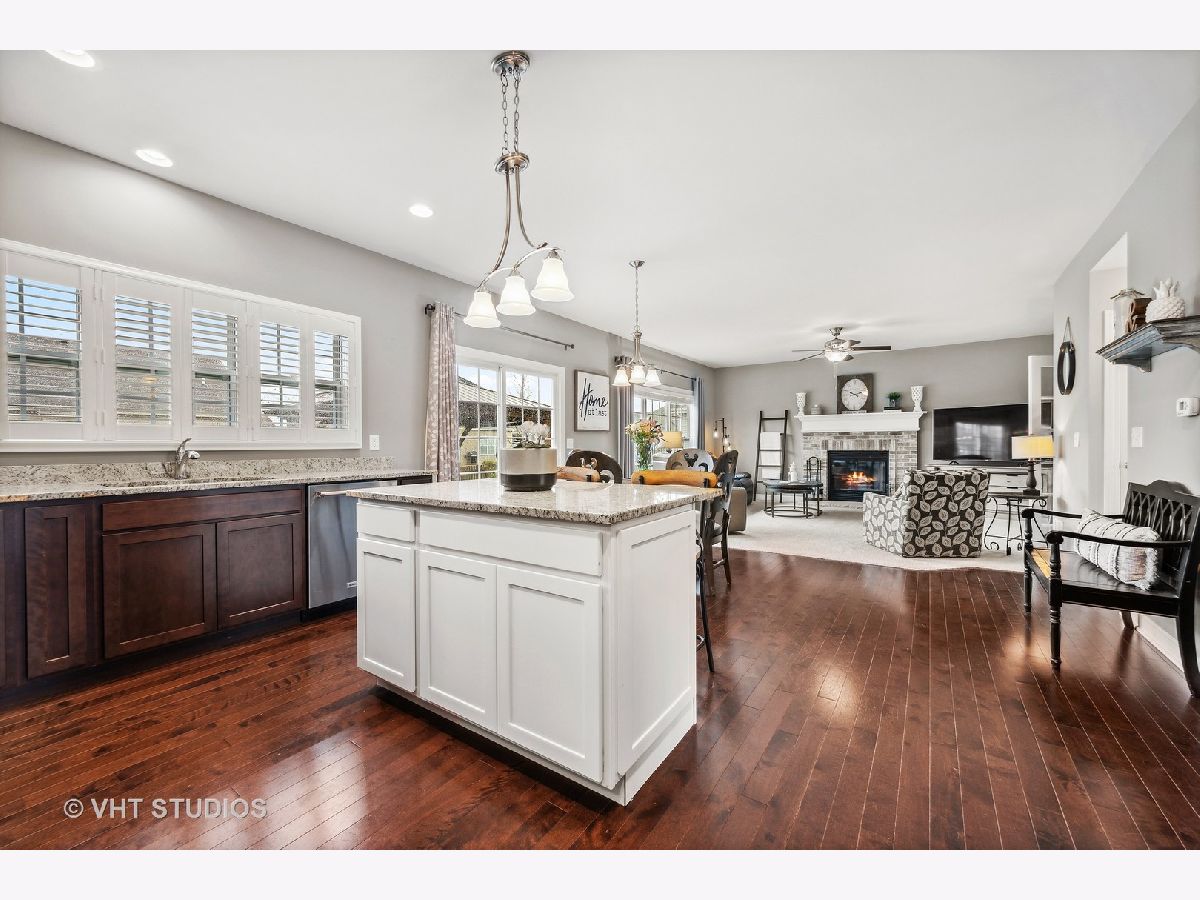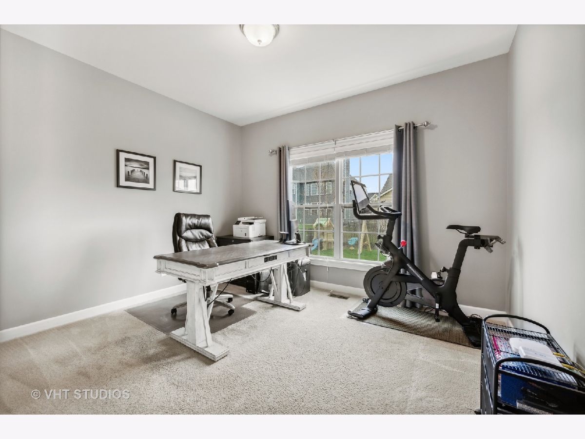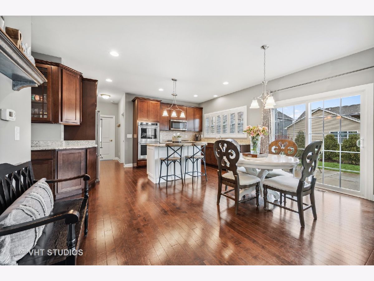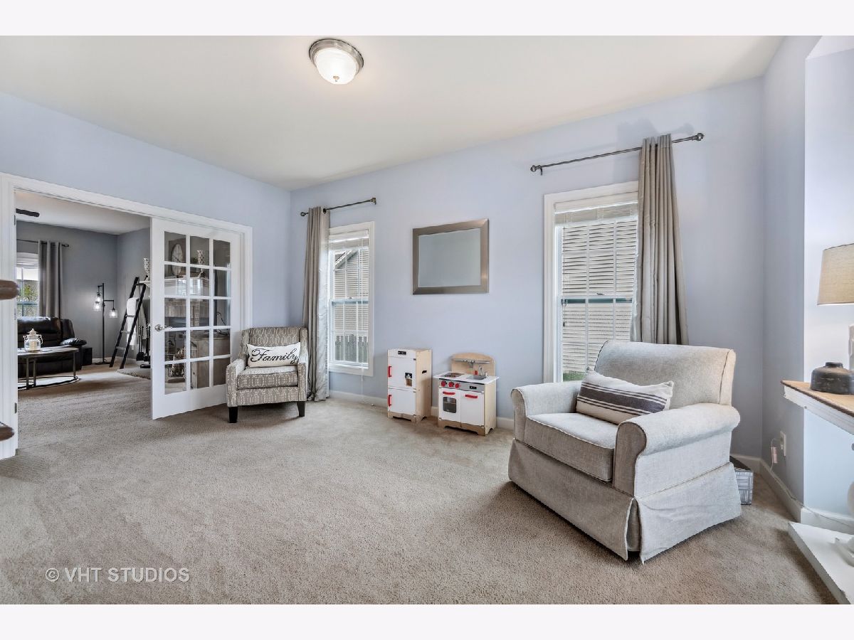 Check out this AWESOME 4 bedroom, 3 bath family home in sought-after Blackberry Creek. Need a home office or in-law arrangement? This home features a first floor den (or 5th bedroom) with adjoining full bath! FABULOUS Chef's kitchen includes KitchenAide stainless appliances, double oven, granite counters, stacked stone back-splash, an island with breakfast bar seating, and a pantry closet, as well as table space with views of the back yard. The COZY family room features gas log fireplace, sight-lines to the kitchen, and French doors to the bonus (play) room located off the foyer. Upstairs you'll find a SPACIOUS master suite featuring a tray ceiling, dressing area, and his/hers walk-in closets. The master bath is hidden behind a sliding barn door and features a raised dual vanity, separate shower, soaker tub, and tile flooring. All bedrooms on the second floor are spacious and offer walk-in closets. The laundry with Kenmore washer and gas dryer, along with a rough plumb for a sink, is conveniently located on the second floor. Check out the unfinished 1329 sf basement -- rough plumbed for future bath with an egress window --- just waiting for you to make it your own! Great space, on-trend palette, and a professionally landscaped fenced yard with gazebo combine to create a perfect place to live, play, and relax! This is an amazing family home in a great location minutes from restaurants, parks, METRA, and shopping. Don't wait to make it yours!