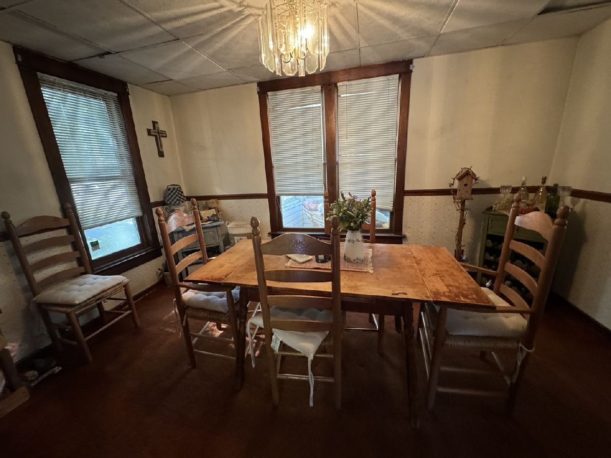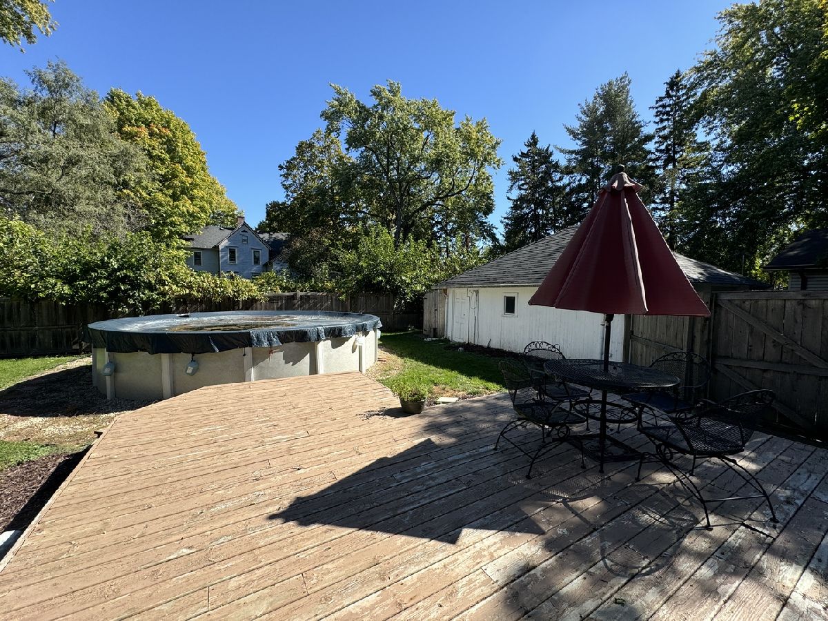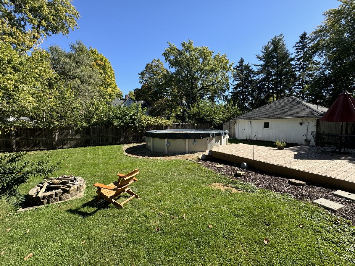 Welcome to this inviting four-bedroom, two-bathroom home! The large entrance greets you with built-in shelving and storage, adding both functionality and charm. The kitchen boasts ample cabinet and counter space. The living room flows seamlessly into the separate dining room and a convenient first-floor bedroom. Upstairs, you'll find three additional bedrooms and a full bathroom. The fully fenced yard is perfect for outdoor entertaining, featuring a deck and an above-ground pool. A detached two-car garage and shed provide plenty of extra storage. A cozy enclosed front porch and conveniently located close to downtown and schools. With a newer roof, it's move-in ready and awaiting its next owner!