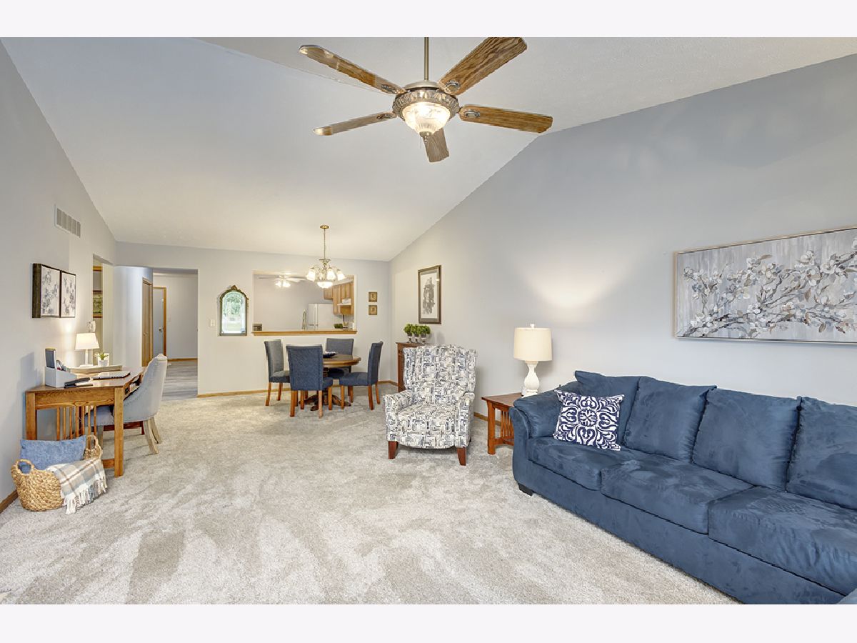 Enjoy carefree condo living in a fantastic Rockton location! A charming covered entry opens to a welcoming foyer. Spacious kitchen with an ample cabinet/counter space, new deep stainless steel sink/faucet, a Bosch dishwasher and 5 burner gas stove. The kitchen has sight lines to the great room. Main floor laundry is discretely tucked away adjacent to the kitchen. Open and airy great room with vaulted ceiling has dining/living areas combined, great for entertaining. Cozy up to the new gas fireplace. Sliders open to a large deck updated with long lasting composite decking. A private tree-lined rear yard is accented with a special garden area. The generous primary bedroom has two double closets, full bath attached with dual sink vanity, updated lighting and fixtures. There's a comfortable 2nd bedroom and hall bath with tub/shower. Full basement for storage or future living space. This delightful ranch style condo is move-in ready, well maintained and updated with newer durable vinyl plank flooring in the kitchen/foyer/baths, new carpeting, updated fixtures and paint colors, newer water heater, roof 2020 and leaf guard gutters. Sell the mower and snow shovel and take advantage of condo living!