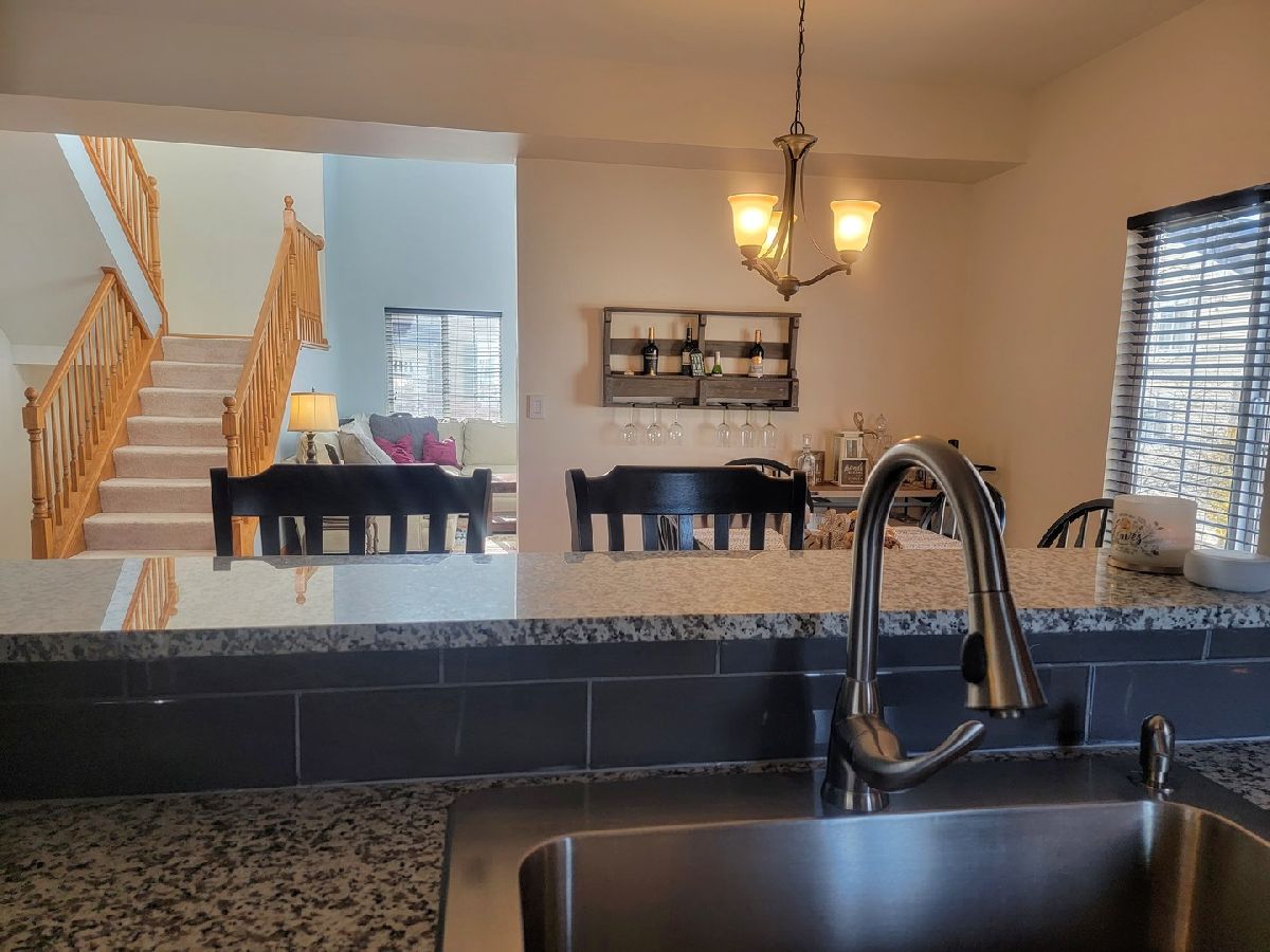 Welcome to "The Enclave", one of the most sought after subdivisions in Bolingbrook! This home features a stunning two story living room filled with natural light, new laminate flooring on the main floor, updated kitchen with granite counter tops and stainless steel appliances along with a farmhouse sink. The laundry room is on the 2nd level near the bedrooms for convenience. The hot water heater has recently been replaced. This highly desired end unit sits adjacent to a beautiful stream that runs through The Enclave. The two car attached garage leads to the finished basement. Your buyers will love this home!