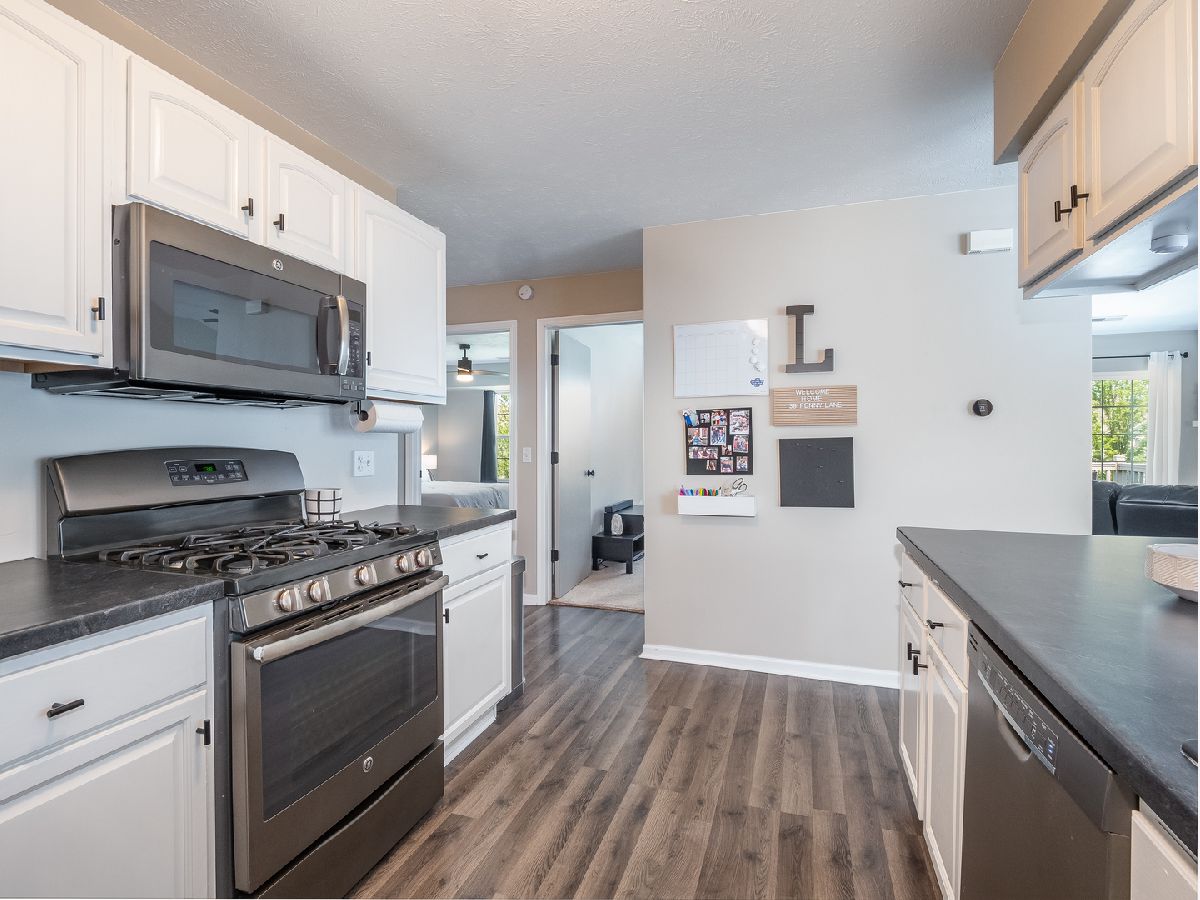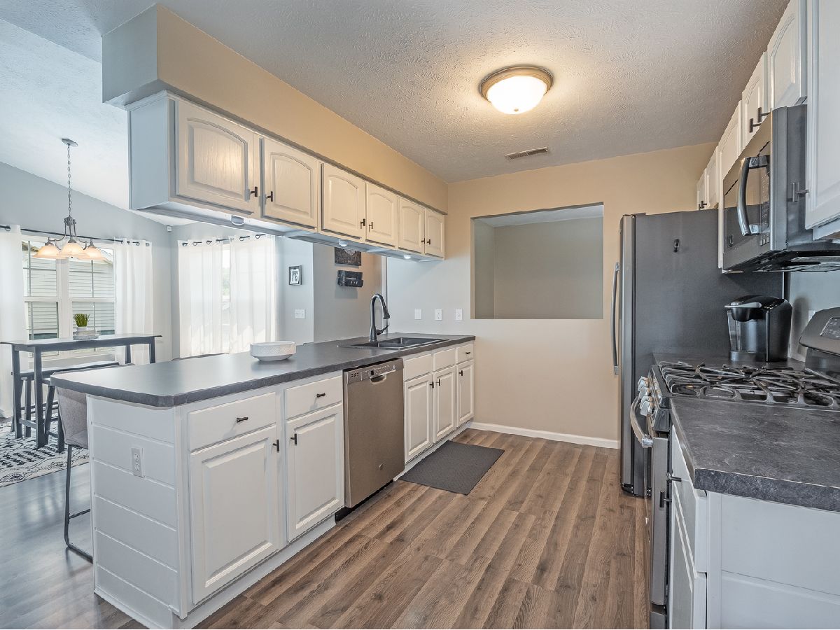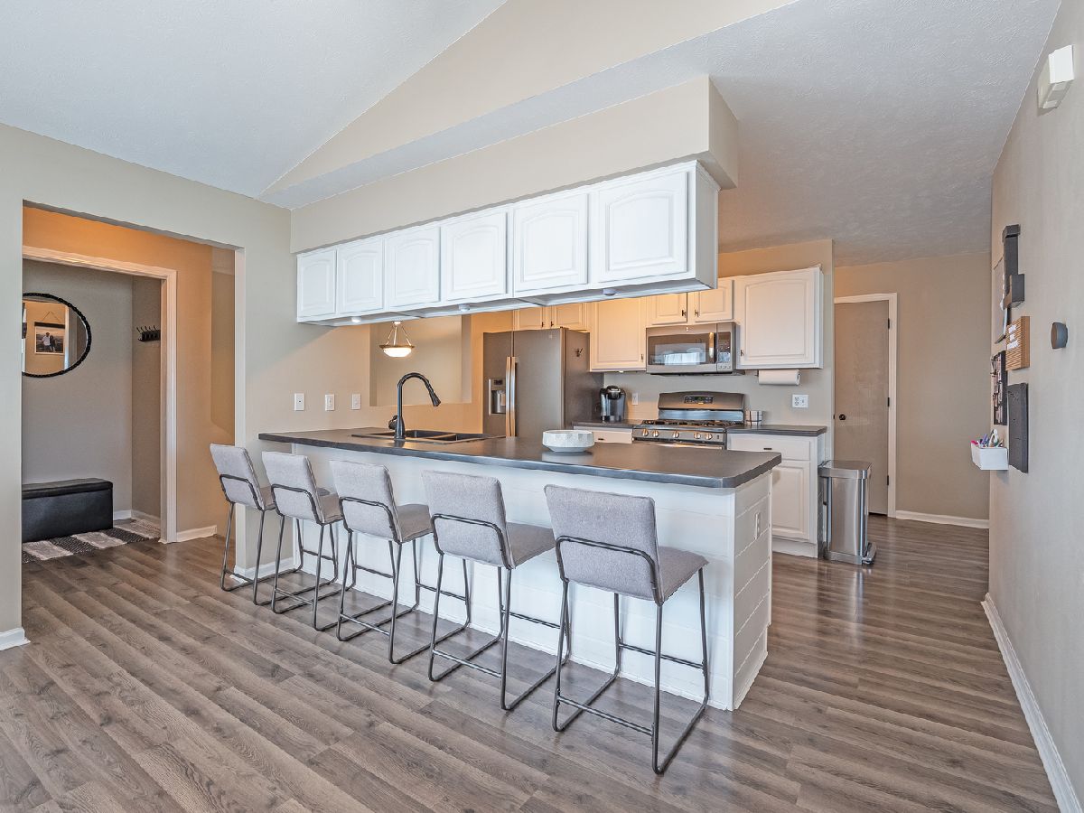 UPDATED and SPECTACULAR! This spacious penthouse condo has been renovated a ton since 2020. New tasteful and durable hardwood laminate flooring covers the entry, dining/living room, kitchen and halls. Neutral fresh paint everywhere provides the "comfy cozy" feel with loads of natural light from the plentiful windows throughout! The gas fireplace has been refaced with a stunning slate facade and the kitchen is perfect for entertaining with abundant seating at the breakfast bar. Plus, the ship-lap bar wall, under cabinet lighting, new countertops and sink make this place feel like new. You won't be fighting for bathroom space with a private master bath and an updated full hall bath as well. Worried about storage? Check out the walk-in master closet and the laundry room with plenty of shelving and a Samsung washer/dryer set that stays. Enjoy coffee, tea or cocktails on the perfectly positioned balcony providing you both sun or shade on the maintenance-free decking. It's time to come home to this Sycamore condo located conveniently near a park, schools, downtown Sycamore, I-88, The Great Western Trail and more!