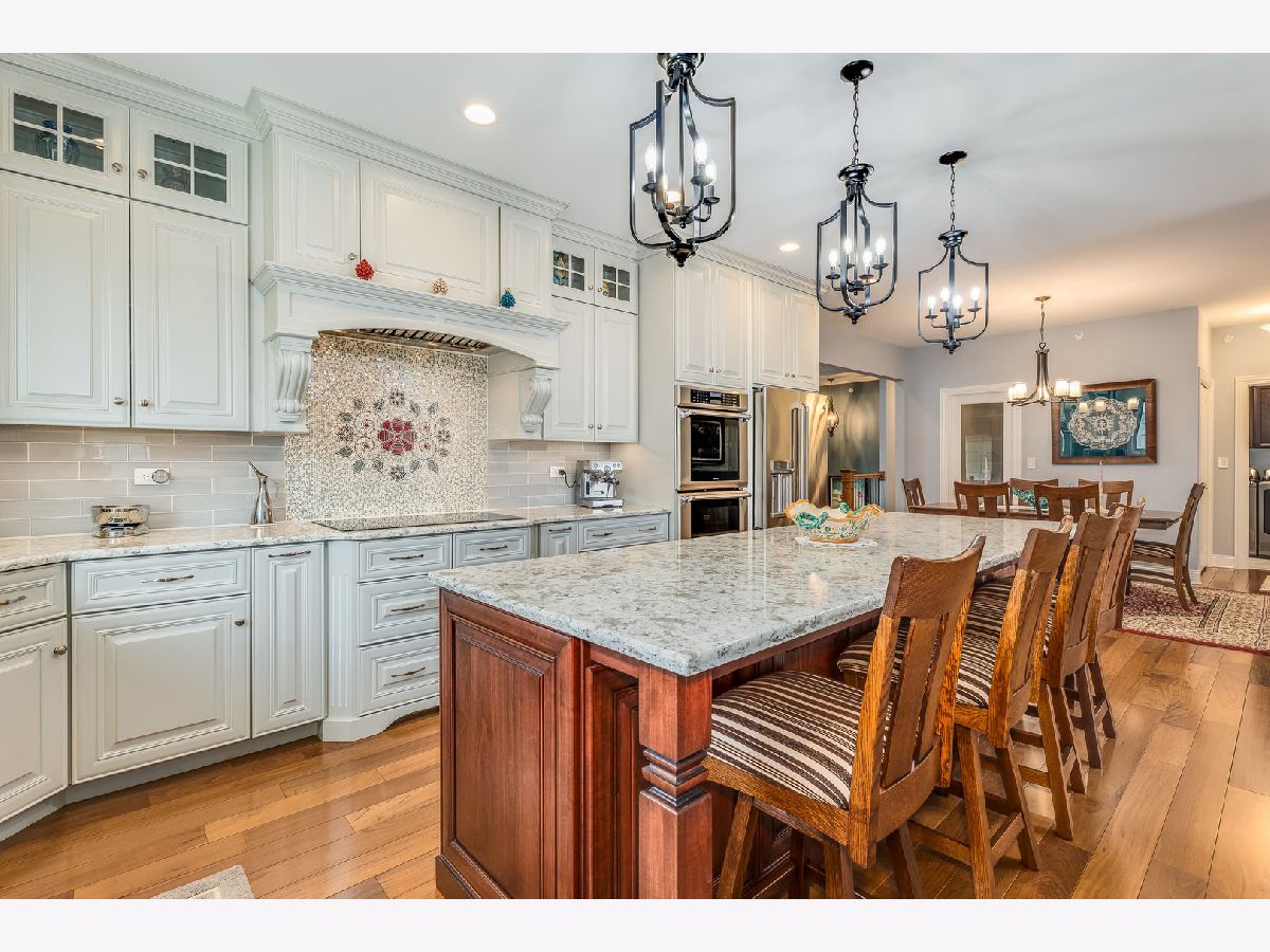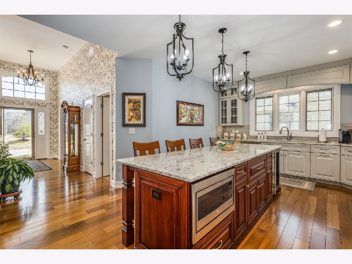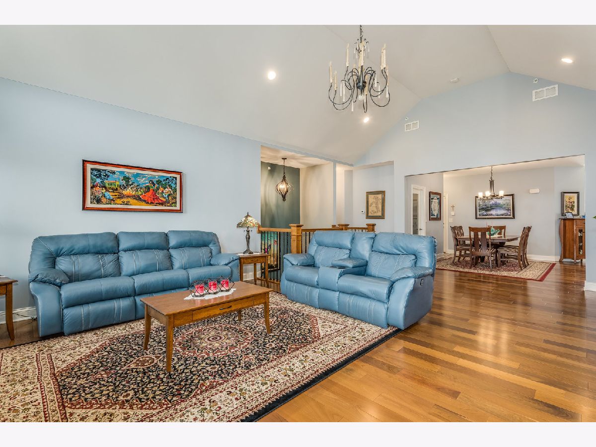 Welcome to this stunning luxury ranch townhome located in the highly sought-after Stonebridge Woods community of Homer Glen. This meticulously designed 3-bedroom, 3-bath home offers the perfect blend of elegance, comfort, and functionality with a fully finished, walk-out basement. Every detail has been carefully crafted to provide an elevated living experience. Upon entering the main level, you're greeted by gorgeous walnut hardwood floors that flow throughout the home. The grand entry foyer with towering volume ceiling sets the tone for the exceptional craftsmanship found in every room. The chef's kitchen is a true highlight, featuring custom cabinets with soft-close hinges and drawer slides, quartz countertops, and high-end stainless-steel appliances, including Thermador double ovens, glass top cooktop and dishwasher. The stunning island/breakfast bar is perfect for both casual meals and entertaining. The welcoming den, with its built-in curio, offers a peaceful retreat, while the private owner's suite is an absolute sanctuary. This spacious suite includes a luxurious bath with custom millwork, a quartz-topped dressing area and double sink vanity, a full-body spray shower, and a walk-in closet equipped with California closet organizers. The great room boasts a vaulted ceiling and garden doors leading out to a composite deck with rustic views and a gas line for your grill-perfect for outdoor gatherings. The fully finished walk-out basement adds even more living space to this exceptional home. With a deep pour (tall ceilings), this level features a second full kitchen with custom cabinetry, granite countertops, and high-end Bosch and LG appliances. A large bedroom and full bath, along with a spacious recreation room, make this the perfect area for guests or entertaining. The beautiful, tiled flooring and walk-out access to a private patio enhance the luxurious feel of this space. Additional highlights include a whole-house generator, an epoxy-coated garage floor, main-floor laundry with custom cabinetry, LG appliances, and Designer Series Low-E glass Pella windows and doors with snap-in between glass blinds. This original owner invested thousands of dollars in upgrades, ensuring this home is truly one-of-a-kind. Don't miss out on this exceptional opportunity to own a luxury townhome in the heart of Homer Glen's prestigious Stonebridge Woods community.