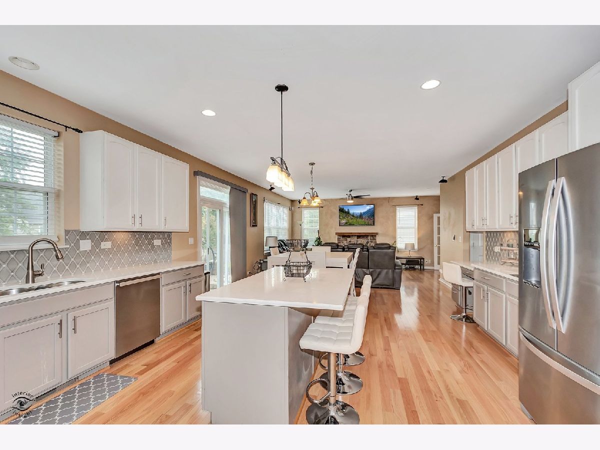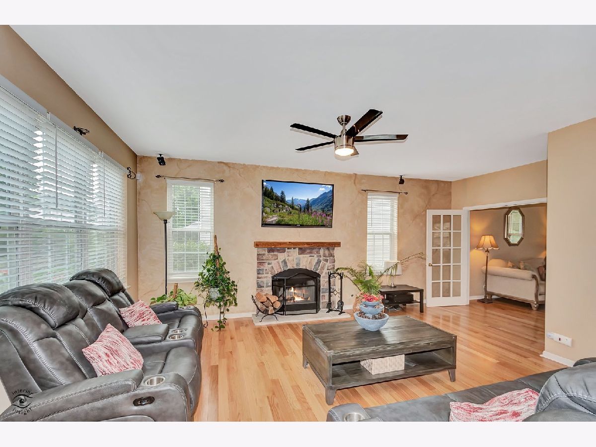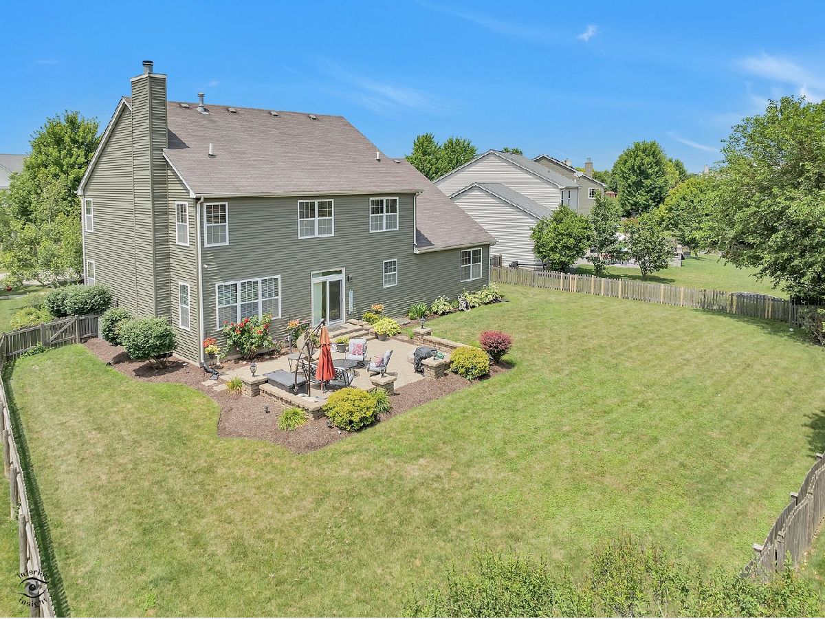 Welcome to this beloved home at 13903 Trillium Lane, Plainfield, IL, where cherished memories have been made by its original owners. This modern residence offers a seamless blend of elegance and comfort, featuring 4 spacious bedrooms and 3.5 well-appointed bathrooms across 2,909 square feet of thoughtfully designed living space. Upon entering, you're welcomed by a two-story foyer that opens up to an expansive floor plan, highlighted by beautiful hardwood floors throughout the main level. The living room, adorned with crown molding and elegant double 14 glass panel French doors, flows effortlessly into the family room, creating an ideal setting for both relaxation and entertaining. The separate dining room, with its crown molding and window blinds, is perfect for formal gatherings. The heart of this home is the remodeled kitchen, showcasing quartz countertops, a large island with seating, a coffee bar, and custom cabinetry. It's equipped with stainless steel appliances and a breakfast area that leads to a custom brick paver patio, offering a delightful space for outdoor dining in a beautifully landscaped, fenced-in yard. The family room features a cozy wood-burning and gas fireplace, while the main floor office and laundry room add convenience. The full basement, illuminated by LED baseboard lighting, includes a gym with specialized flooring and a newly added full bathroom in 2022. Upstairs, discover four roomy bedrooms, including a primary suite with a luxurious bath and walk-in closet. Equipped with modern amenities such as central AC, a security system, and an intercom, this home is designed to enhance your living experience. Enjoy the proximity to downtown Plainfield and its vibrant offerings, making this well-loved home a true gem.