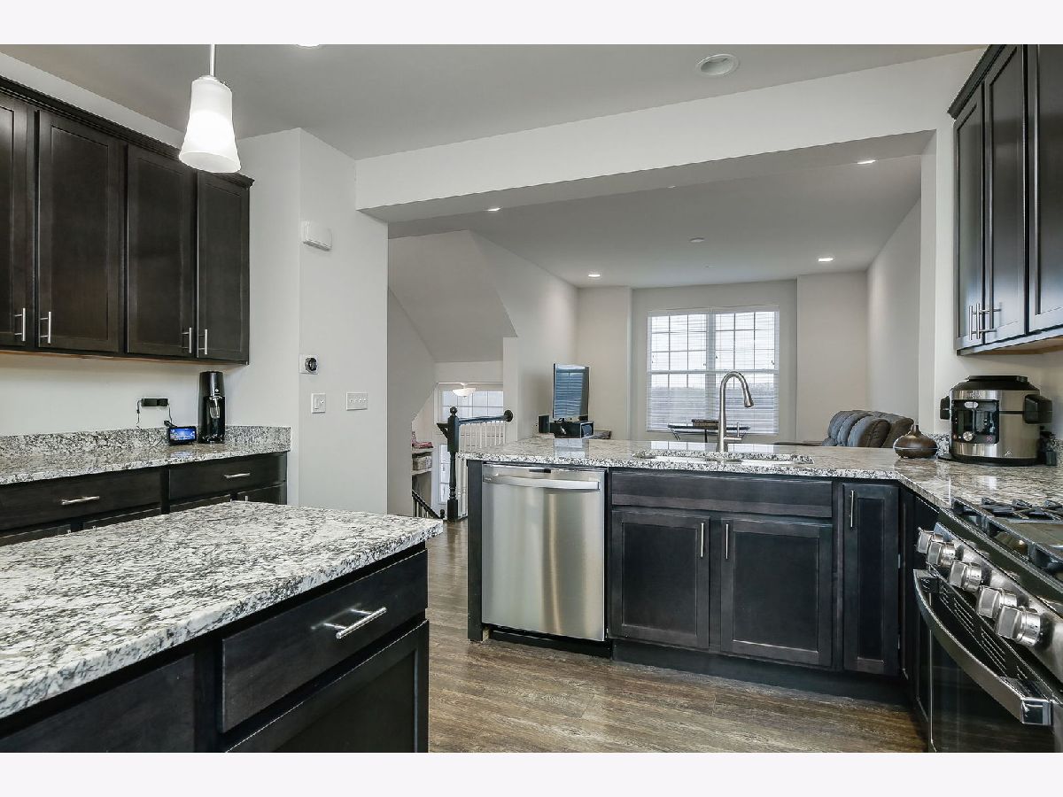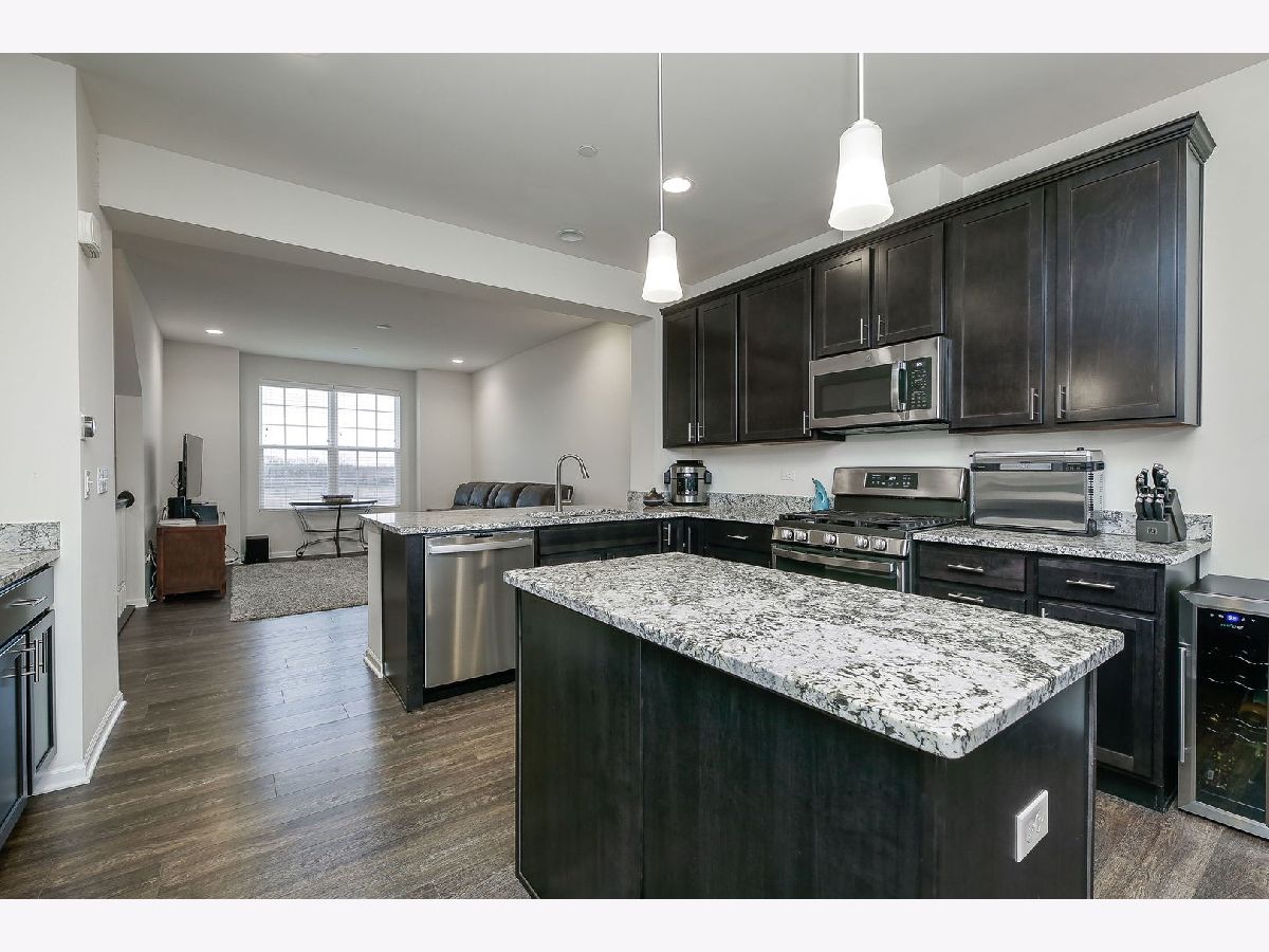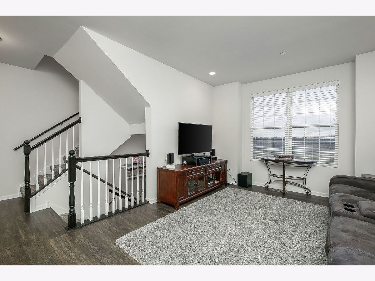 Simply stunning two-story townhome located in The Square at Goodings Grove. This Belmont model in the perfect location features two bedrooms, 2nd floor loft, two and a half bathrooms, with a finished lower level. The home is equipped with smart home technology and has an open floor plan with a bright kitchen that includes 42 inch espresso cabinets, soft-close doors, Whisper White granite countertops, an island for extra prep space, pantry closet, stainless steel appliances,new GE profile dishwasher (2022) & spacious table space. Sliding door leads to the balcony. Upstairs, the master bedroom has an ensuite bathroom with an oversized tiled walk-in shower, dual sinks, tile flooring, and a large walk-in closet. The second bedroom also has a private bathroom, and a loft area. Both bedrooms have room darkening blinds. Finished lower level bonus room. Two-car garage for parking.The home has many upgrades including 9-foot ceilings, crown molding, upgraded peppercorn wood laminate flooring, & 6 panel white doors. Located in the center of everything, minutes to shopping, restaurants, parks, schools, making it a convenient place to live. HOA includes exterior maintenance, lawn care, snow removal, and garbage. Move right in!