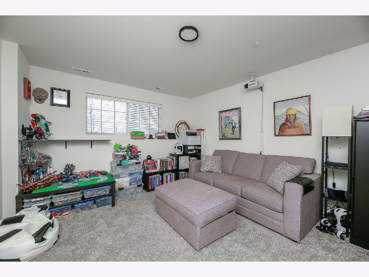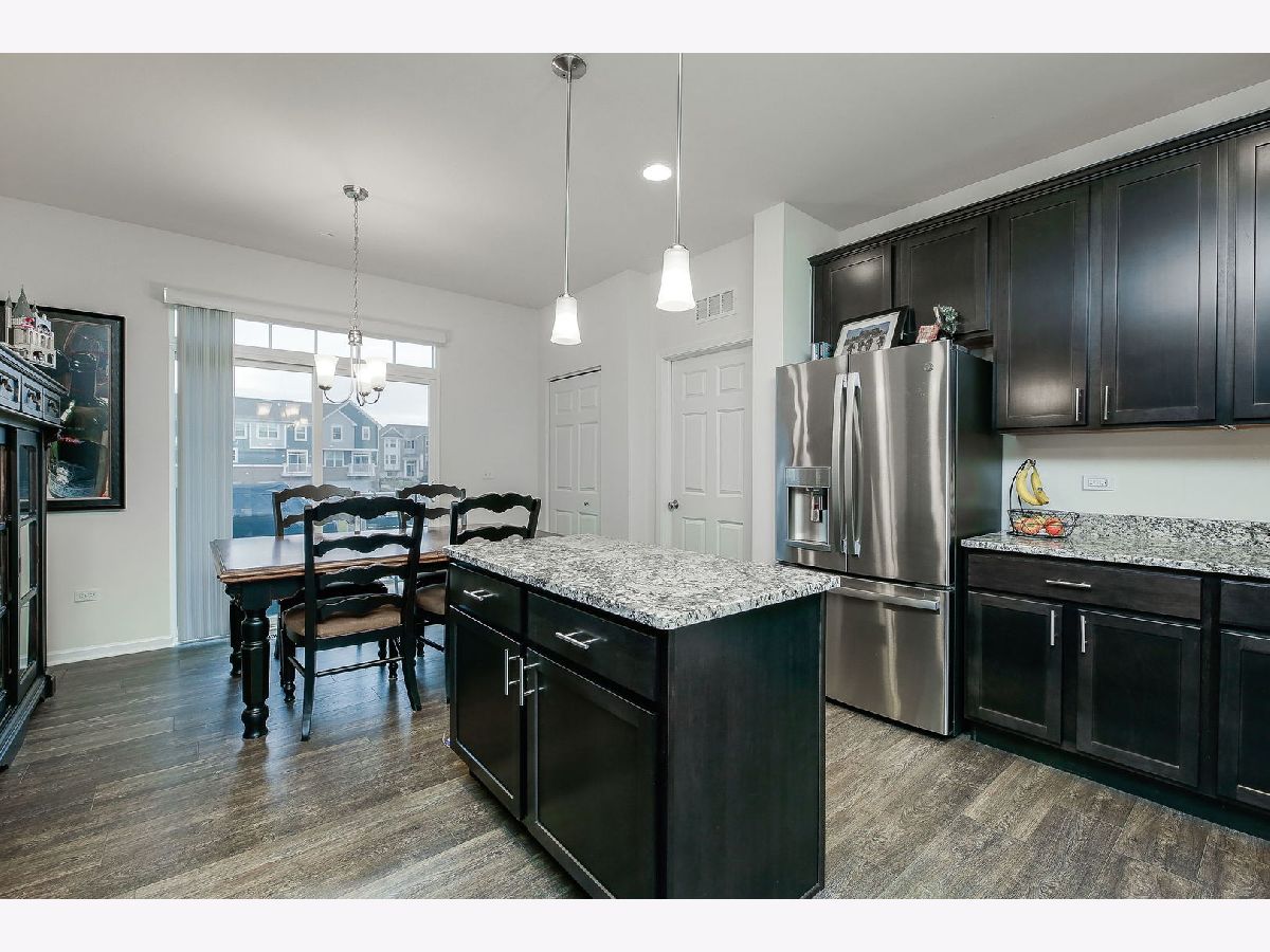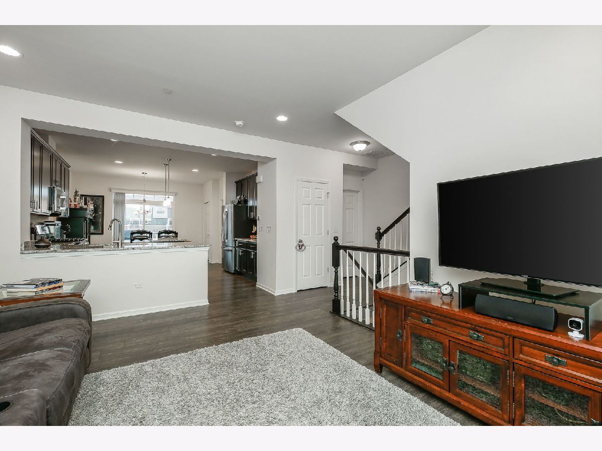 Simply stunning two-story townhome located in The Square at Goodings Grove. This Belmont model in the perfect location features two bedrooms, 2nd floor loft, two and a half bathrooms, with a finished lower level. The home is equipped with smart home technology and has an open floor plan with a bright kitchen that includes 42 inch espresso cabinets, soft-close doors, Whisper White granite countertops, an island for extra prep space, pantry closet, stainless steel appliances,new GE profile dishwasher (2022) & spacious table space. Sliding door leads to the balcony. Upstairs, the master bedroom has an ensuite bathroom with an oversized tiled walk-in shower, dual sinks, tile flooring, and a large walk-in closet. The second bedroom also has a private bathroom, and a loft area. Both bedrooms have room darkening blinds. Finished lower level bonus room. Two-car garage for parking.The home has many upgrades including 9-foot ceilings, crown molding, upgraded peppercorn wood laminate flooring, & 6 panel white doors. Located in the center of everything, minutes to shopping, restaurants, parks, schools, making it a convenient place to live. HOA includes exterior maintenance, lawn care, snow removal, and garbage. Move right in!