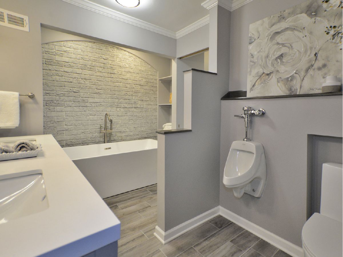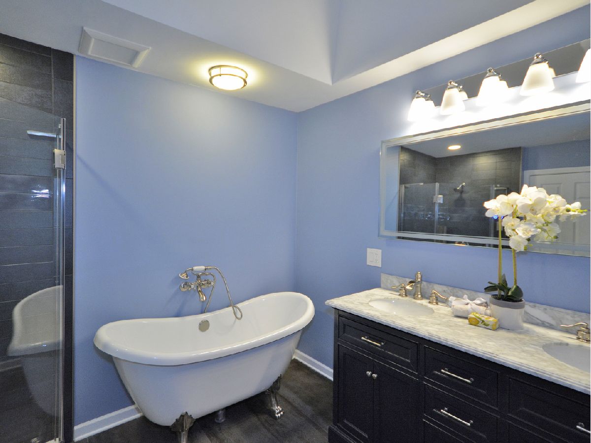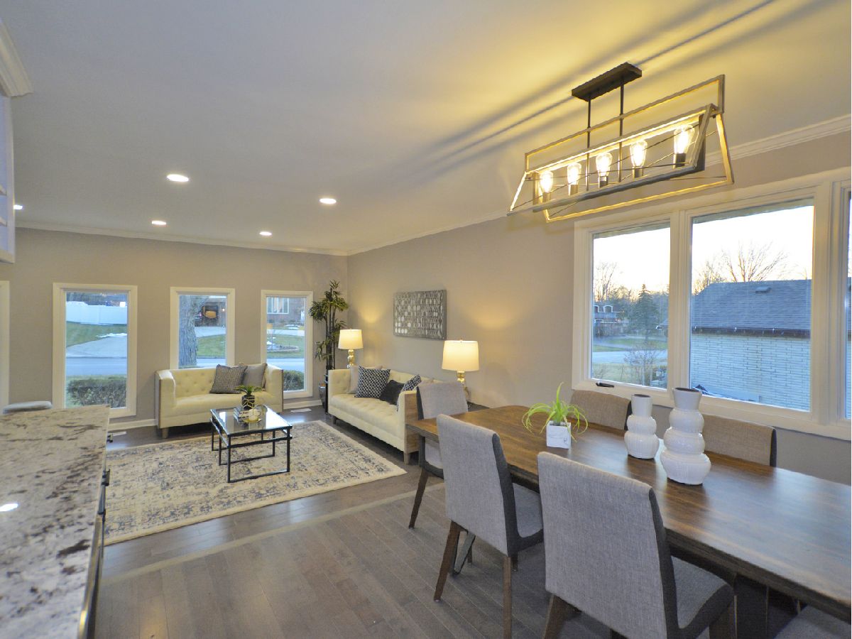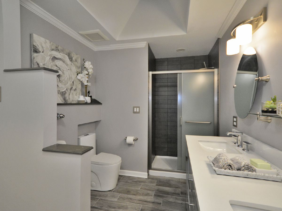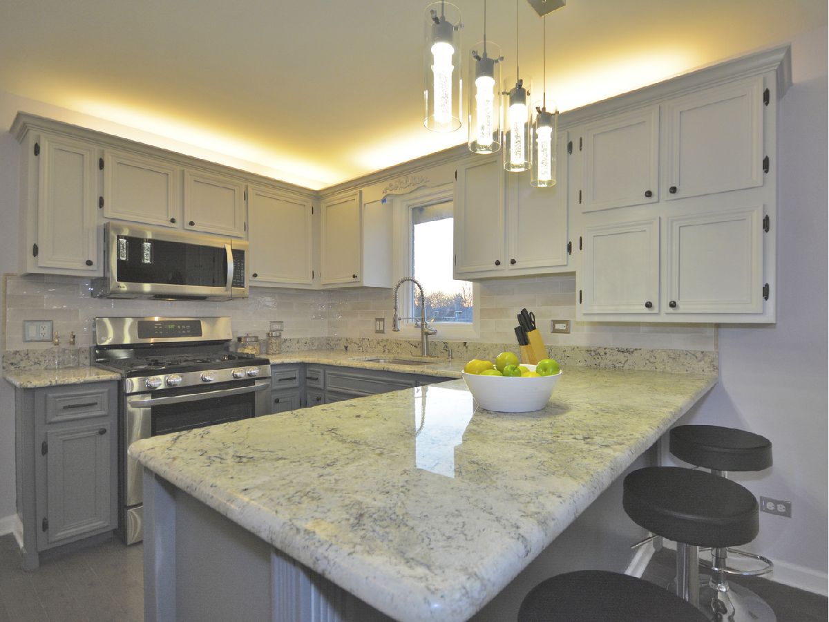 Prepare to be dazzled by this architecturally stunning and marvelously remodeled brick abode. As you step into the home, you're met with a truly regal entryway, accentuated with custom square-paneled walls, that will leave you feeling nothing short of inspired. Ash grey wood flooring and soft, blue-tones define the perfectly curated color palette found throughout. An abundant use of recessed lighting and tasteful crown molding form the perfect blend of modernity and classic character. The expansive main level family room, highlighted with a natural stone fireplace, delivers a cozy, yet spacious, atmosphere. The front-facing living room is lined with dramatic, oversized windows that exude splendor and sophistication. A separate, formal dining area comes fitted with additional built-in storage. The chef's kitchen has been exquisitely updated with ornate cabinetry, custom tiled backsplash, and overhead ambient lighting. Modish pendant lights overhang and showcase the beautiful granite countertops and breakfast bar. Contemporary stainless steel appliances round out the picturesque package. The commodious, ensuite master bedroom provides ample space for a full suite of furniture. A second and third bedroom, as well as an additional full hallway bathroom, can be found on the main level. Both bathrooms have been upgraded to a spa-like quality featuring double vanities, standing glass showers, floating tubs, and trayed ceilings. Head downstairs and you'll find the finished basement has been as meticulously tailored as the rest of the home. A sprawling recreation room can be used as additional living space, or a creative area to practice your personal hobbies. A separate den supplies an ideal work-from-home office. The designated laundry room comes equipped with front-loading washer and dryer, as well as a utility sink. At the rear of the home, a sliding glass door leads to a paved patio and luscious green space. Located in close proximity to the Old Oak Country Club. Surrounded by parks, lakes, and recreation areas. Come and see this remarkable home and be ready to fall in love.