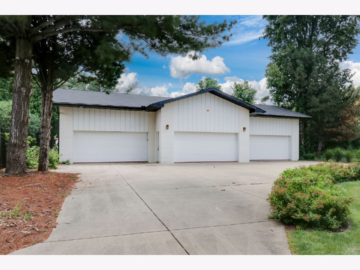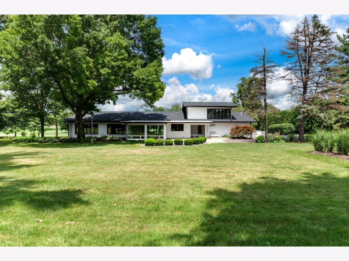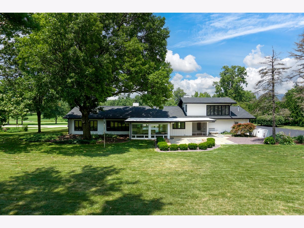 Nestled within the prestigious Bloomington Country Club neighborhood, this luxury ranch-style home sits on a double lot, offering a mid-century modern feel. As you approach the property, you'll be captivated by the serene and private setting, surrounded by matured trees and stunning views of the nearby golf course. Upon entering the home, a stone floor foyer with three storage coat closets welcomes you. The expansive, open floor plan seamlessly connects the main family room and dining area, featuring a striking marble wood-burning fireplace, built in shelves and new 3/4" solid birch wood floors that flow into all bedrooms. Style and functionality meet in the updated retro-style mid-century modern kitchen that is outfitted with stainless steel appliances, stainless steel workspace, professionally painted original St. Charles Mid Century Modern cabinets, pass-through, and large walk-in pantry. Adjacent to the kitchen, a practical drop zone with ample closet space and a separate service door into the house provides convenience and organization. For more relaxed living, the four seasons sun room offers expansive views of the peaceful, double lot yard, allowing you to enjoy the beauty of each season from the comfort of your home. This residence boasts four large bedrooms, each with generous closet space, and four full bathrooms. The fourth bedroom above the garage offers a full bathroom and double closets providing an additional versatile space, perfect for a guest suite or home office. The main floor half bath has been meticulously remodeled with high-end design choices, adding a touch of luxury. The lower level features an updated basement with new luxury engineered hardwood floors, fresh paint, new trim, new light fixtures, a built-in display shelf, full bathroom, and laundry room with sink & work space all creating a cozy and inviting space for additional living or recreational activities. For car enthusiasts or those in need of extra storage, the property includes an attached three-car garage with three large storage closets and utility sink. Additionally, there is a six-car detached, extra-deep, heated garage with a massive 60 x 40 bonus room on the second floor, offering endless potential for use. This exceptional garage setup is perfect for hobbies, a workshop, or additional living space. Outdoor living is equally impressive with a large patio with built-in seating, perfect for entertaining or simply enjoying the tranquility of the beautiful surroundings. The private backyard oasis provides a peaceful retreat, ideal for relaxation and outdoor activities. Both the house and the detached garage have new roofs installed in 2021. This one of a kind home in the Bloomington Country Club neighborhood is ready for your vision! Reach out today for a private tour and experience the beauty of this home for yourself.